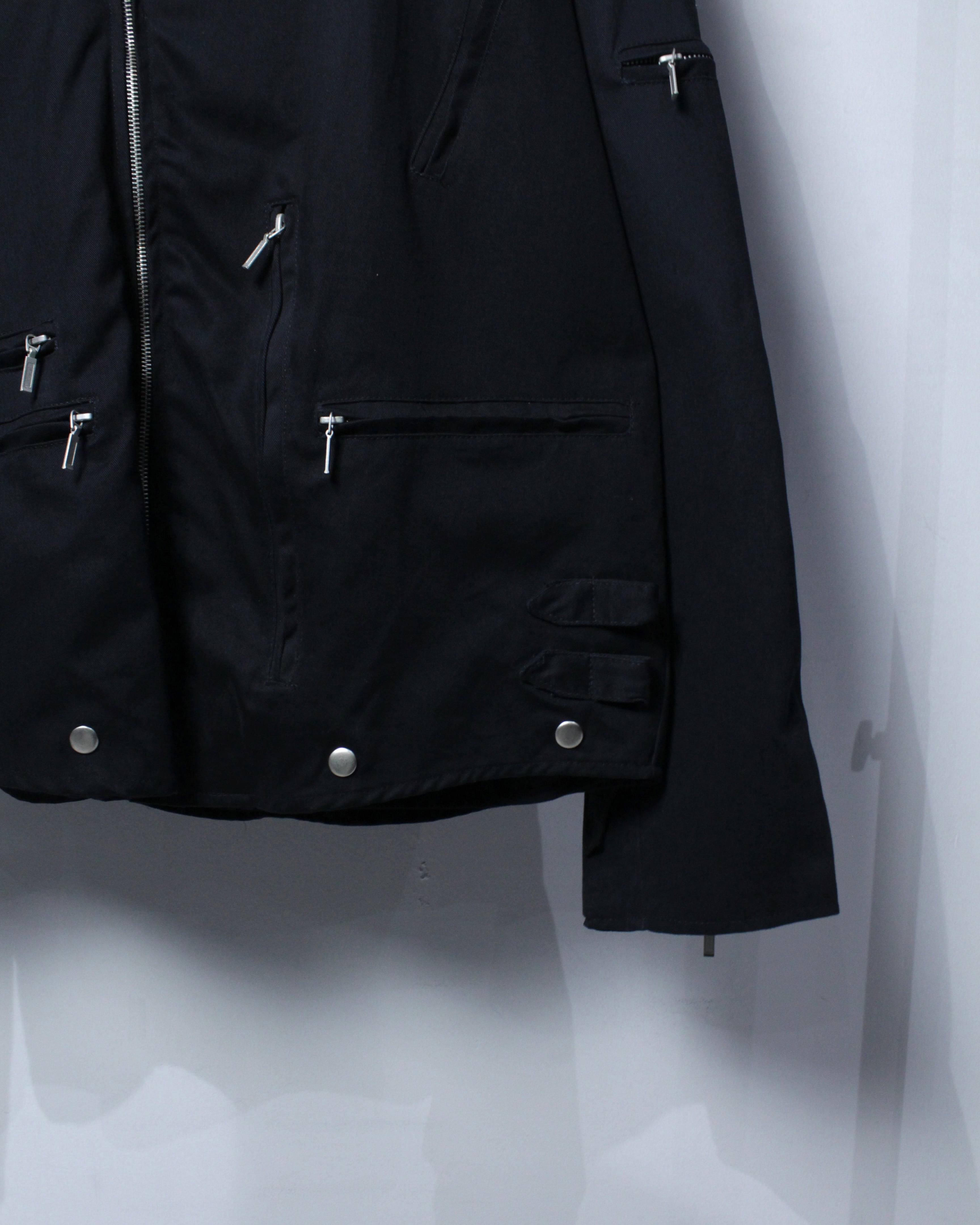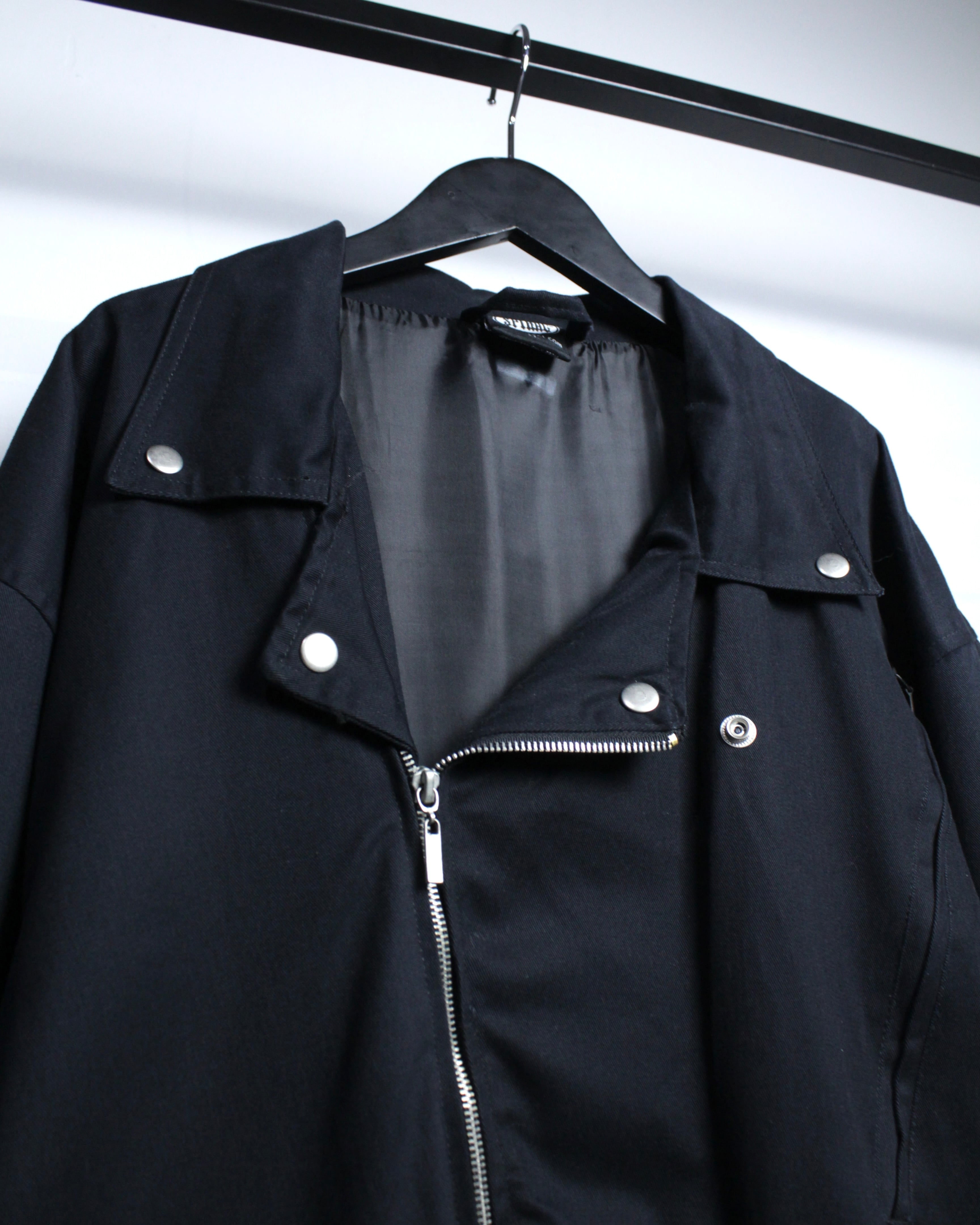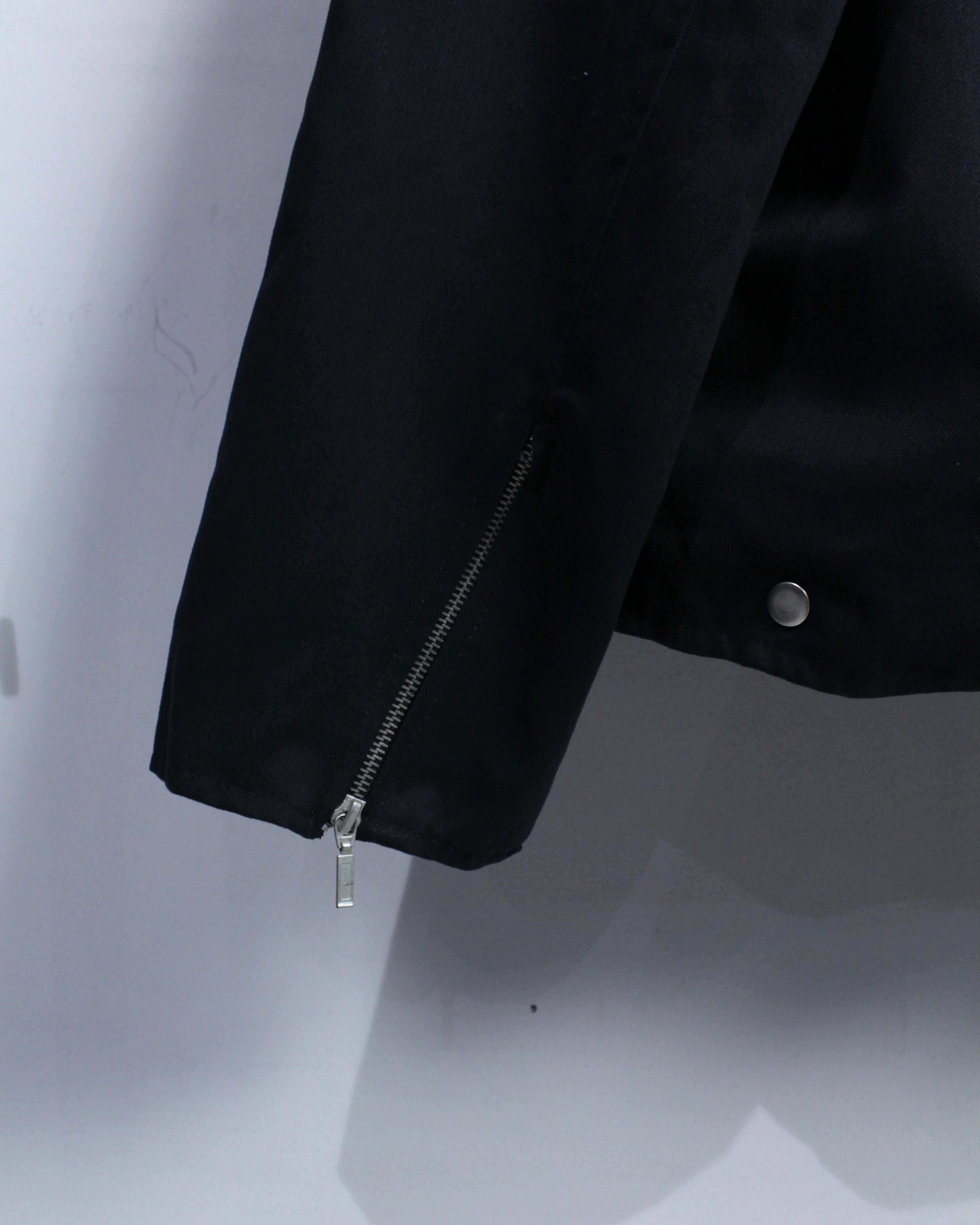 しなやかさとコシを兼ね備えたコットンツイルを用いたボディに、ダブルライダース特有のフロントジップと大ぶりな襟を搭載した1着。