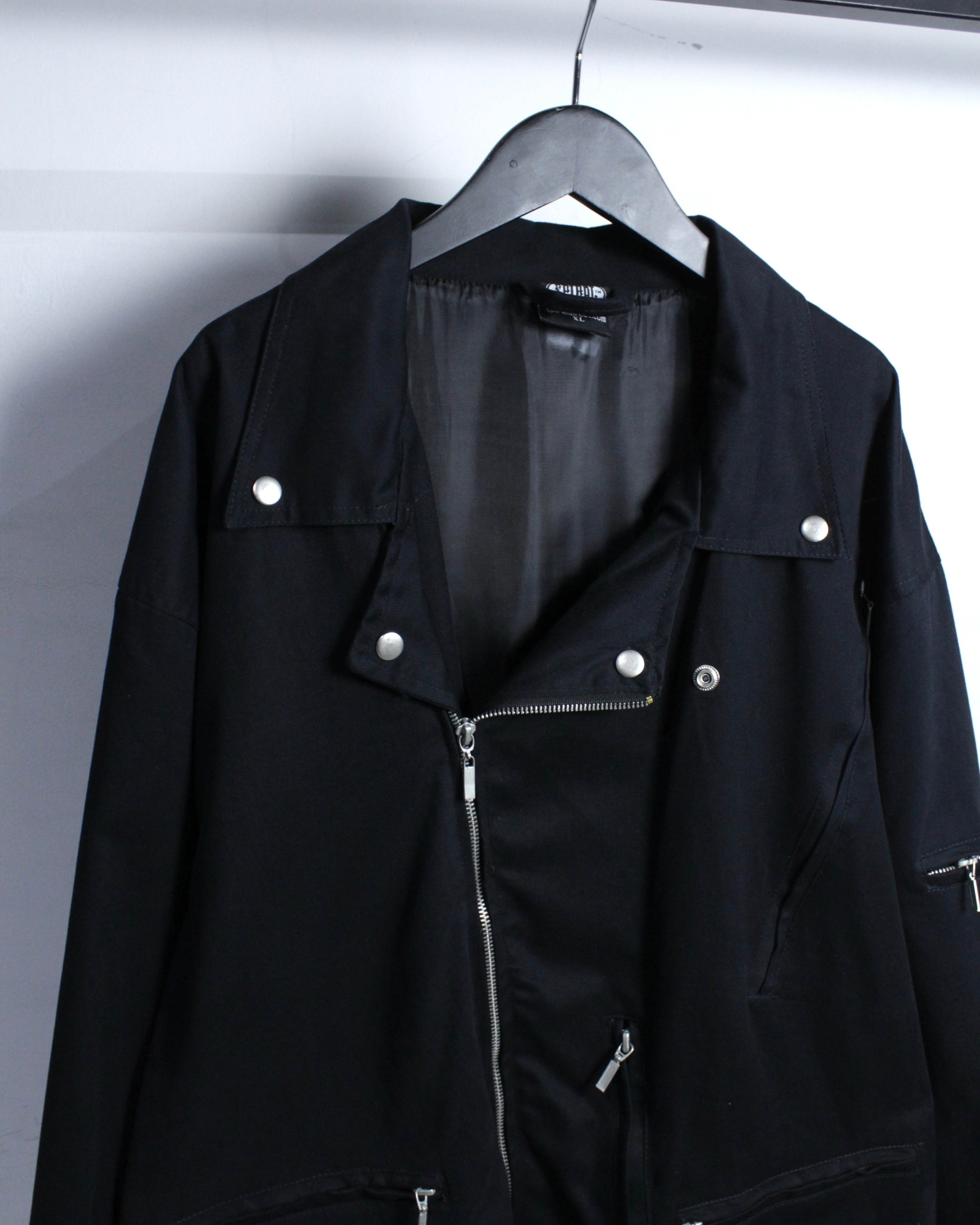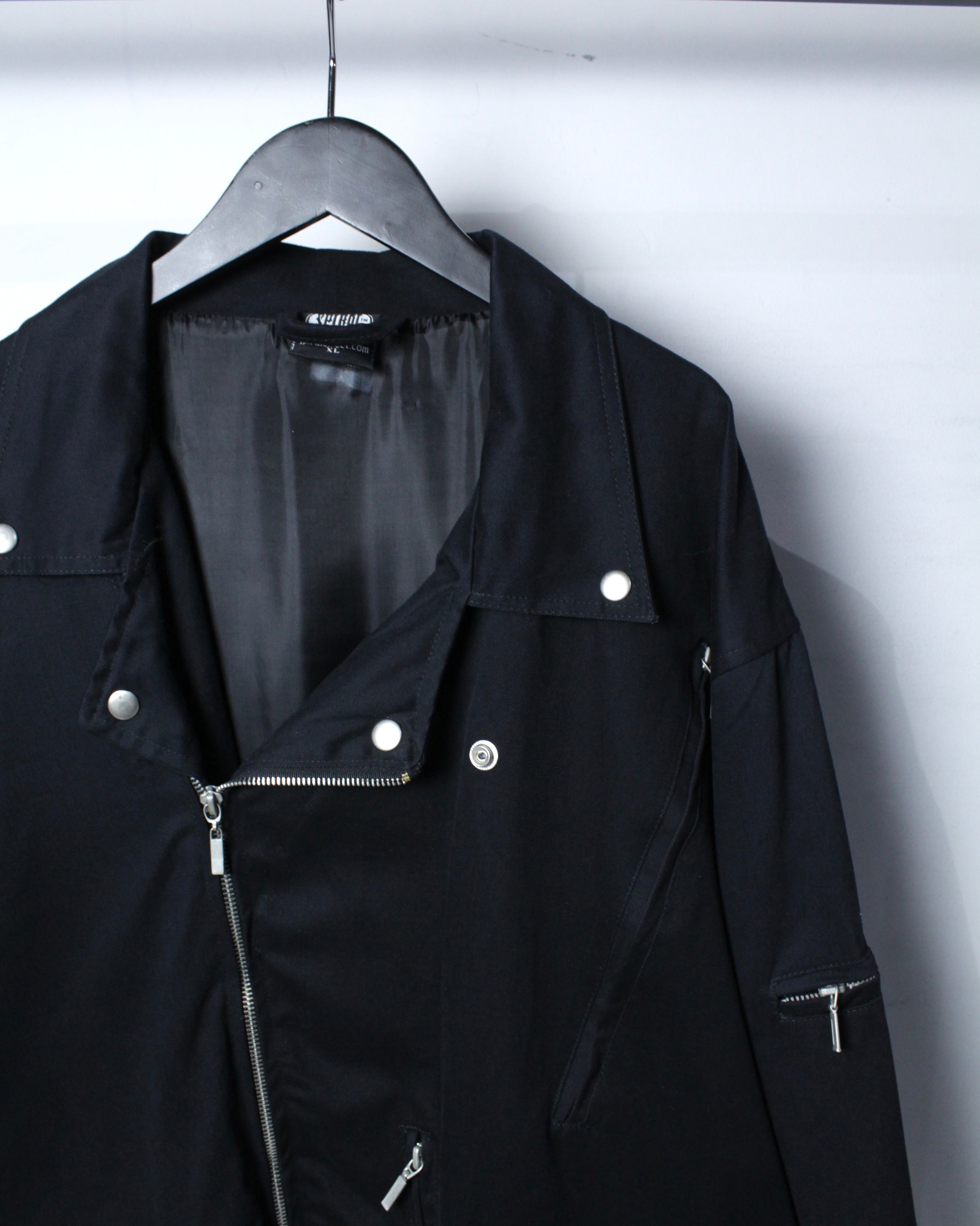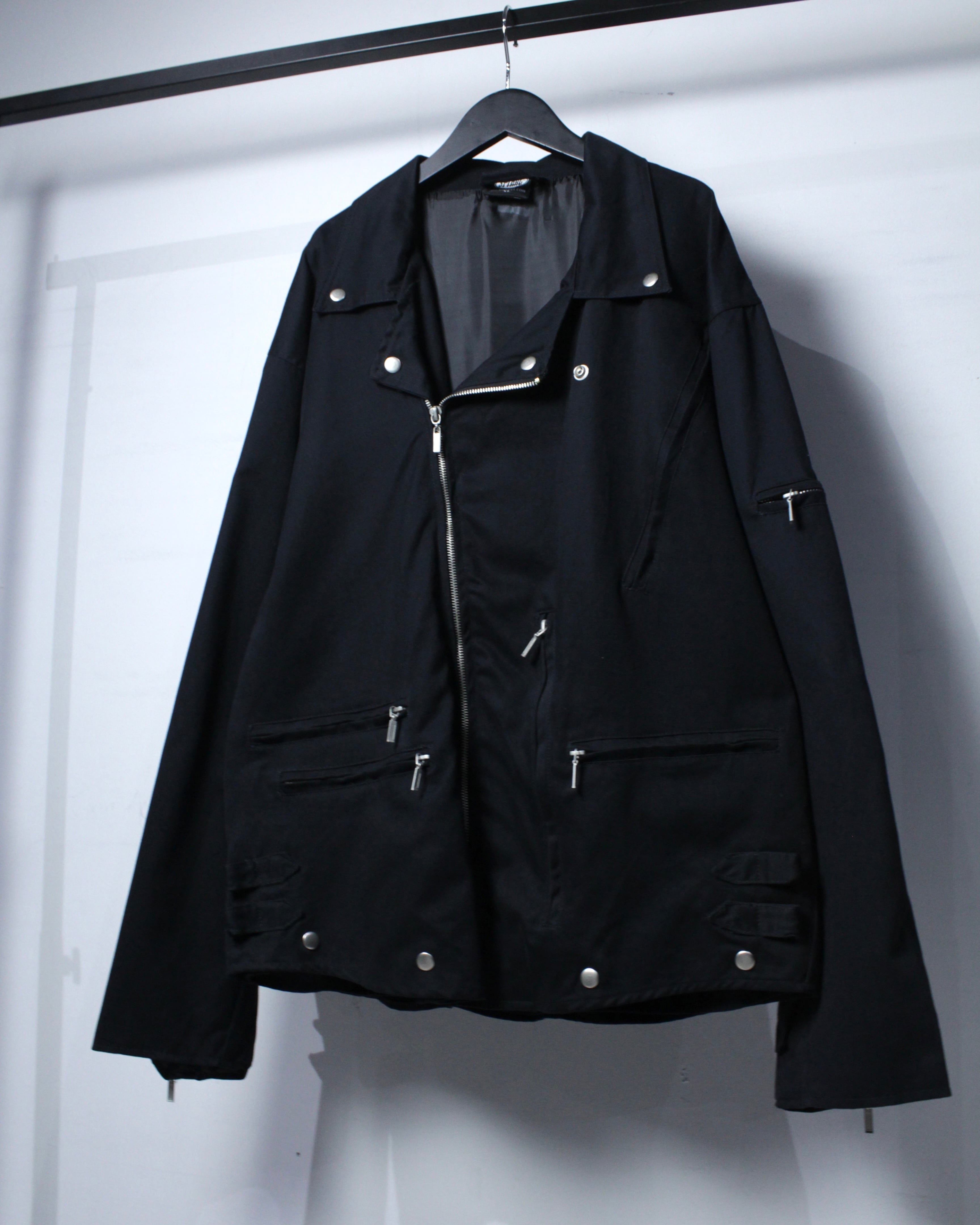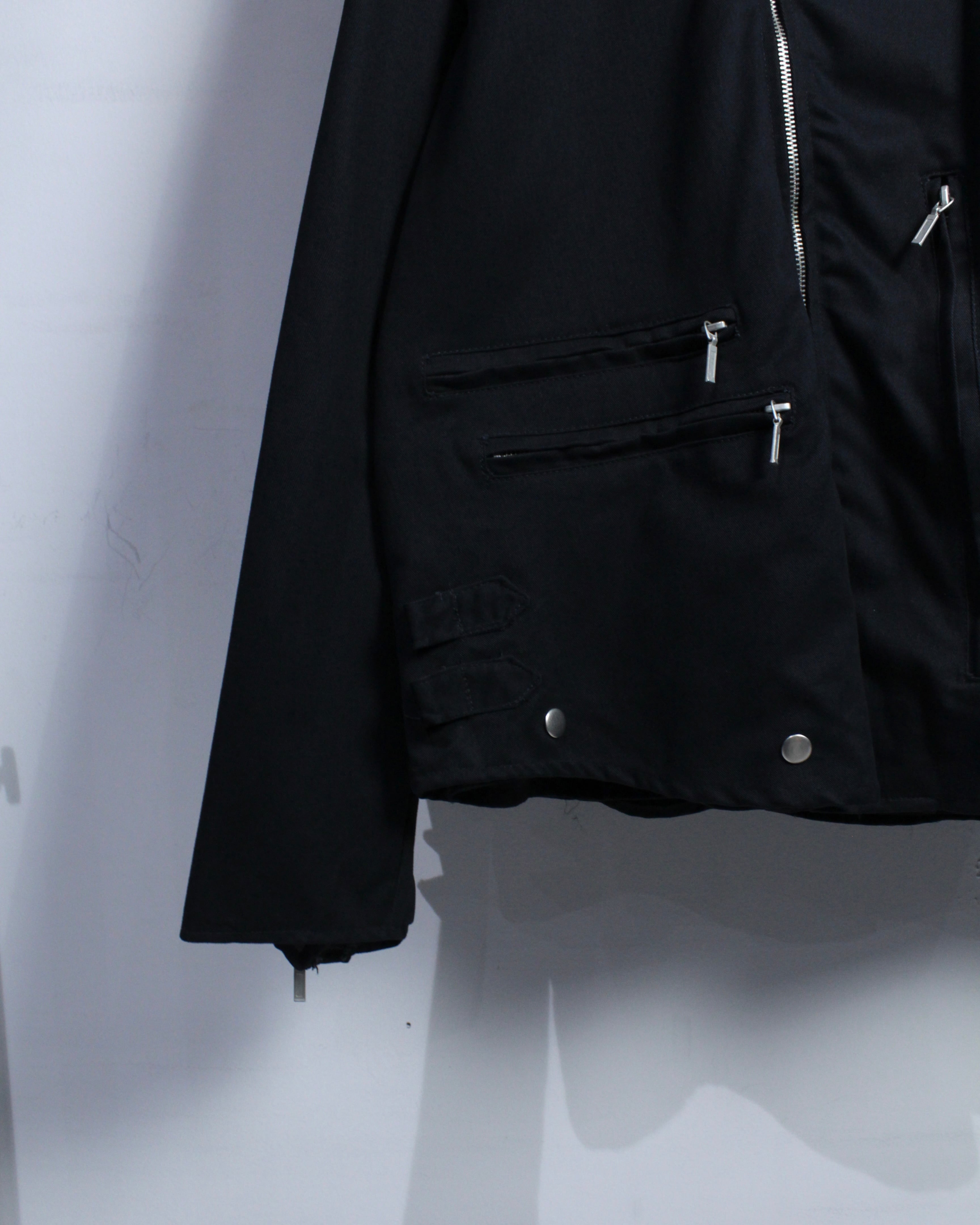 しなやかさとコシを兼ね備えたコットンツイルを用いたボディに、ダブルライダース特有のフロントジップと大ぶりな襟を搭載した1着。