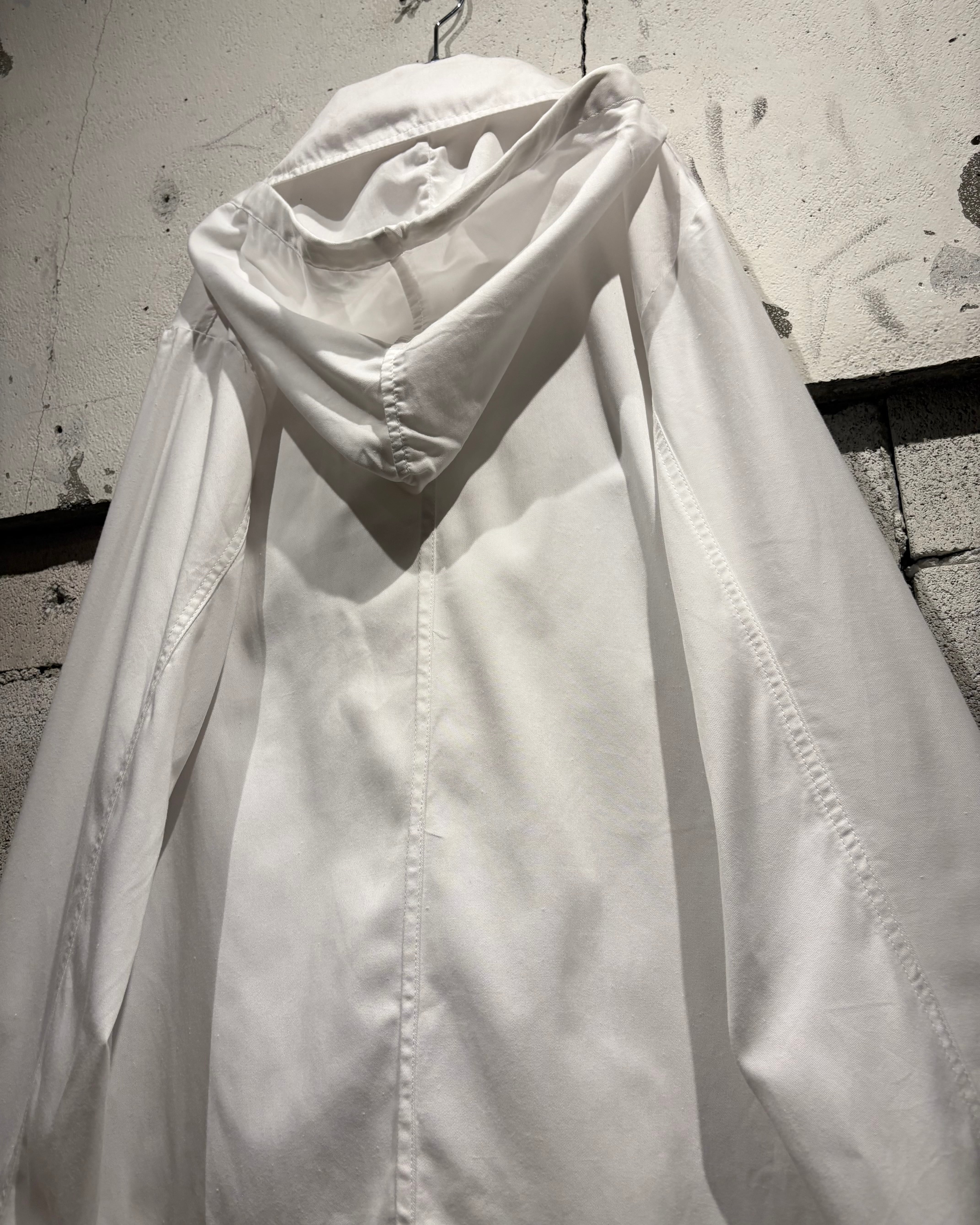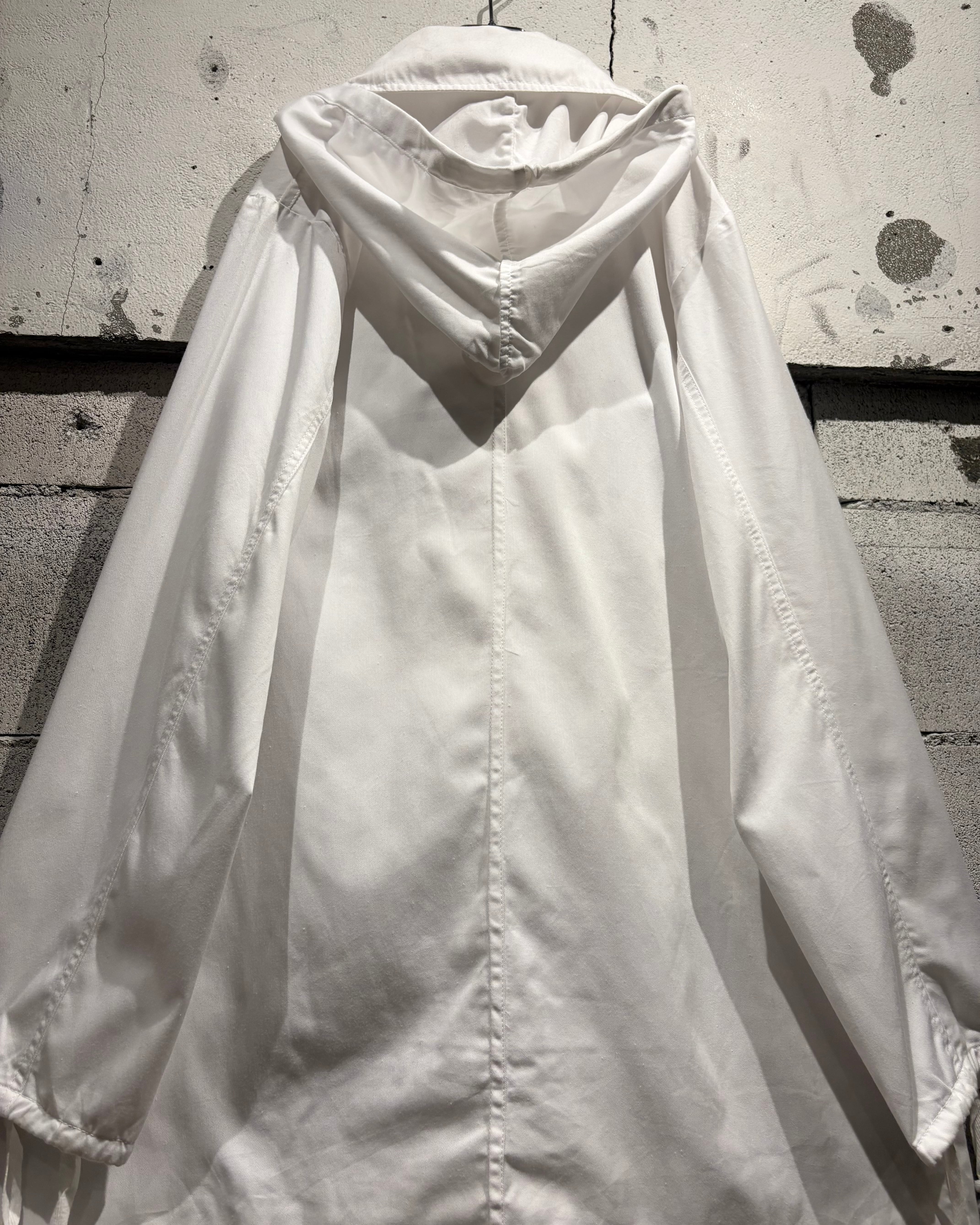 雪原に溶け込むためのオールホワイトボディに、タフで軽量なコットンファブリックを採用。過酷な環境下での使用を前提とした無駄のない設計ながら、ミニマルな美しさと機能美が際立つ1着。
