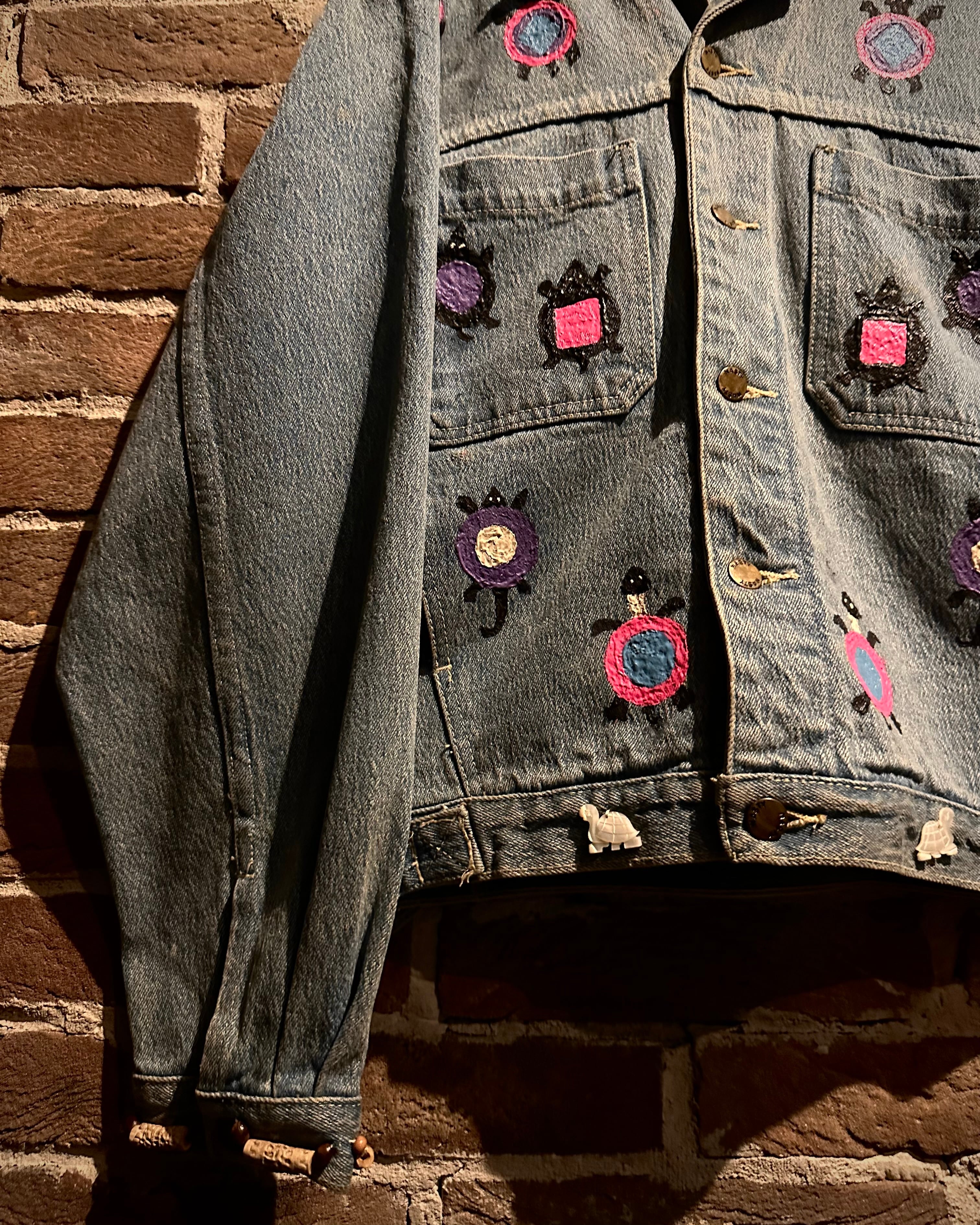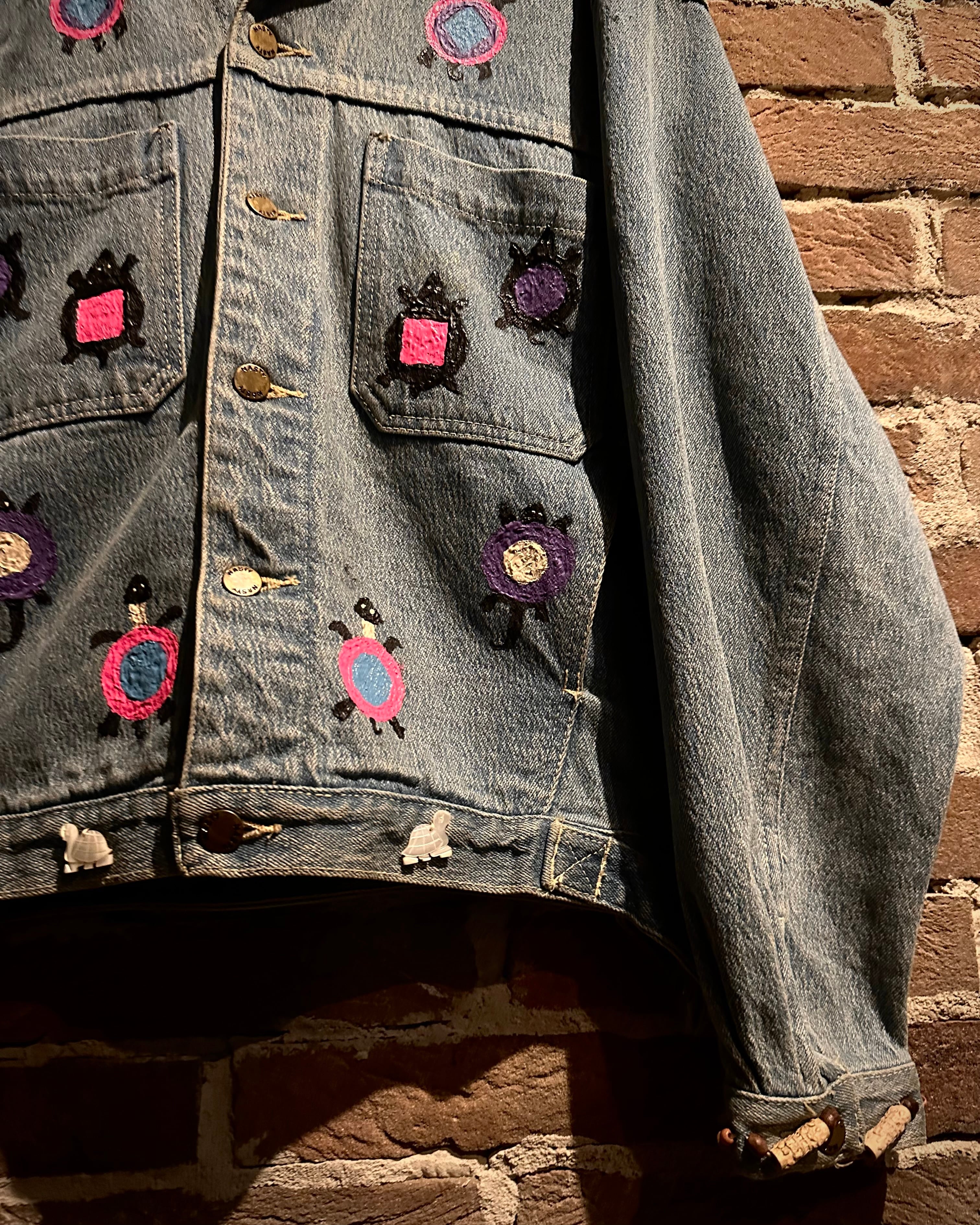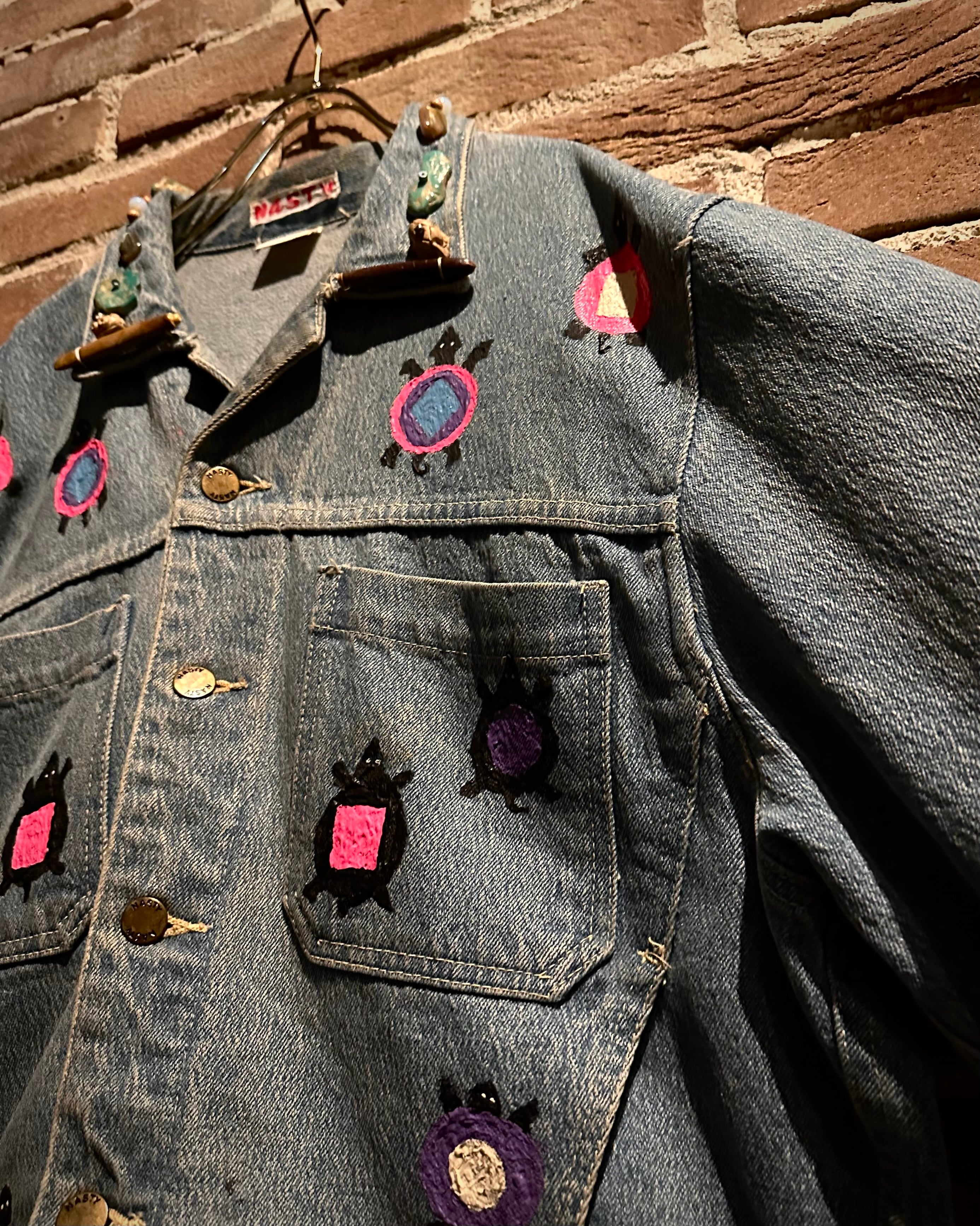 アタリの良いデニムのボディに、前所有者がハンドペイントでカスタムを施した、唯一無二なデニムジャケット。