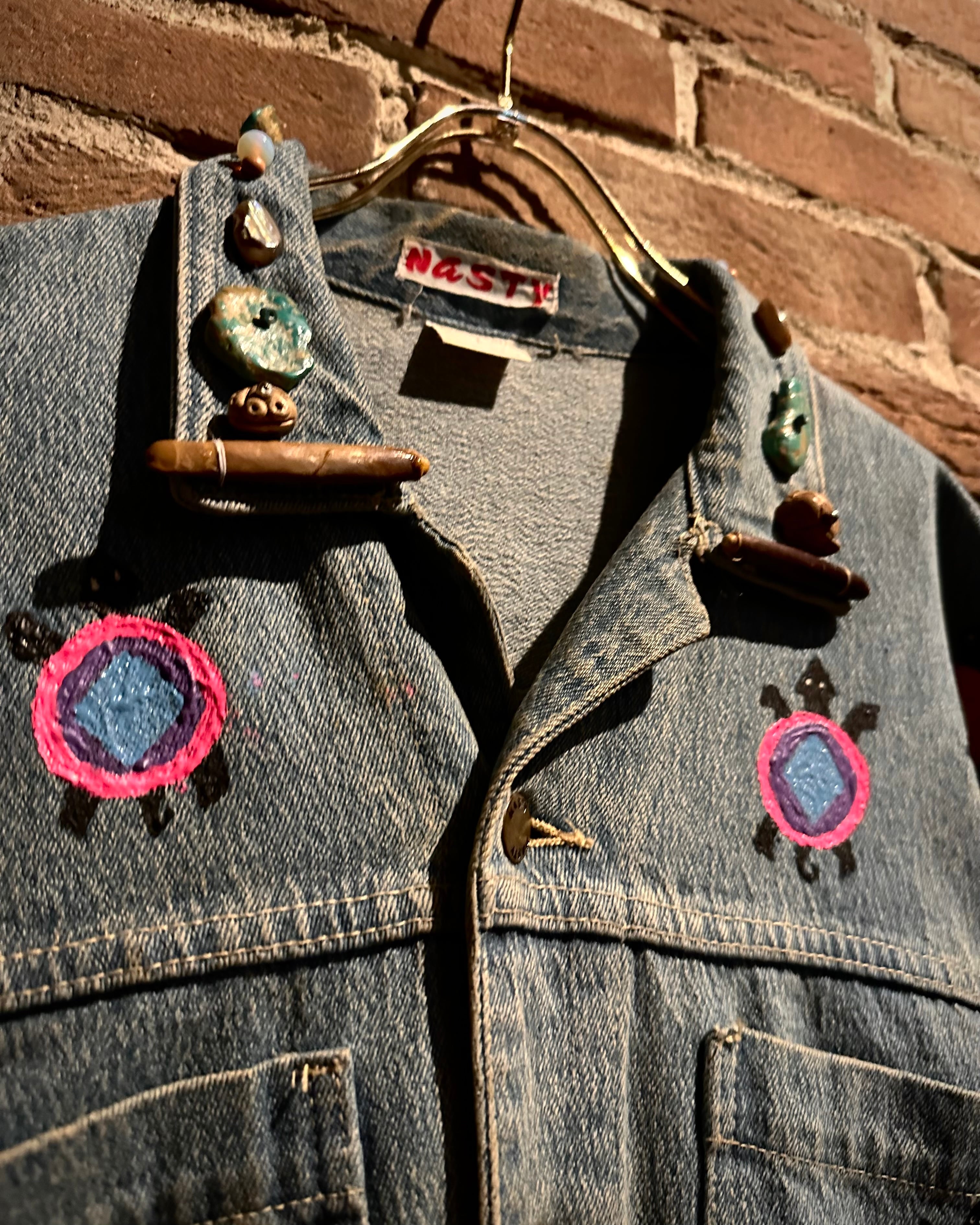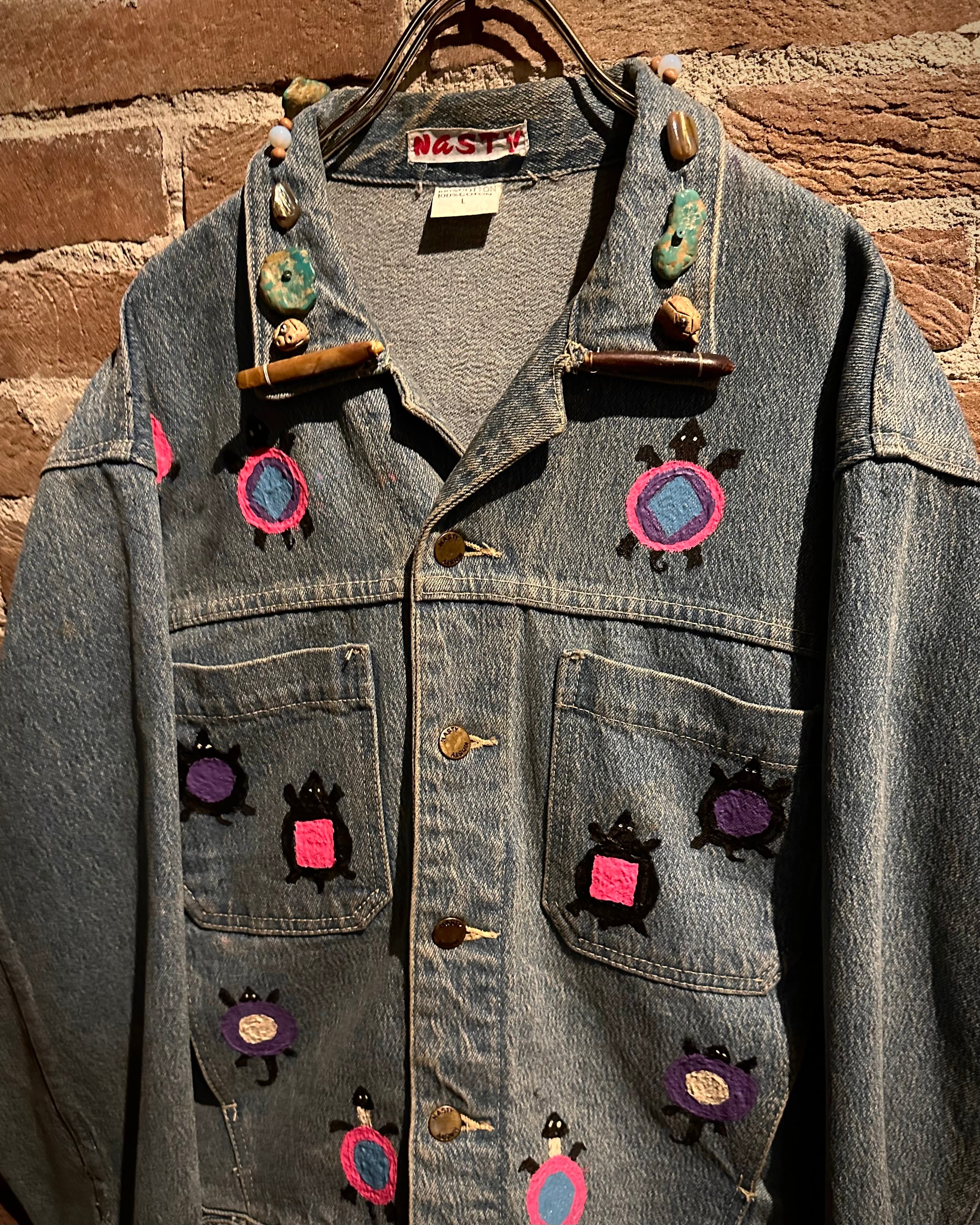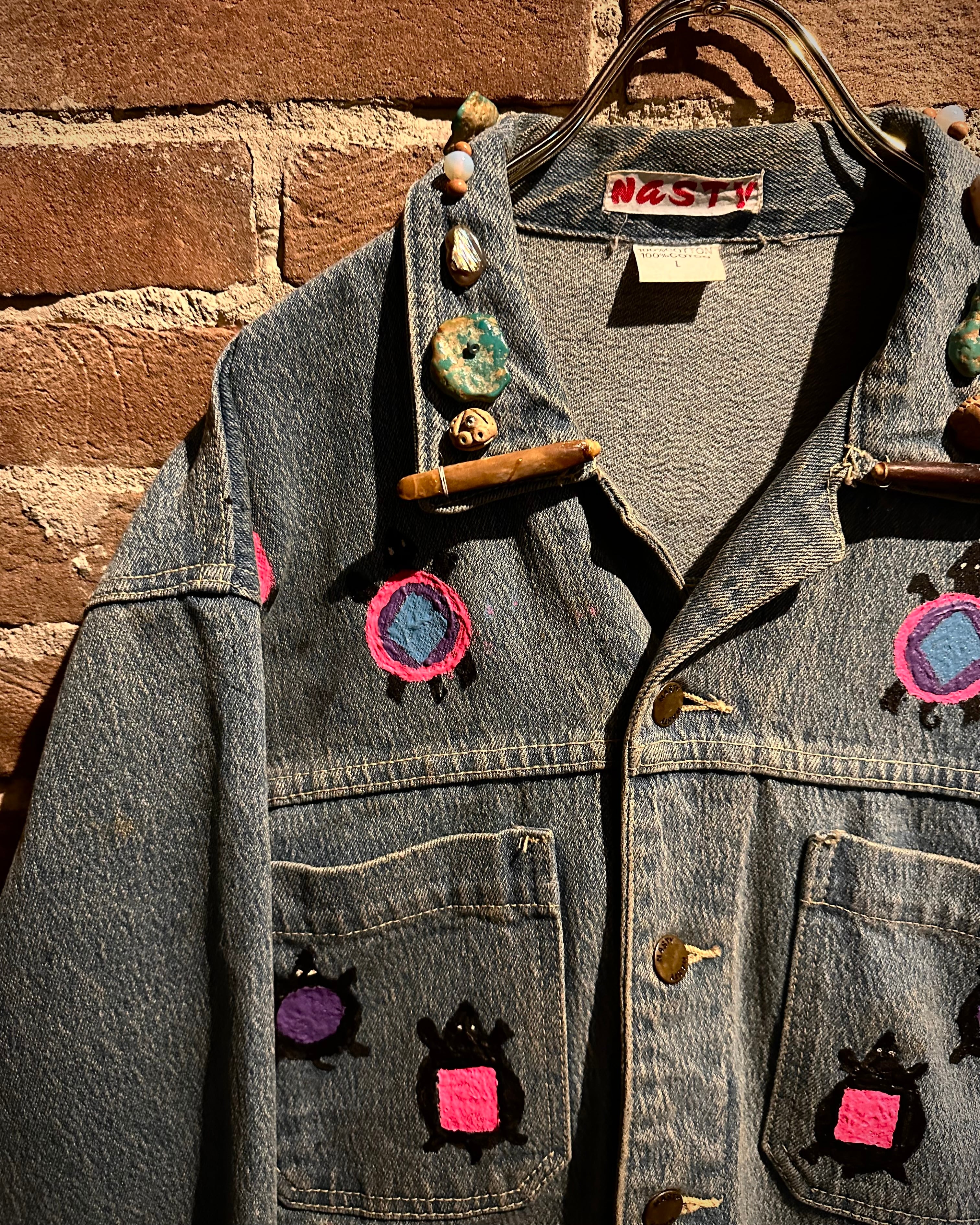 アタリの良いデニムのボディに、前所有者がハンドペイントでカスタムを施した、唯一無二なデニムジャケット。