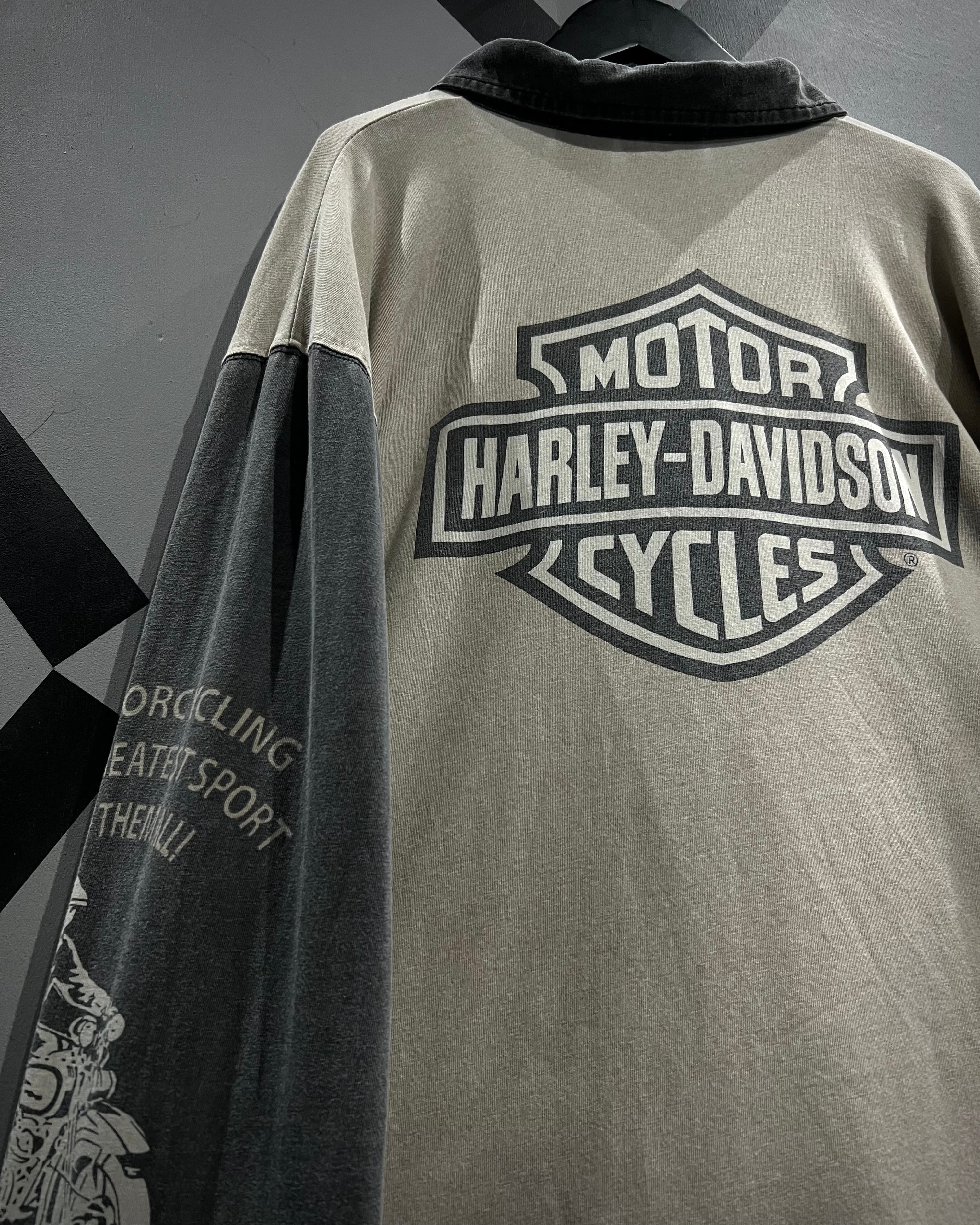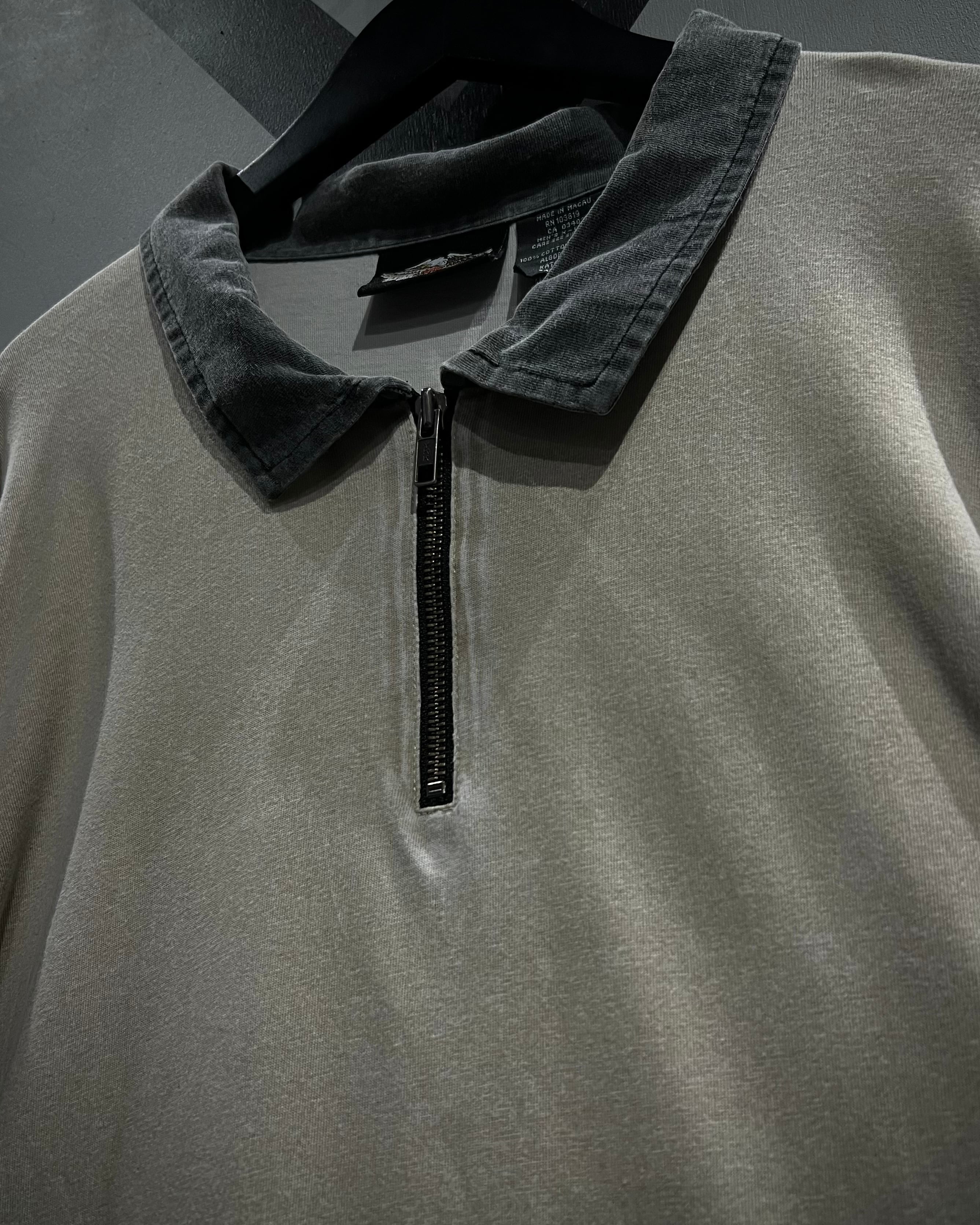 古着でも定番のハーレー。その中でも稀少なハーフジップ長袖タイプで、デザイン性と経年変化による表情を兼ね備えた逸品です。
