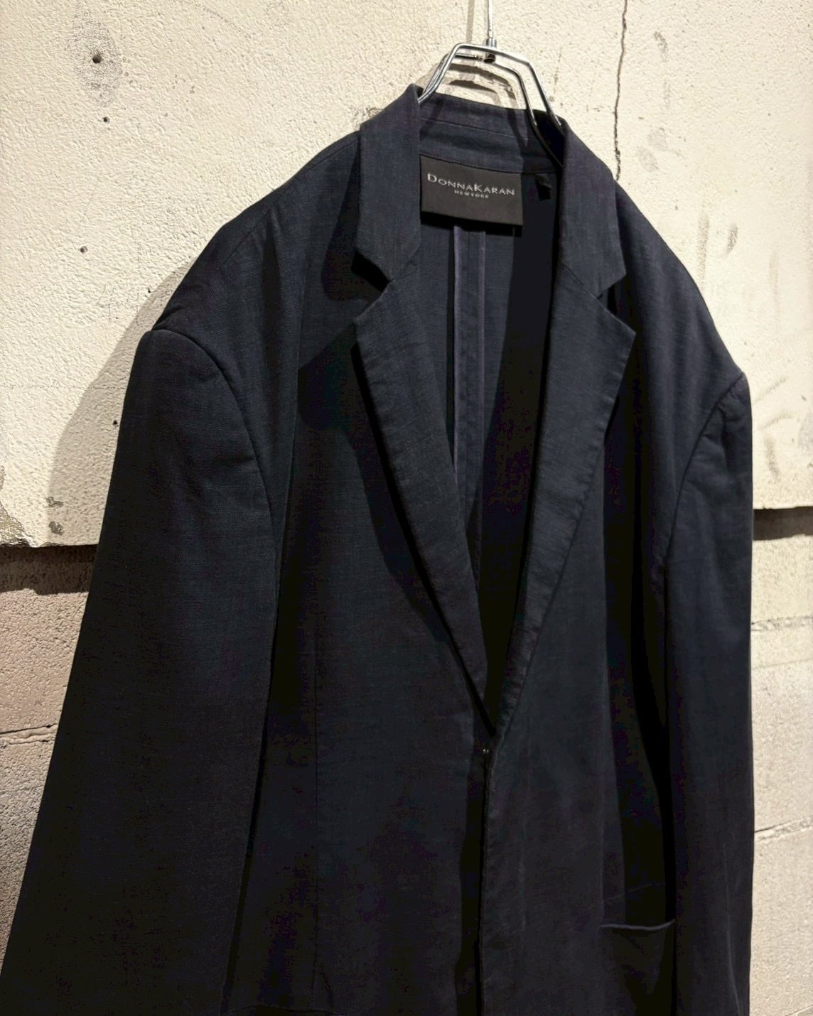 NYを代表するブランド“DONNA KARAN”より、ブランドらしいミニマルな思想が色濃く反映されたリネンテーラードジャケットをご紹介いたします。