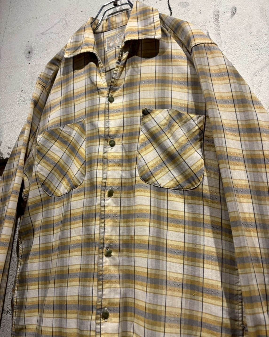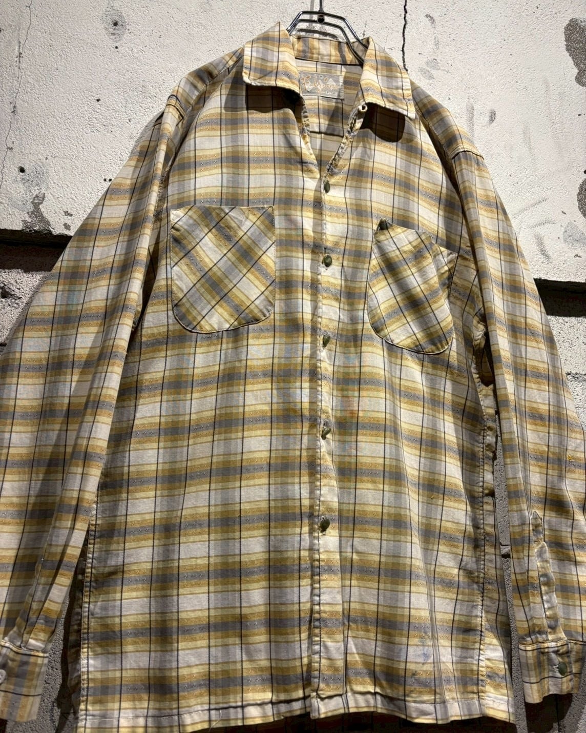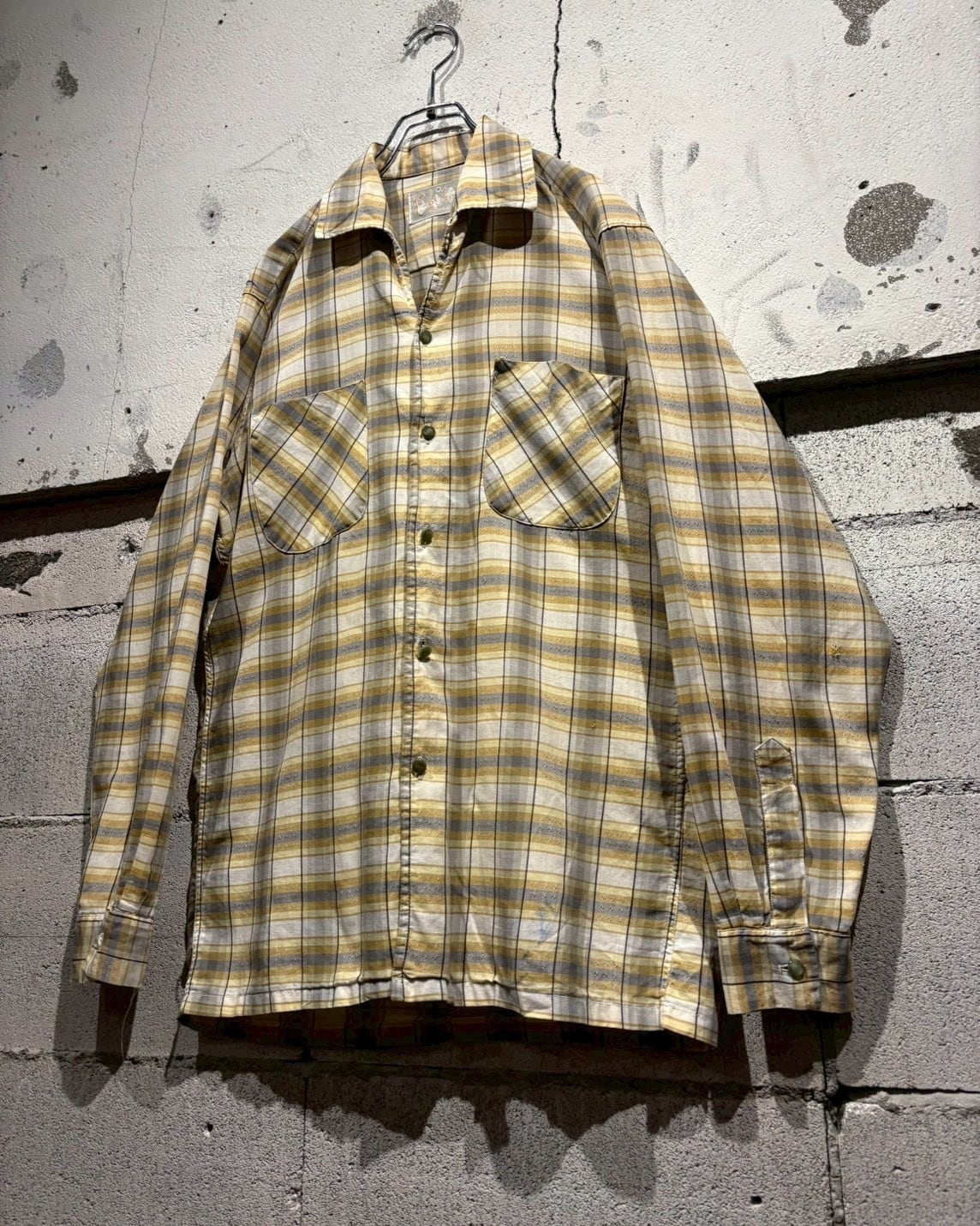 黄色、ベージュ、グレー、白の配色が抜群に洒落た、50's〜60'sヴィンテージの長袖シャツをご紹介いたします。