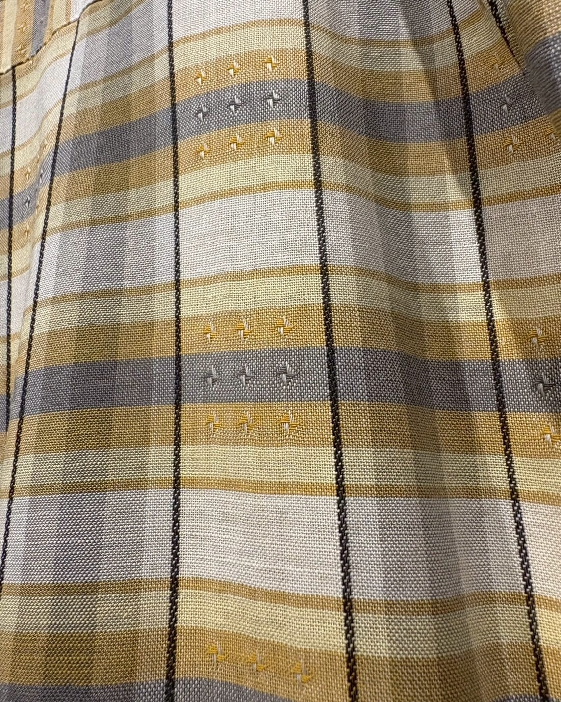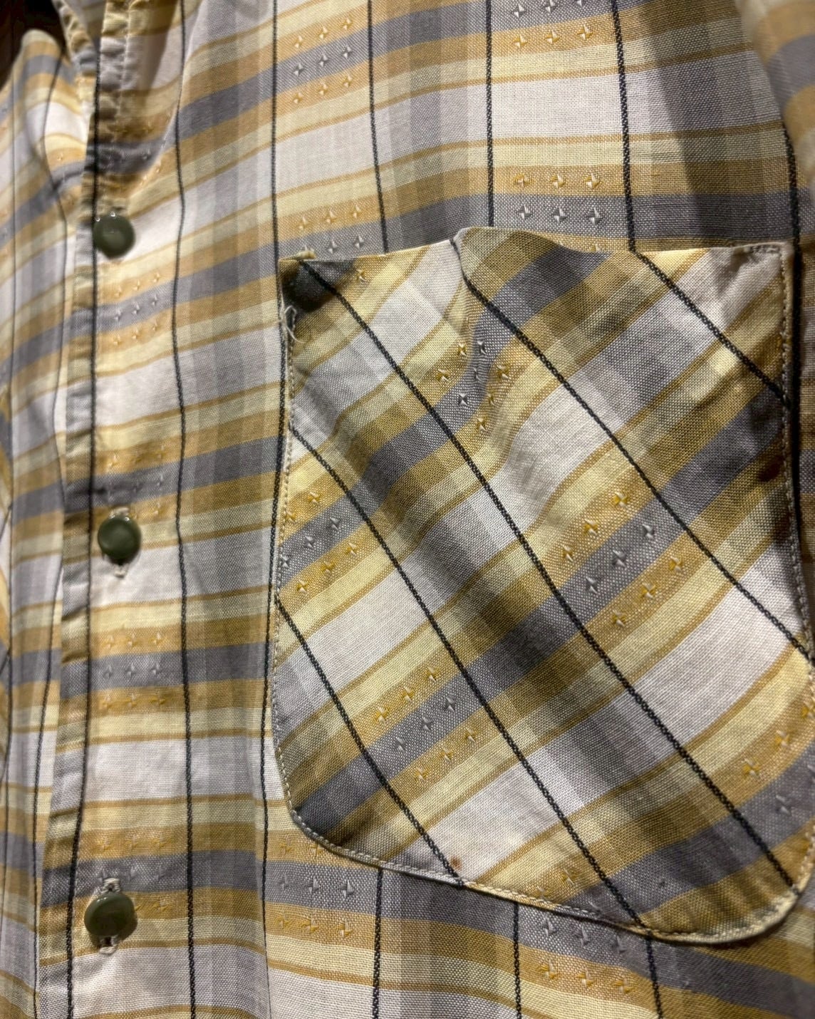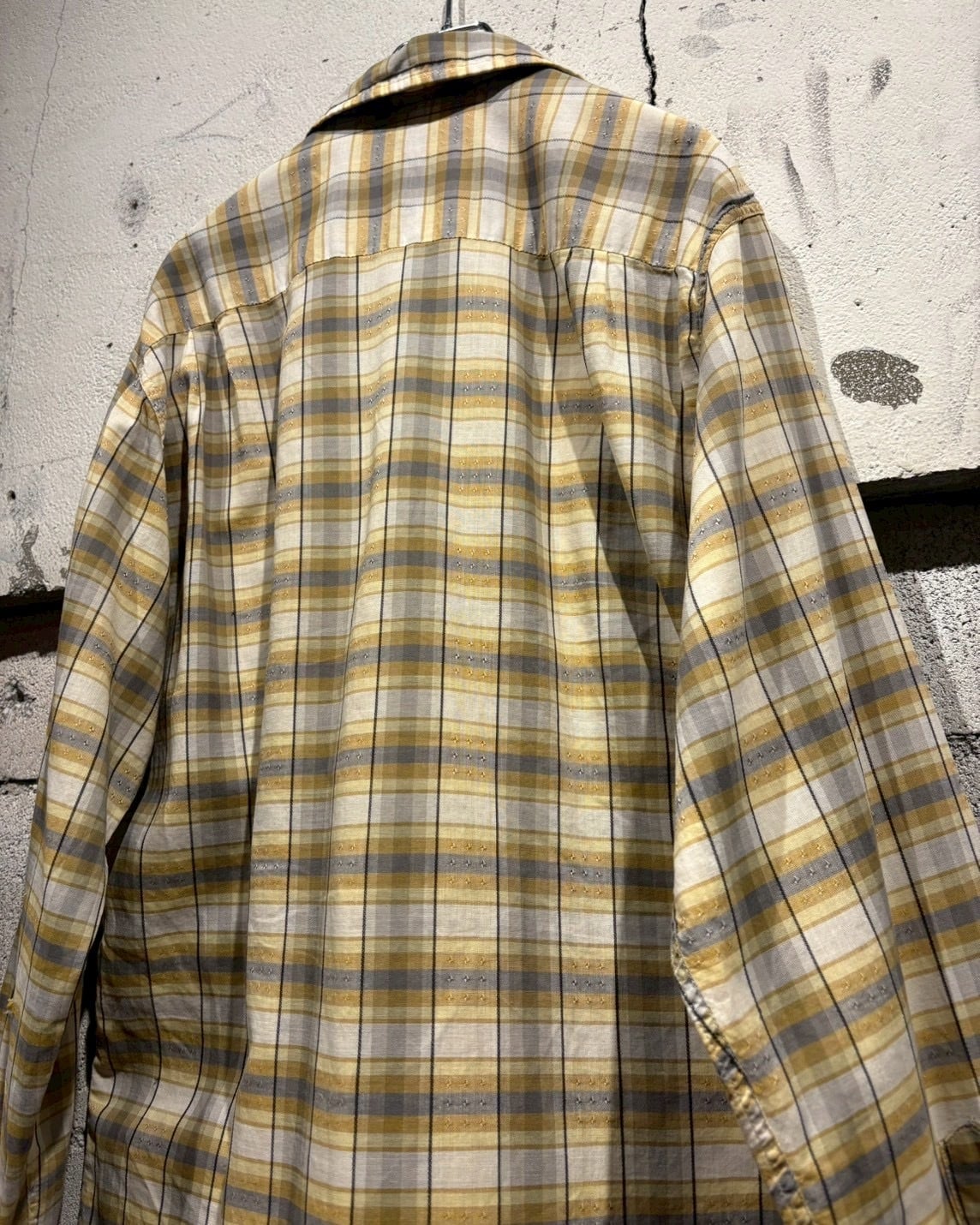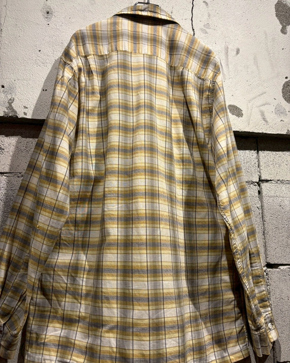 黄色、ベージュ、グレー、白の配色が抜群に洒落た、50's〜60'sヴィンテージの長袖シャツをご紹介いたします。