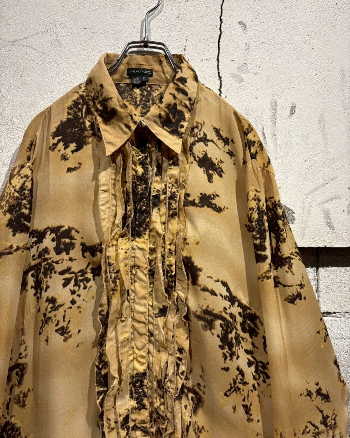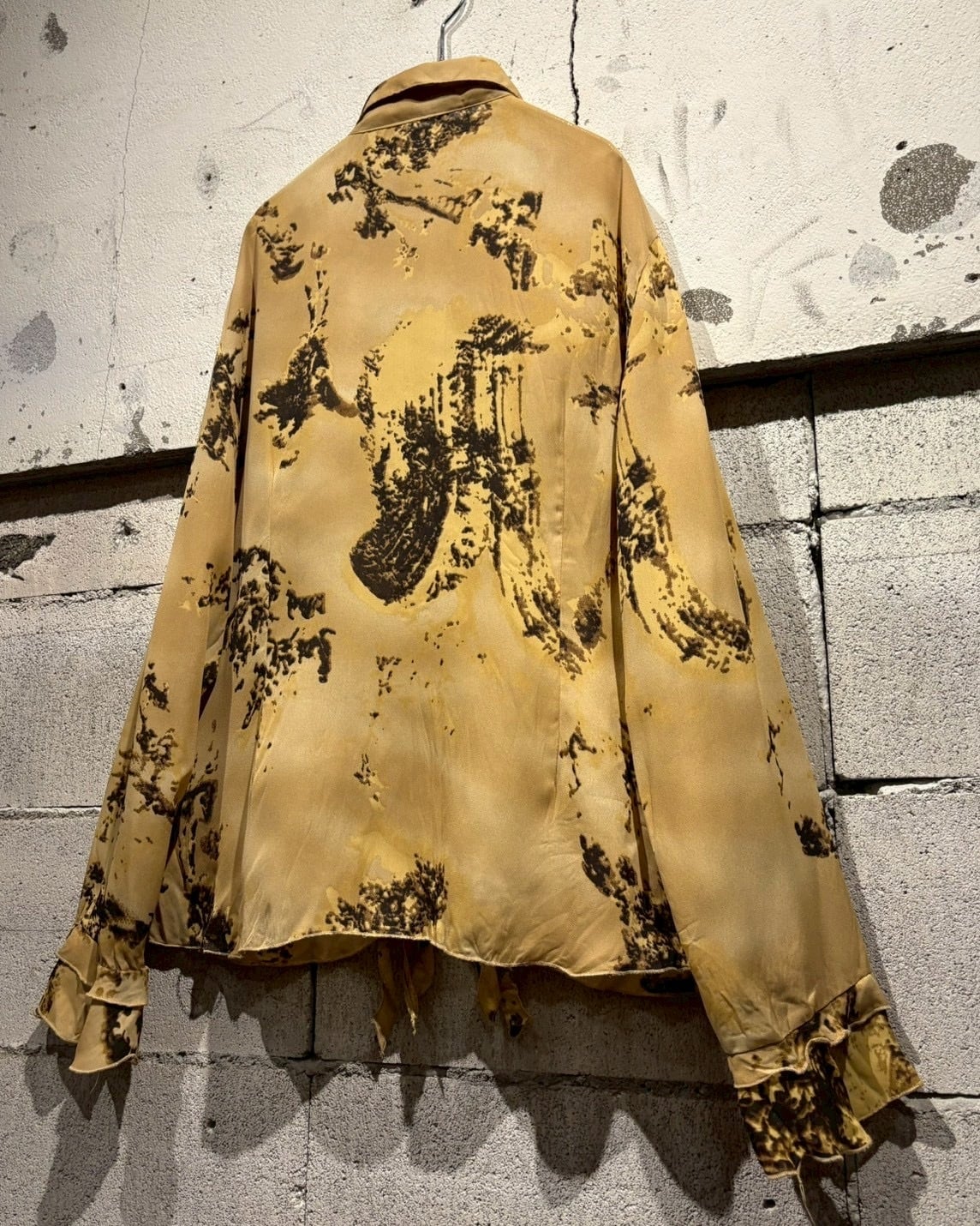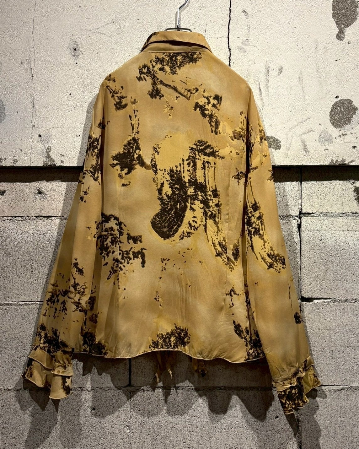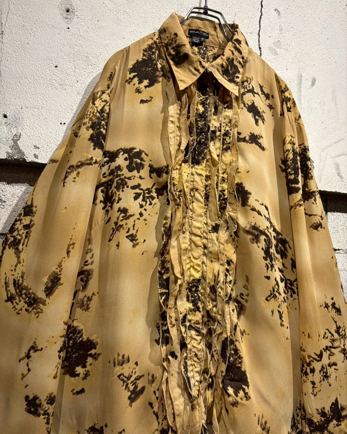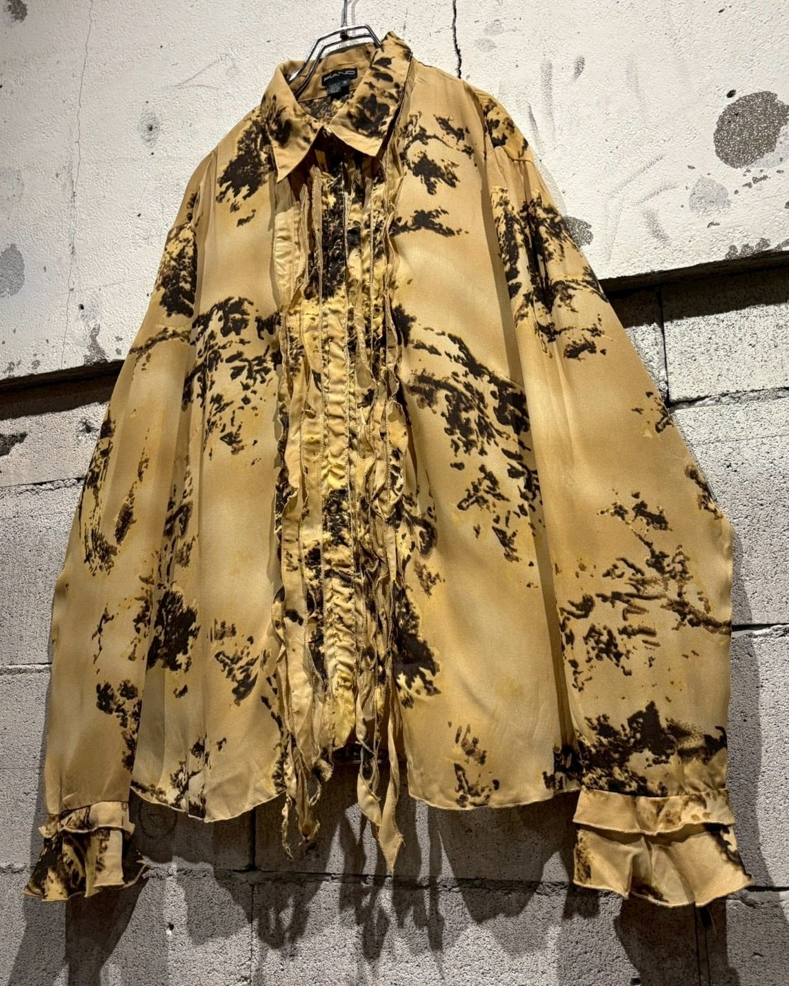 軽やかな素材使いと退廃的なデザインが合わさった、ムードを纏うフリルシャツをご紹介いたします。