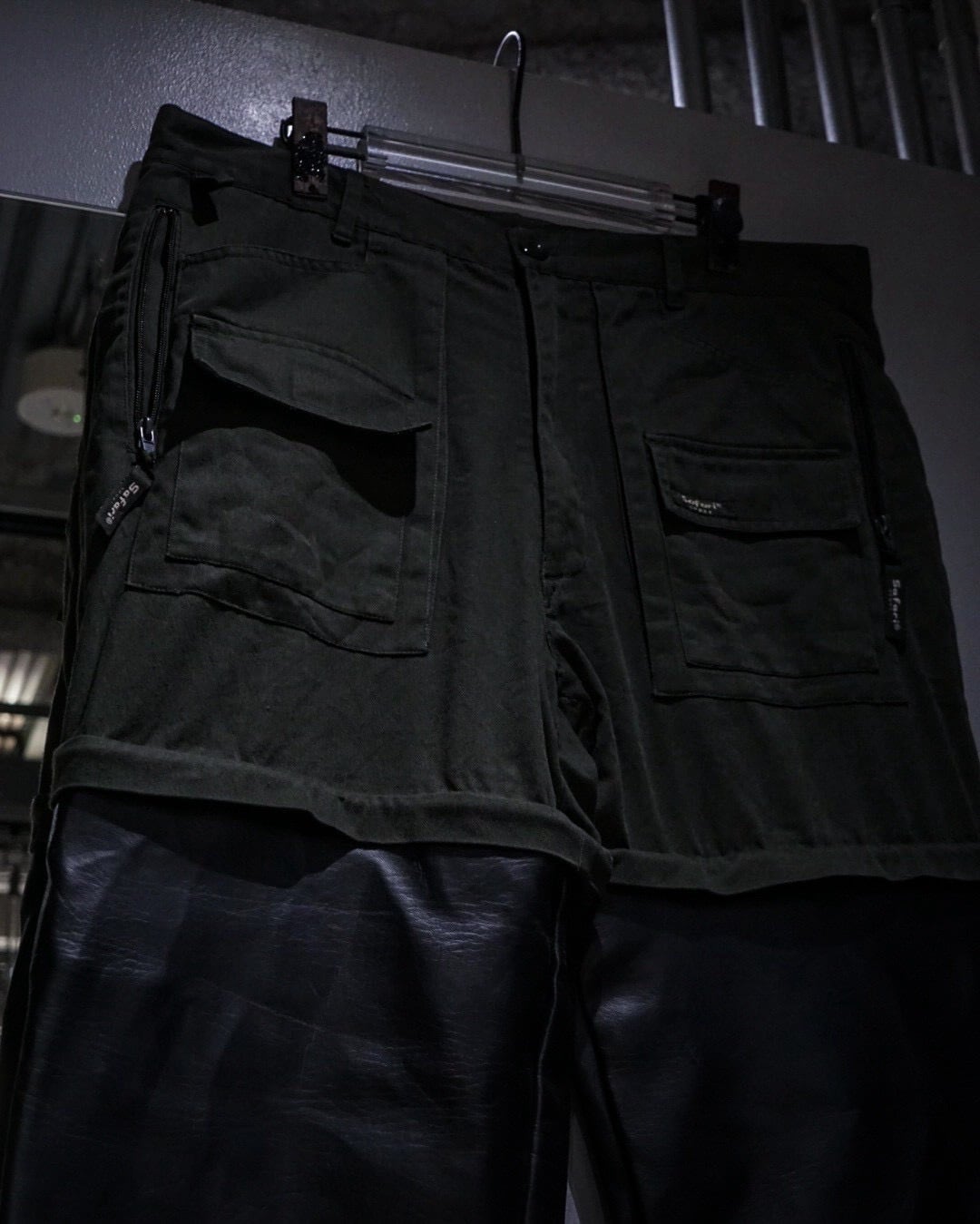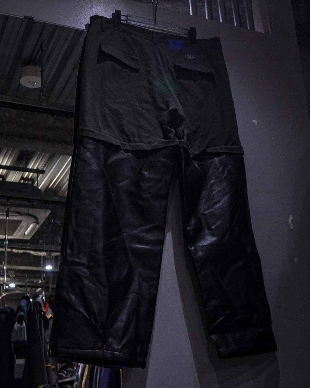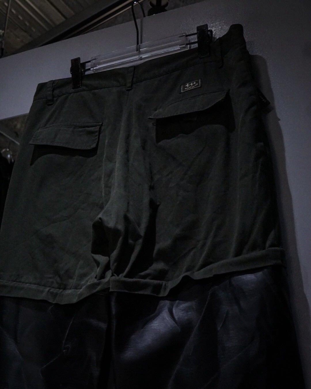 元来コンバーチブル仕様であったパンツの下部分を排除し、ジップの内側からレザーをドッキング。接合部はコンバーチブルの使用を上手く活かして隠してあったり、起毛感のあるネル生地を裏地全面に貼ることで着心地にも配慮されたカスタマイズが随所に施されています。