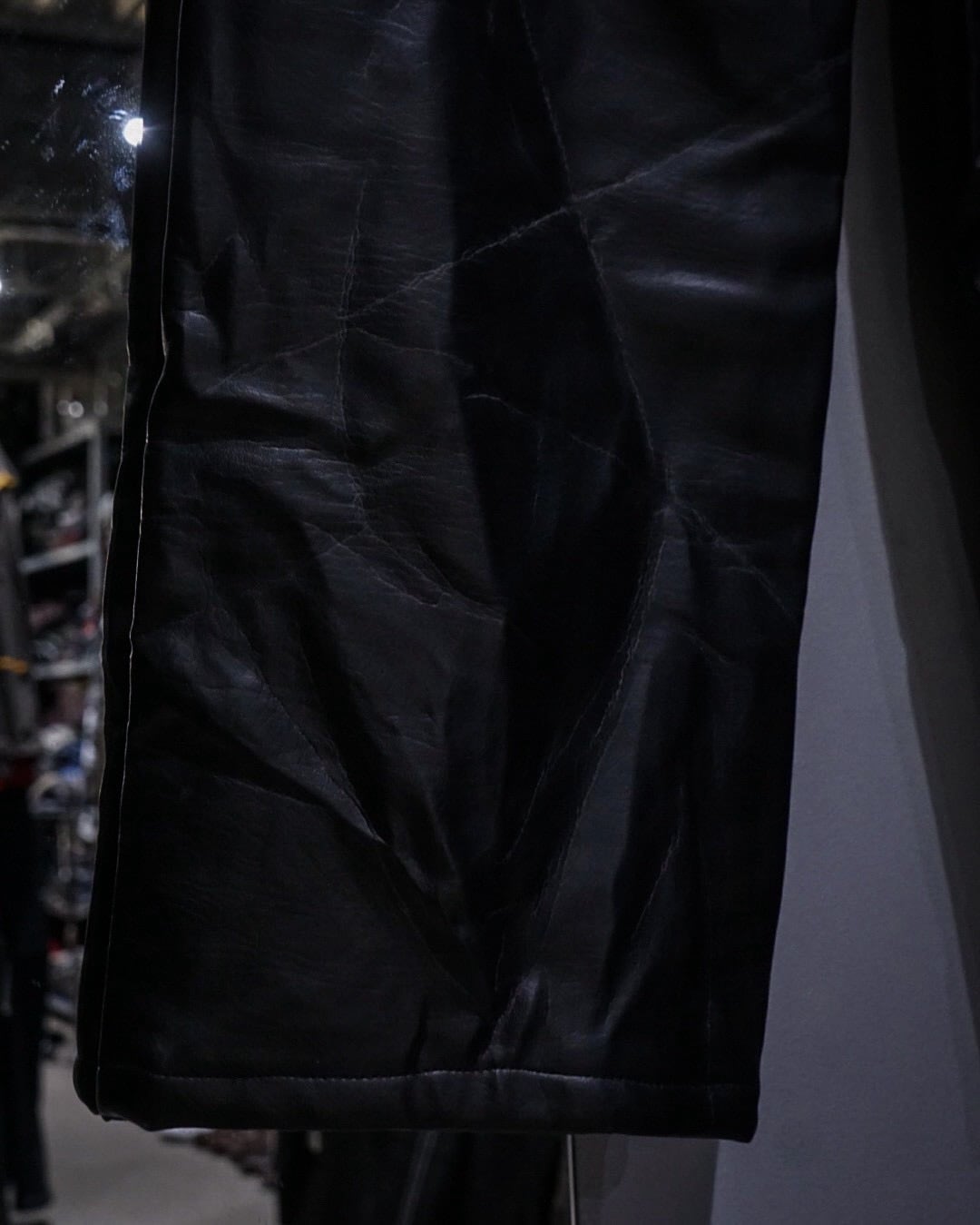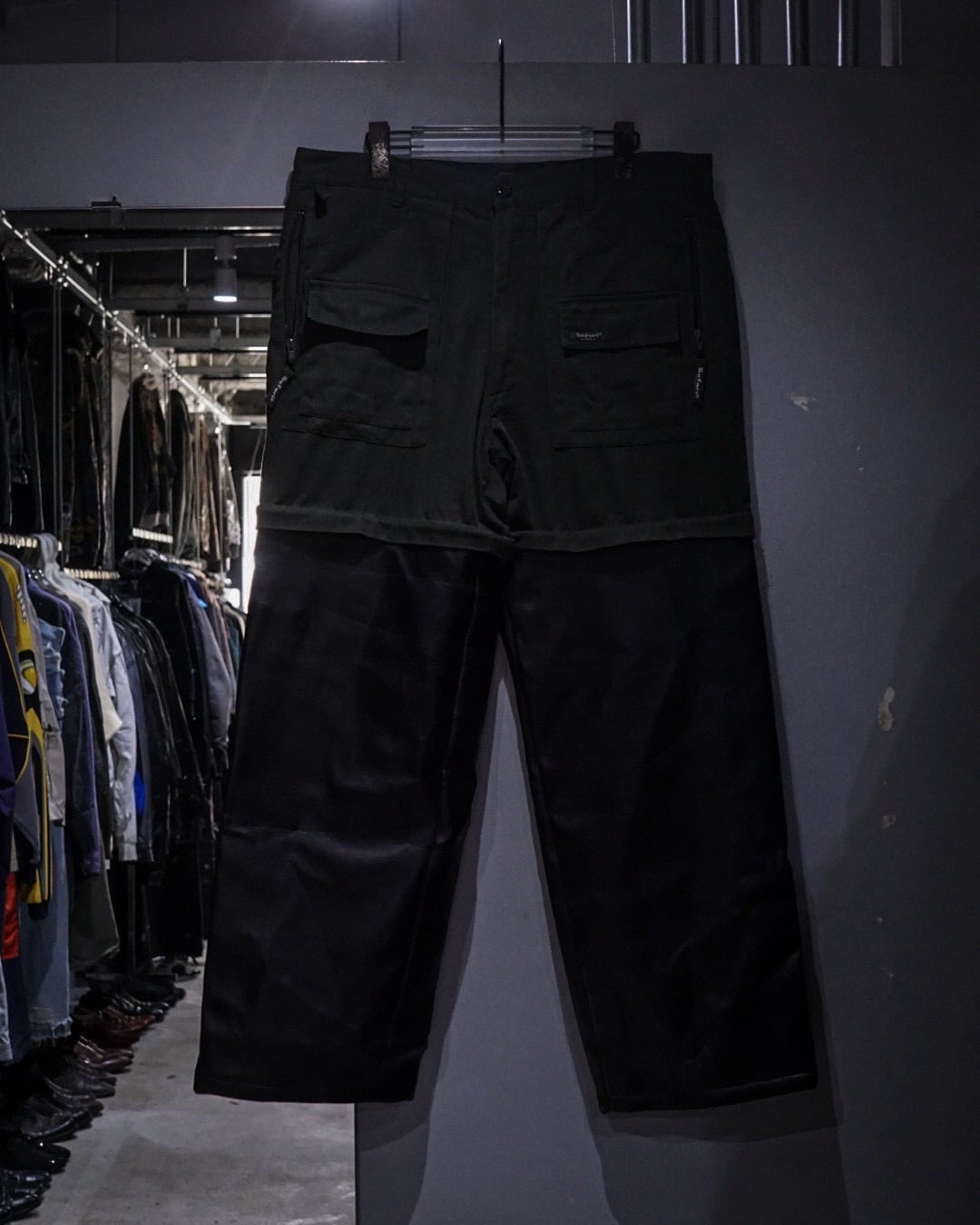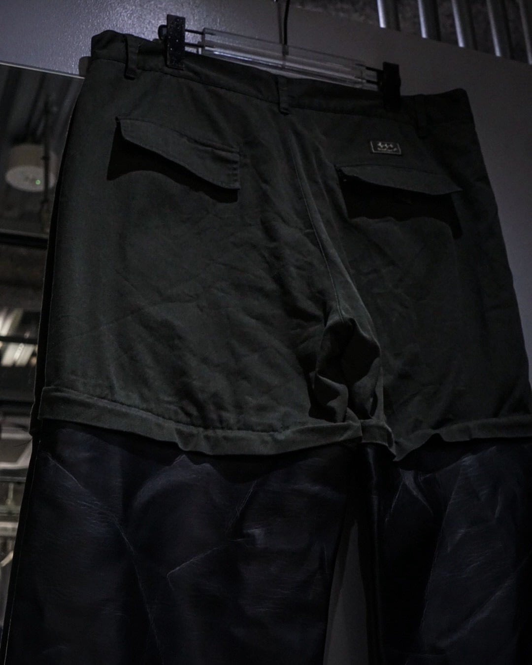 元来コンバーチブル仕様であったパンツの下部分を排除し、ジップの内側からレザーをドッキング。接合部はコンバーチブルの使用を上手く活かして隠してあったり、起毛感のあるネル生地を裏地全面に貼ることで着心地にも配慮されたカスタマイズが随所に施されています。