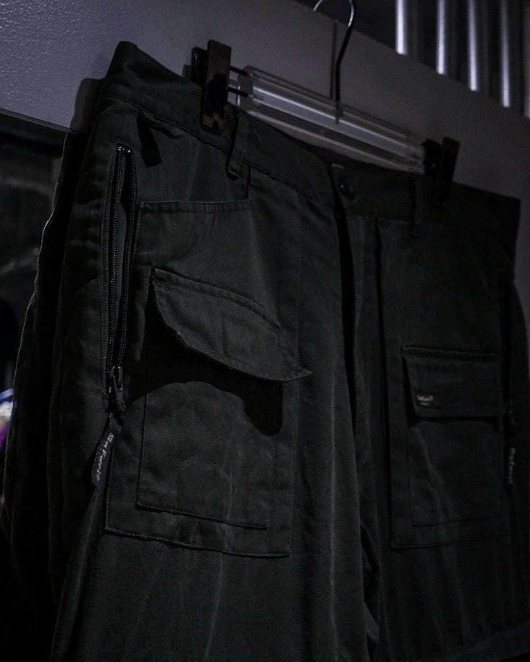 フロントには大小様々なデザインのポケットを配置。バックにもフラップポケットを備え、機能性とデザイン性を両立。ジップの無機質な表情やフラップの重なりが、ギア的な雰囲気を一層強調しています。
