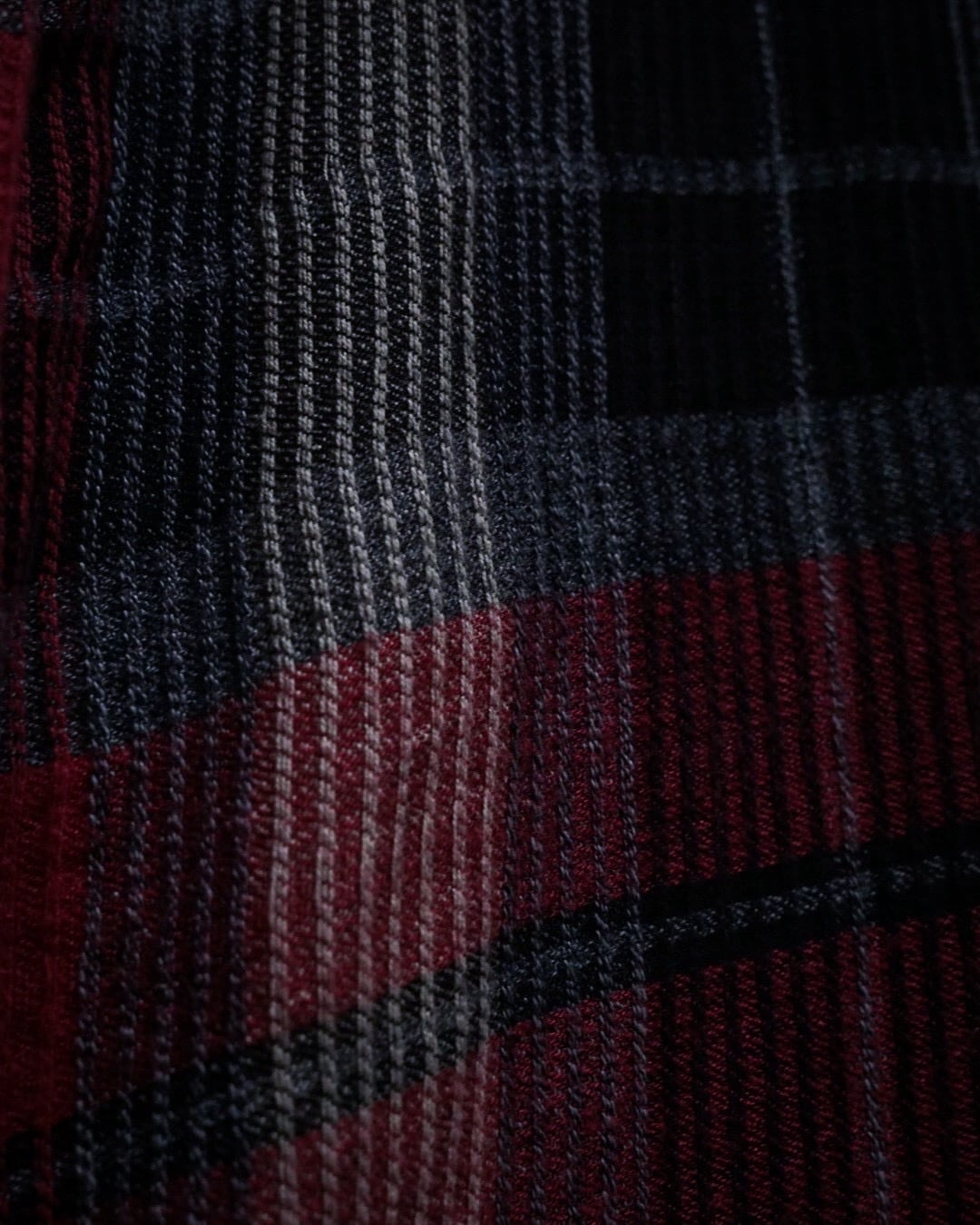 ボディにはコットン×レーヨン混紡素材を採用し、程よく落ち感のある柔らかな質感が特徴。クラシックなチェックパターンでありながらも、生地のしなやかさによってラフさと品のバランスが取れた1着に仕上がっています。