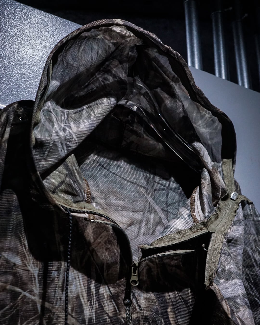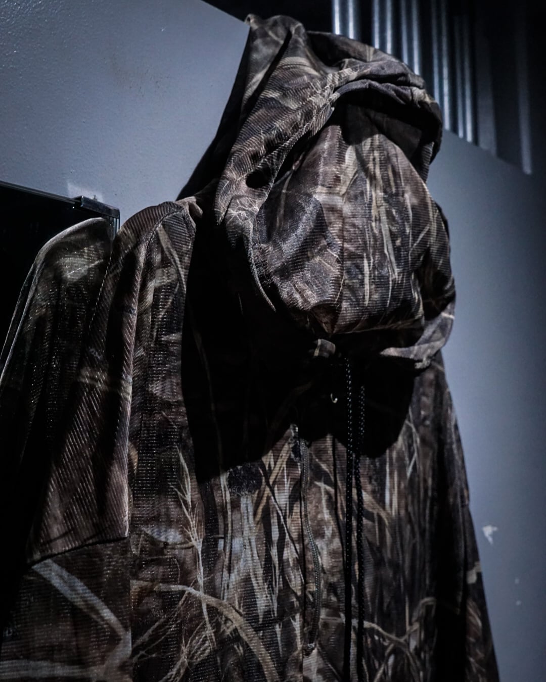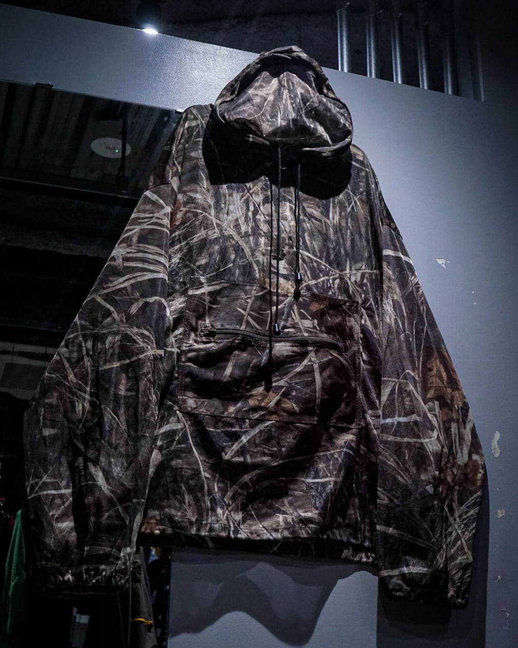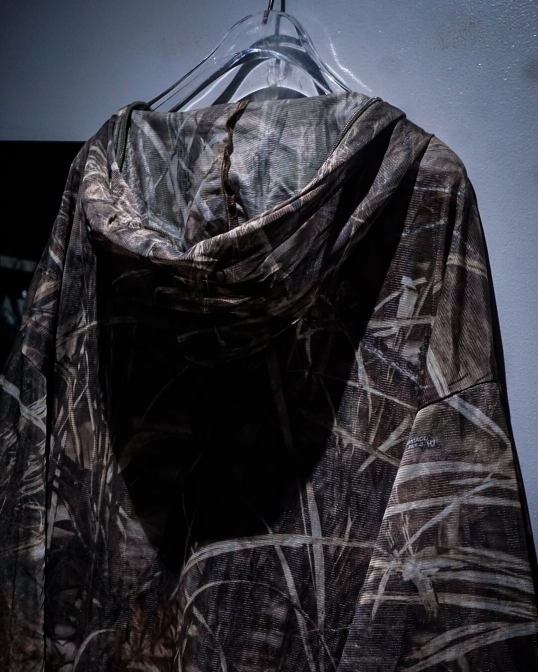 全体に迷彩柄を落とし込み、メッシュ素材特有の透け感と相まって、ストリート×テクニカルな表情に仕上がった1着。