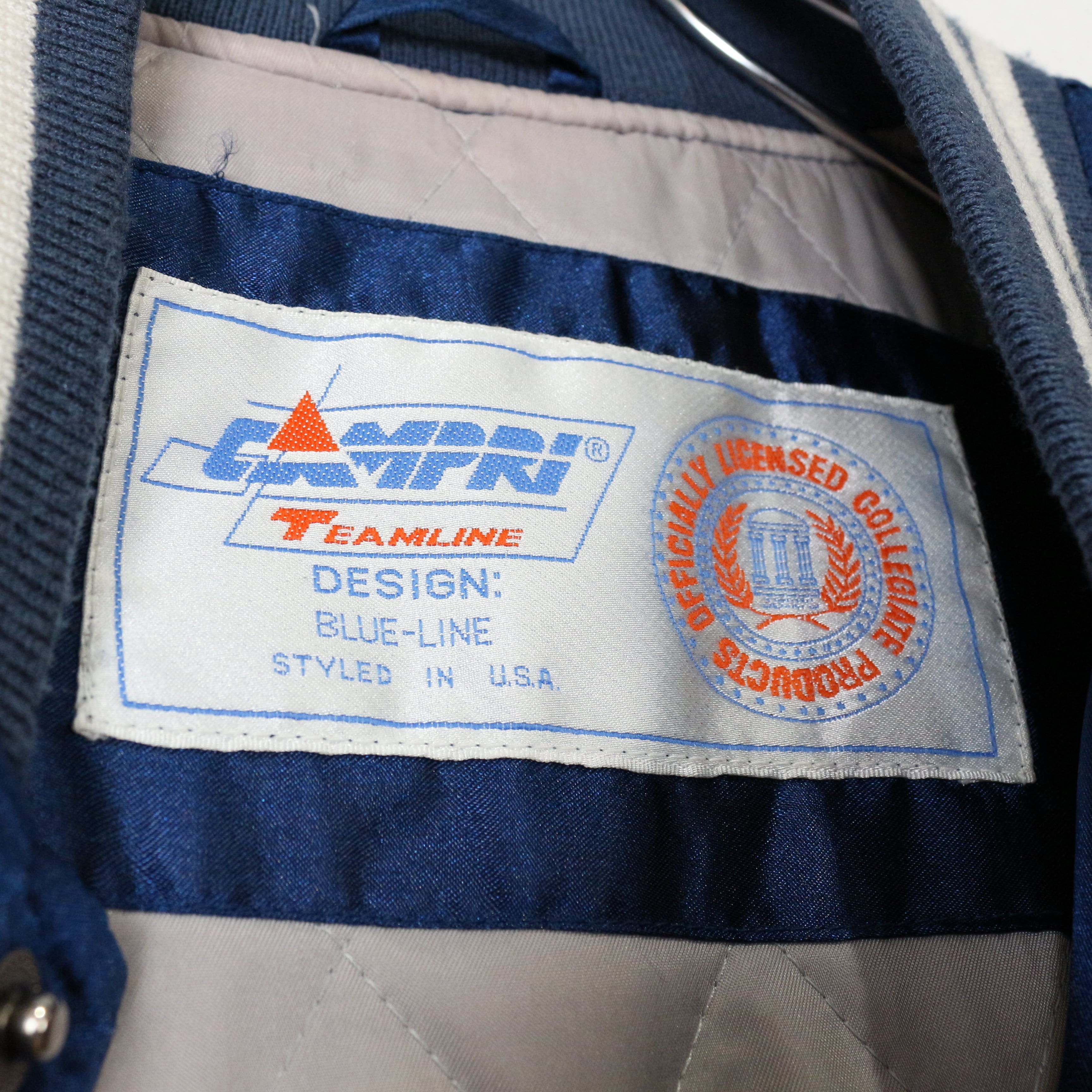 メタリックな光沢を放つブルーのボディをベースに、フロントには大ぶりな“YALE”のレタリングを配置。左袖にはマスコットである“ハンサムダン”の刺繍、右袖にはカレッジワッペンを施し、チーム物らしいアイコニックなデザインに仕上がっています。
