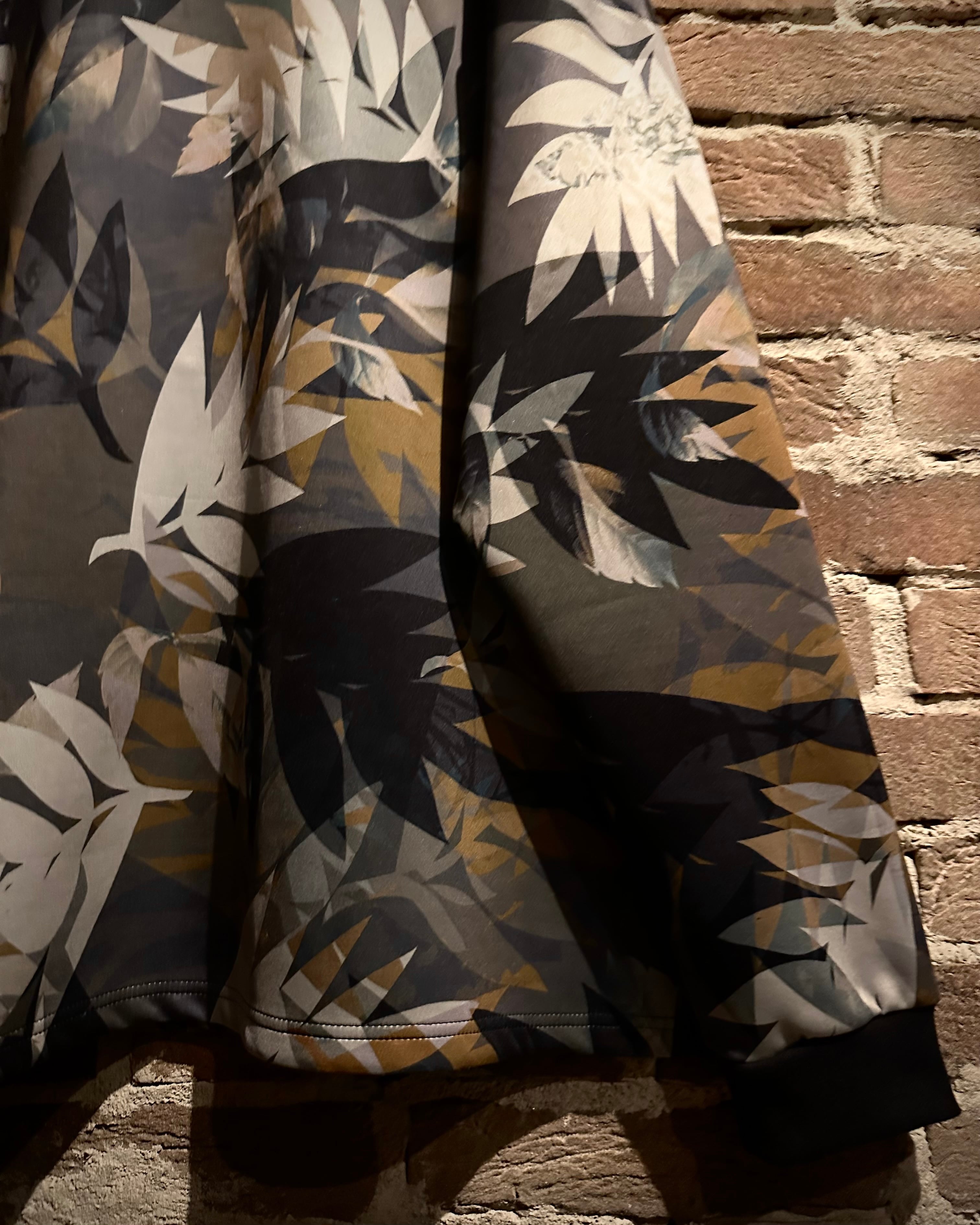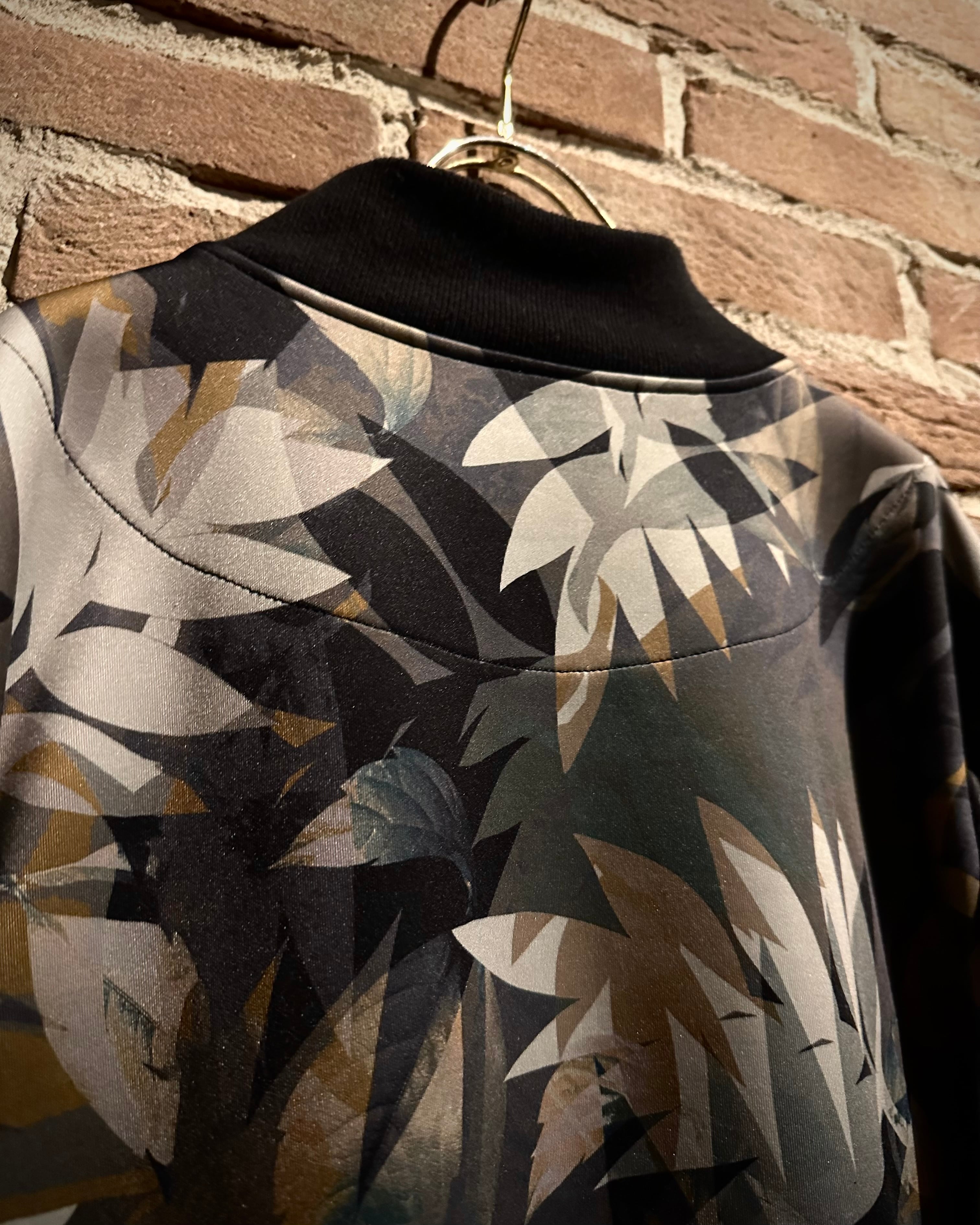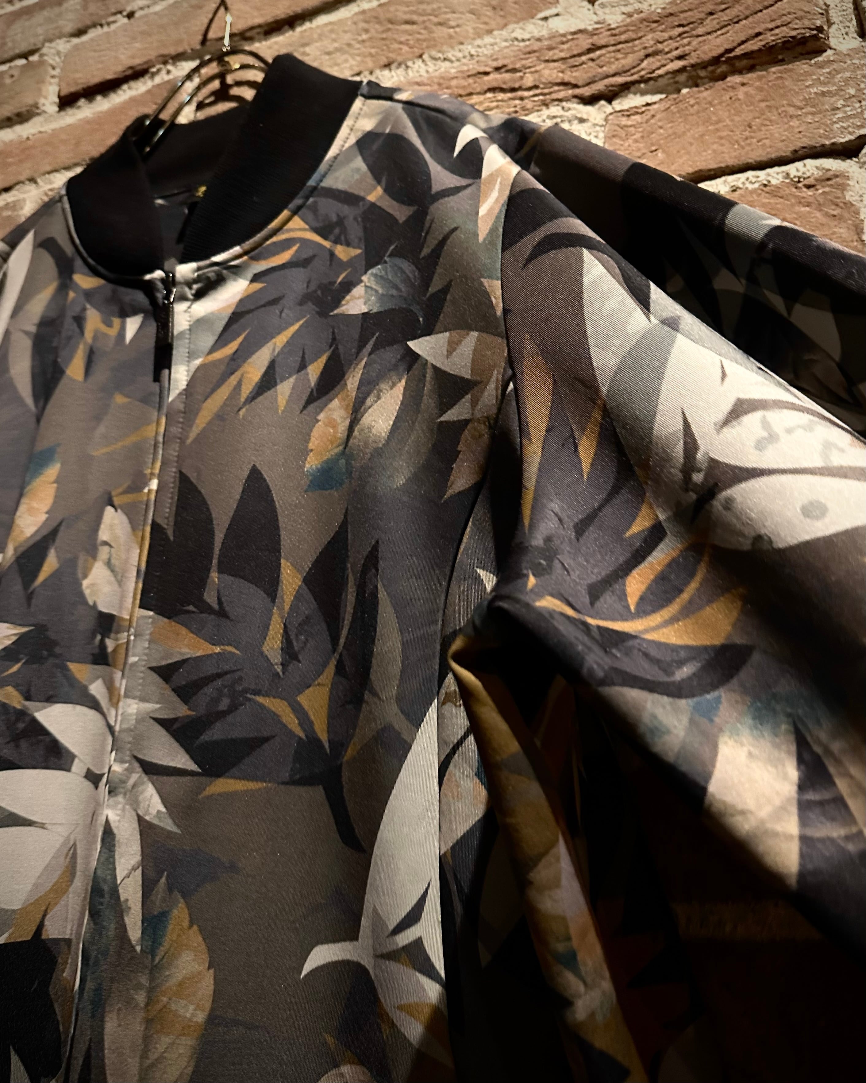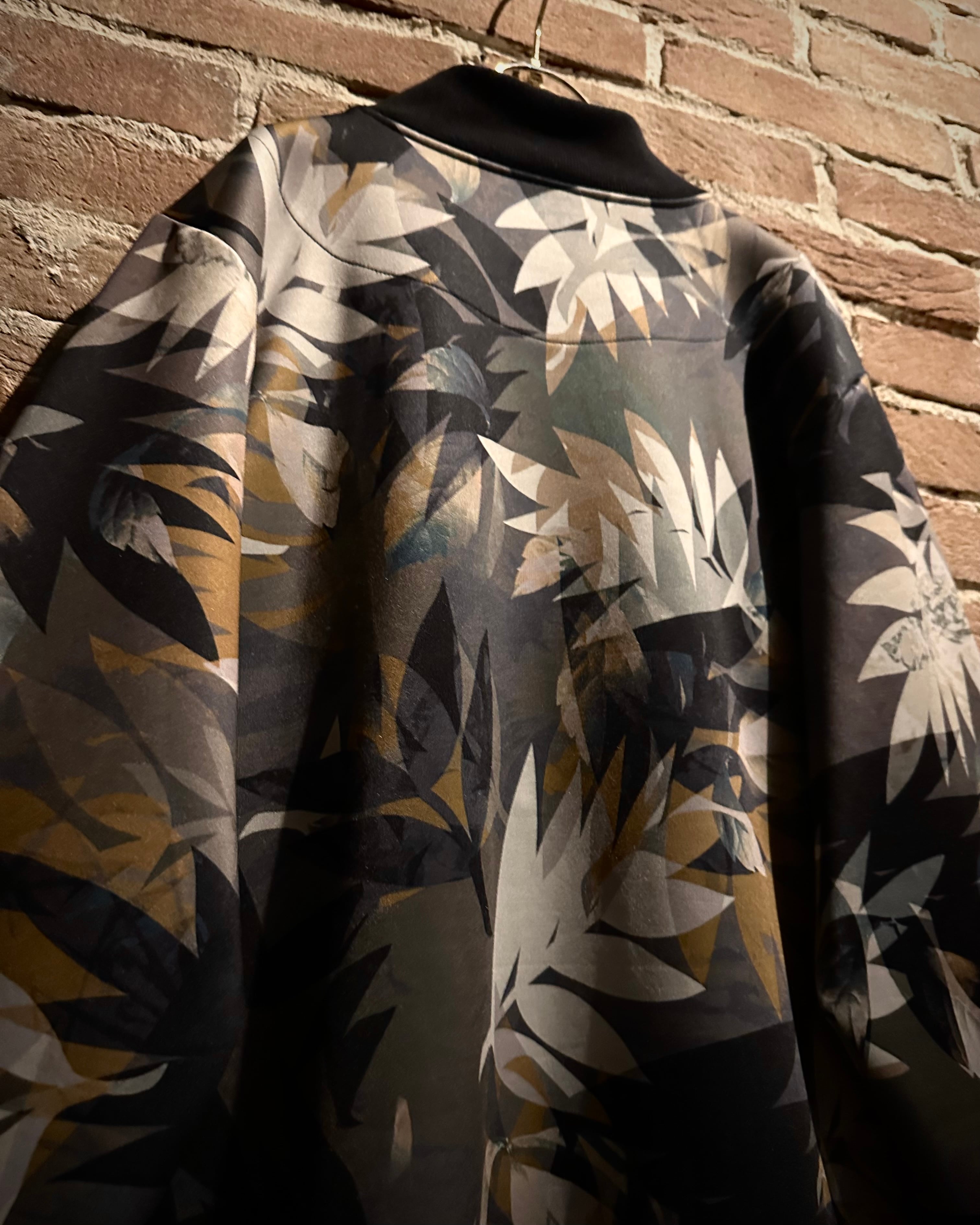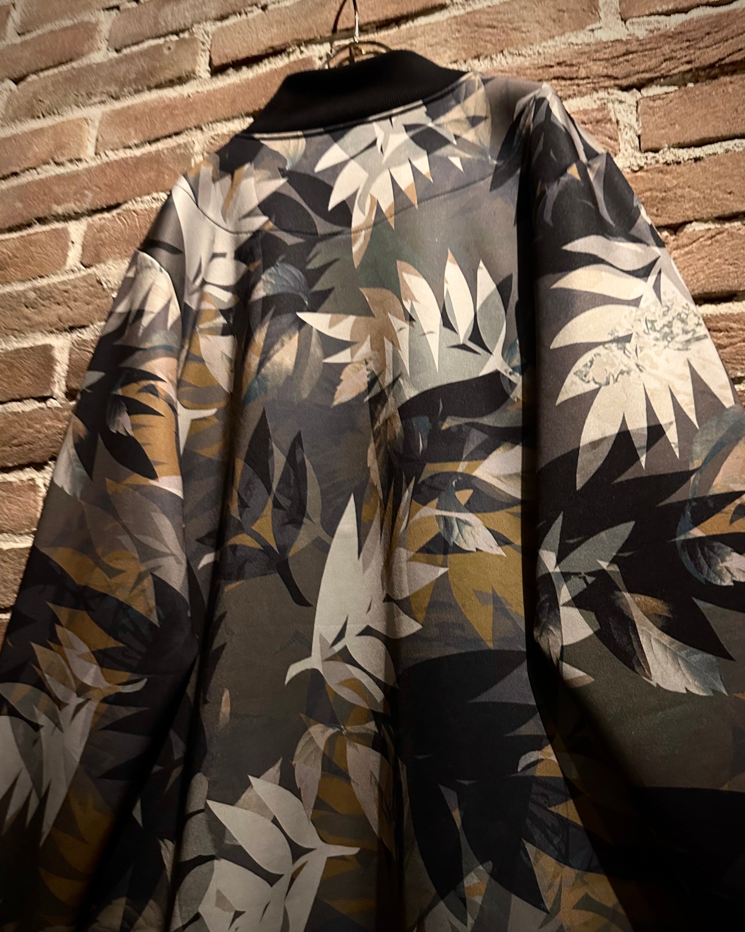 ツルッと滑らかなボディに、様々なカラーリングのリーフパターンを重ね合わせた、奥行きのあるデザインに仕上げられたブルゾン。