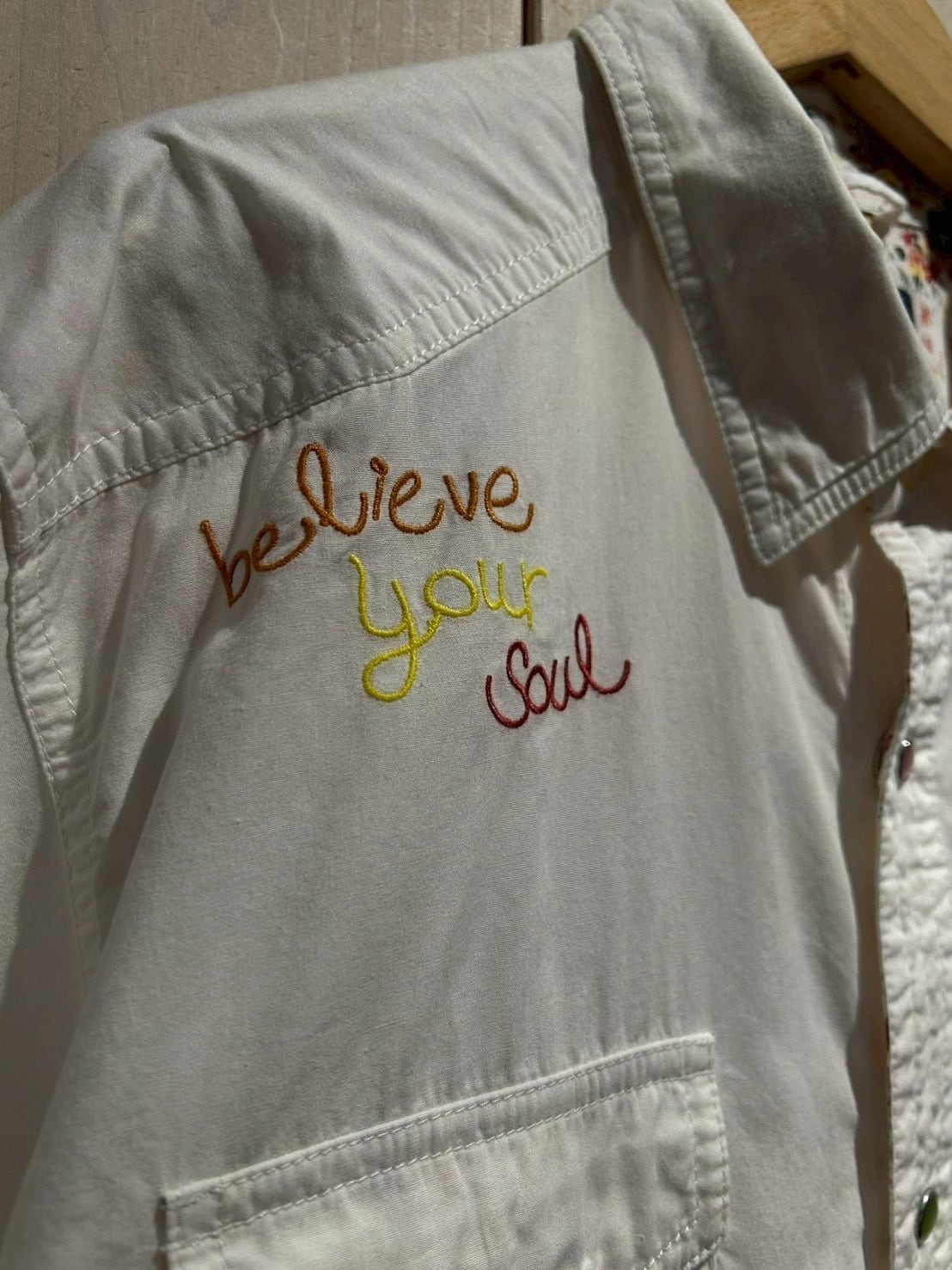クリーンなホワイトをベースに刺繍でデザインを落とし込んだ、ブランド内では稀有なウエスタンシャツの逸品。