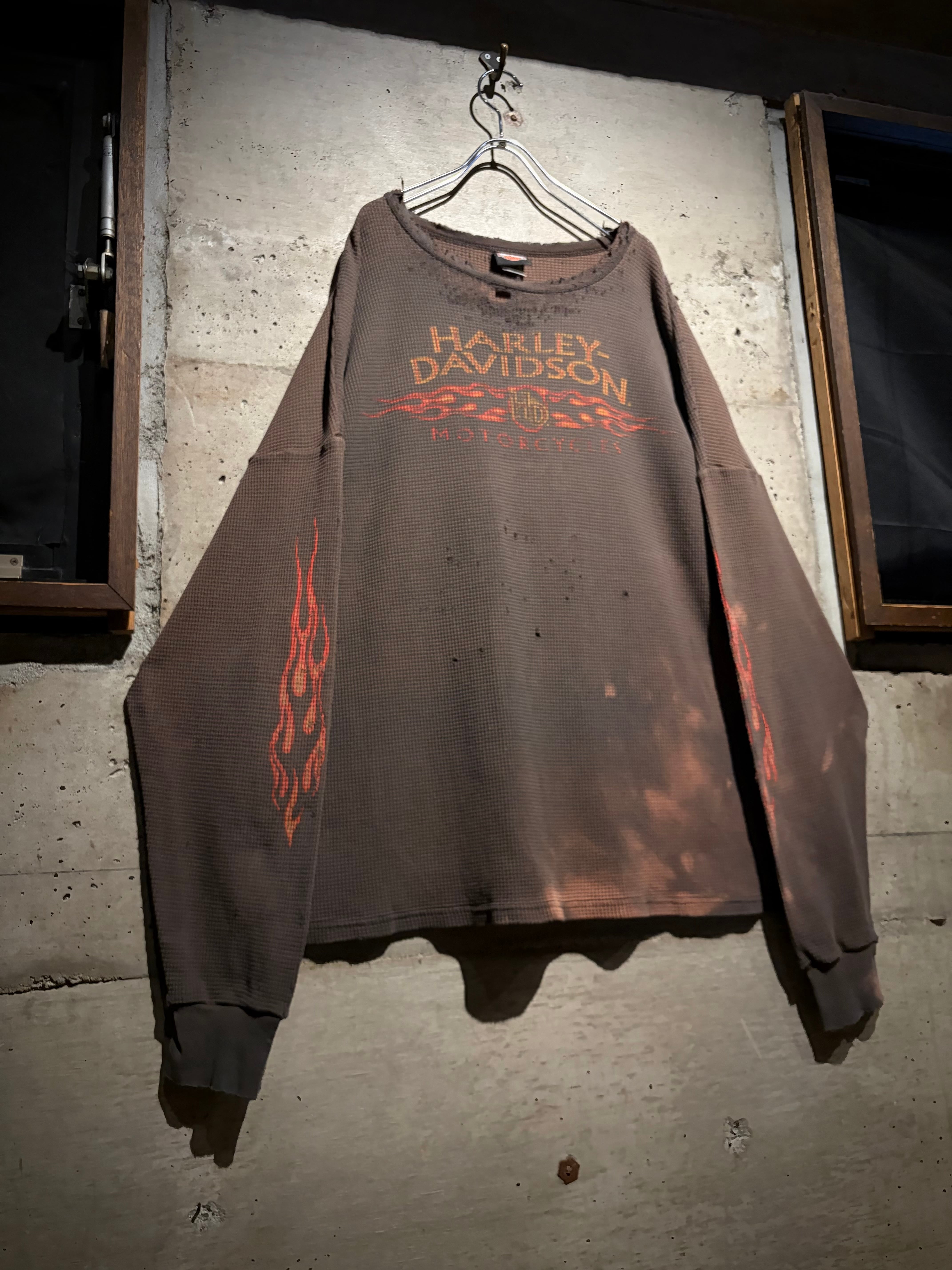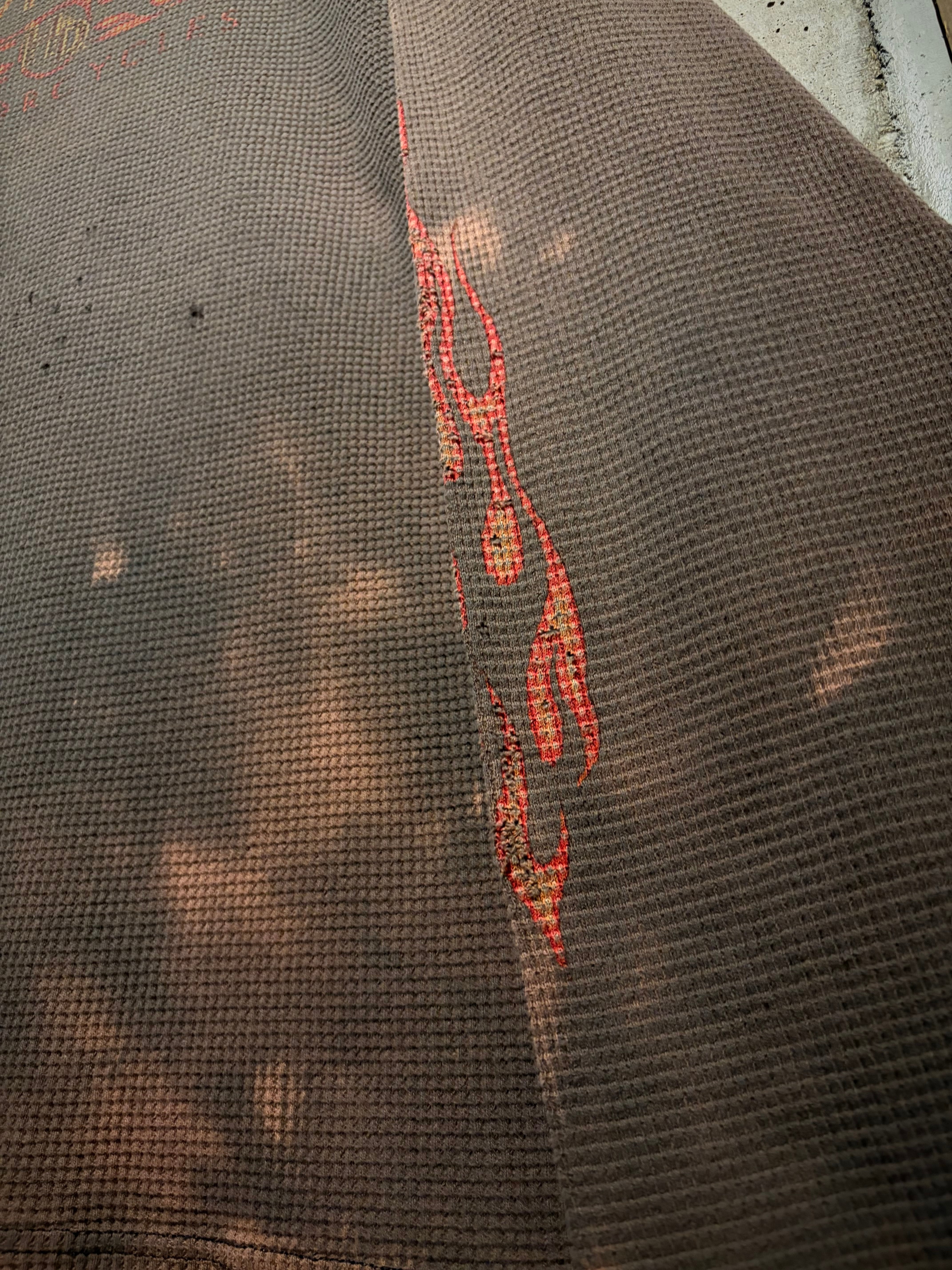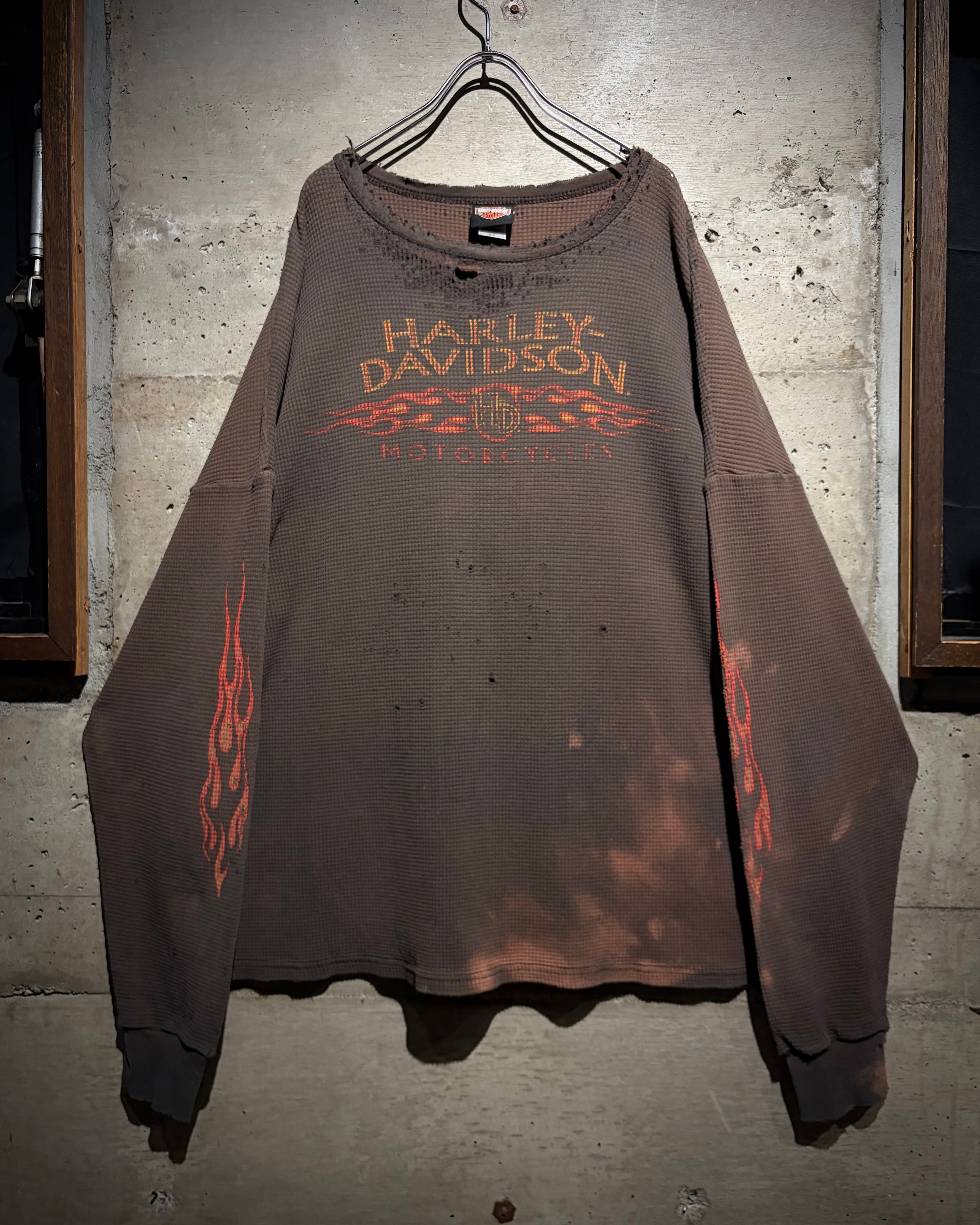 ハーレーの中でも人気の高いフレイムパターンと、"ボロ"の要素が掛け合わされた、古着ならではの魅力が凝縮されたスペシャルピースとなっております。