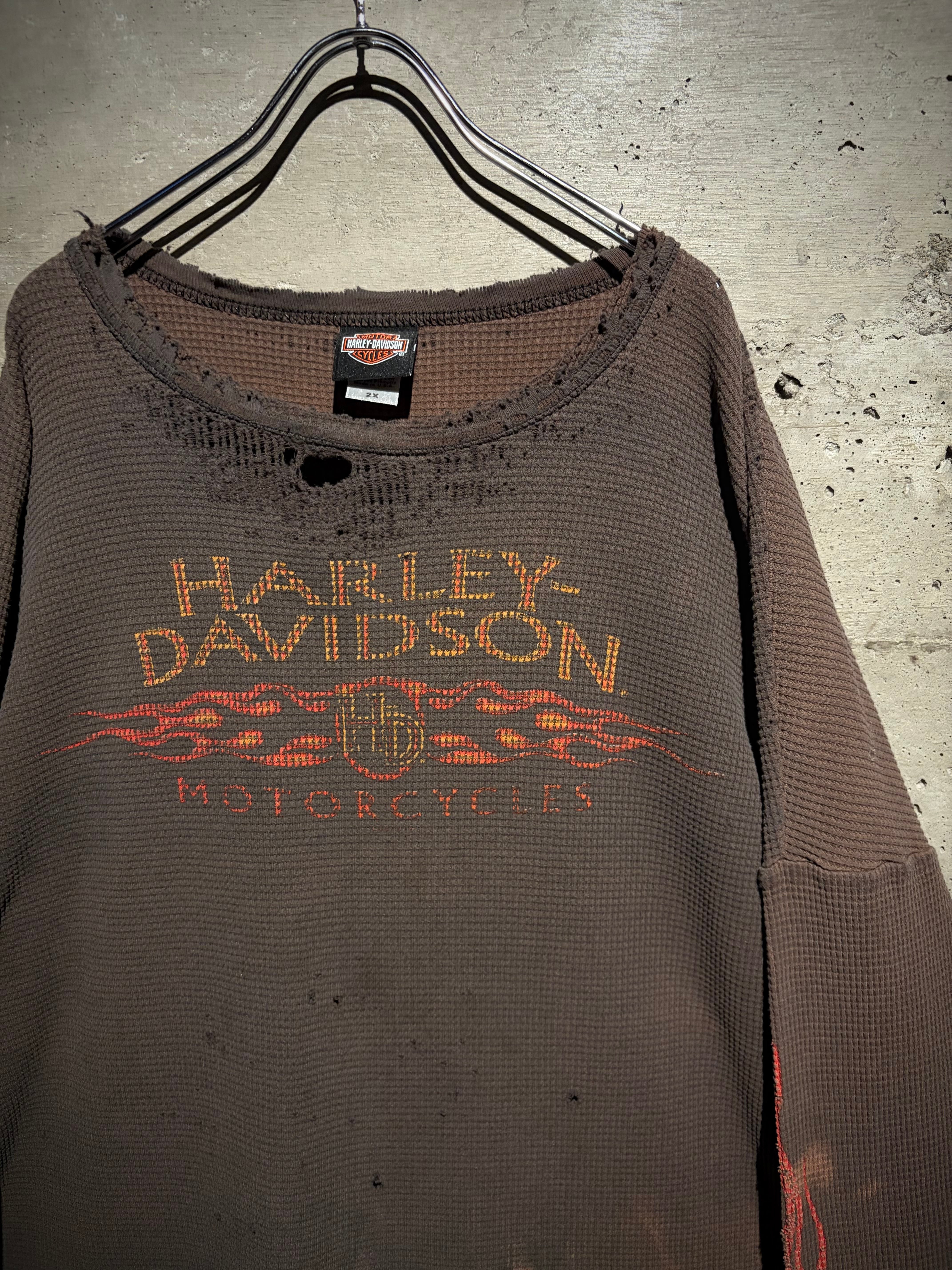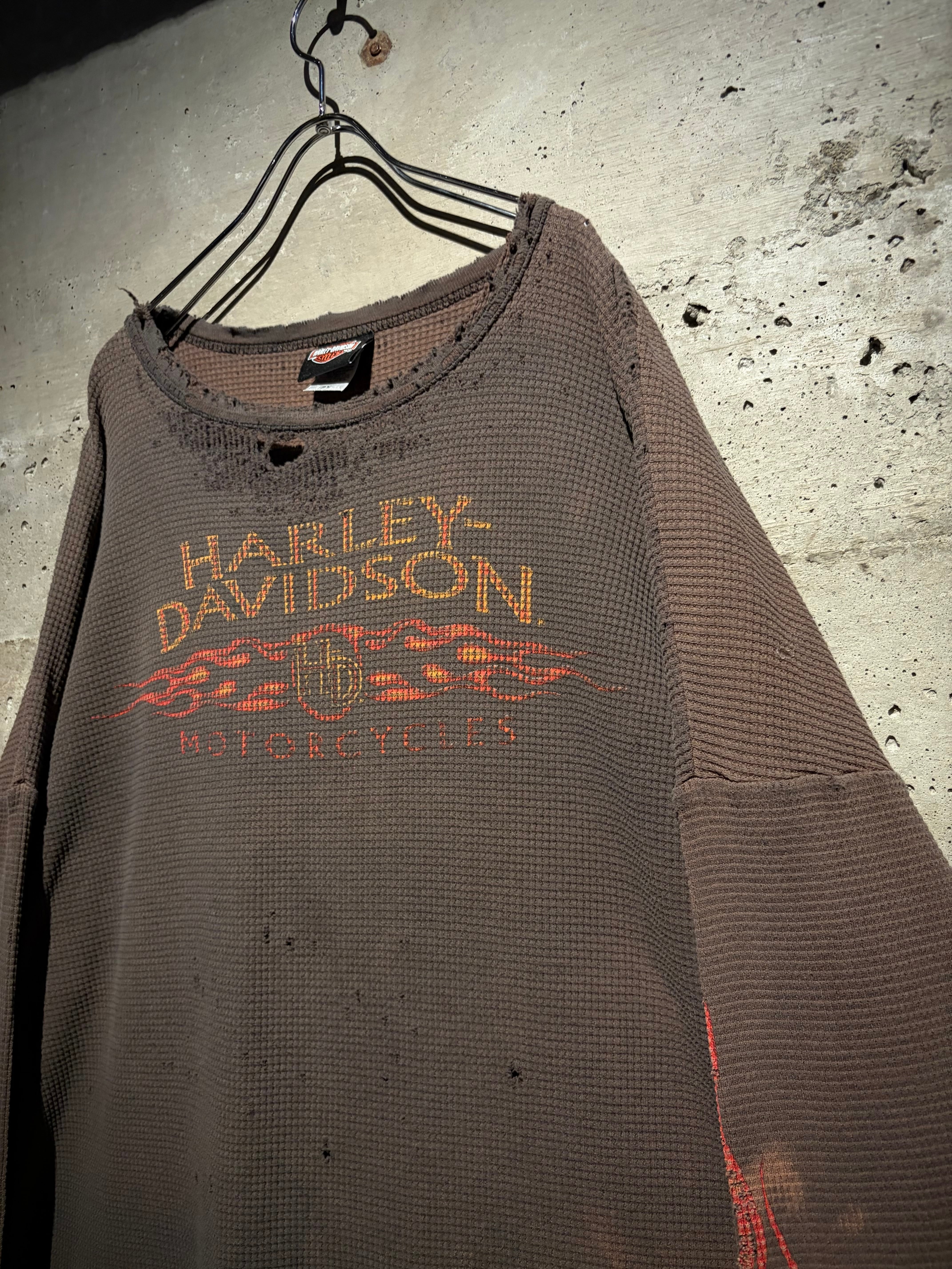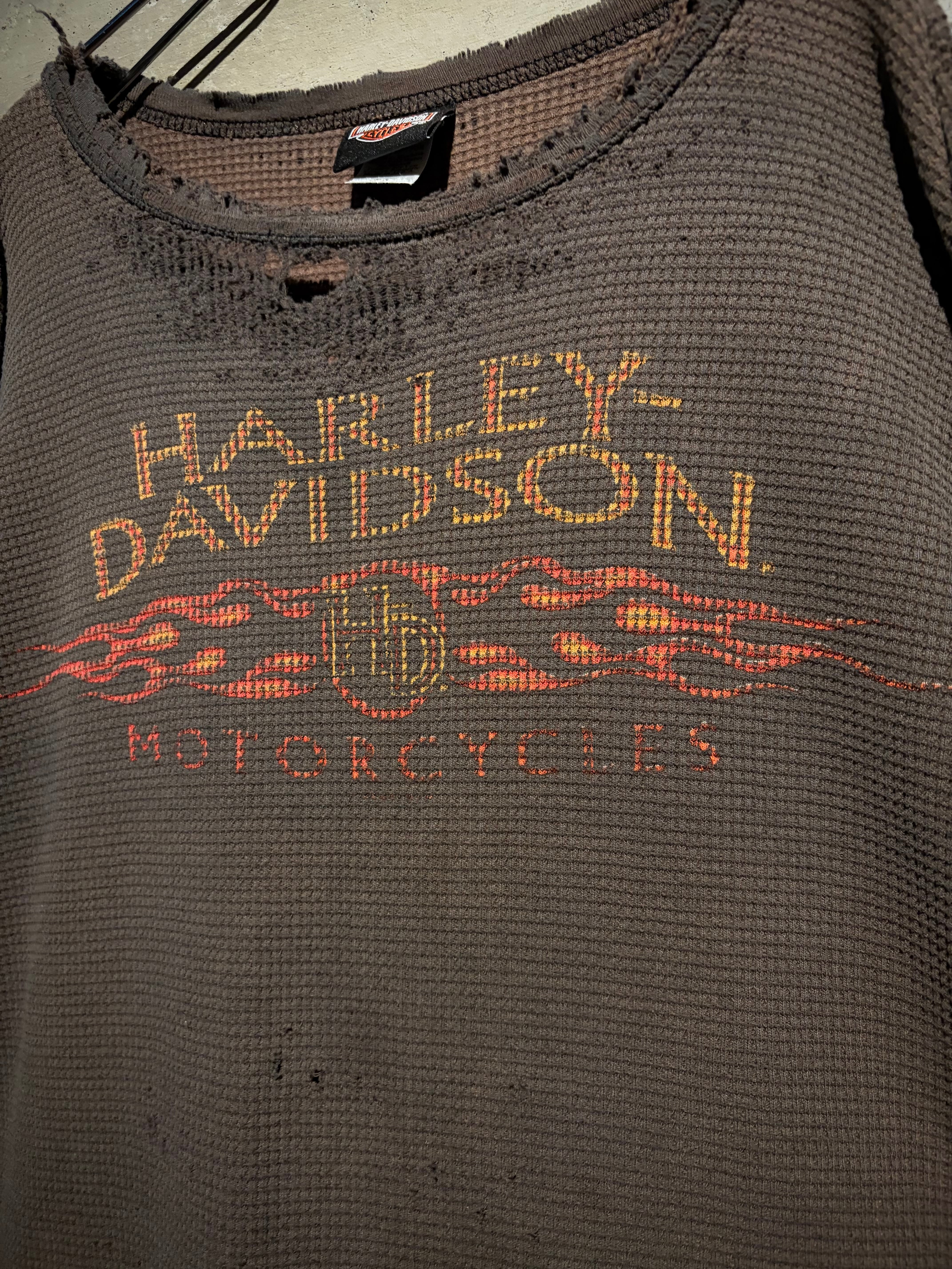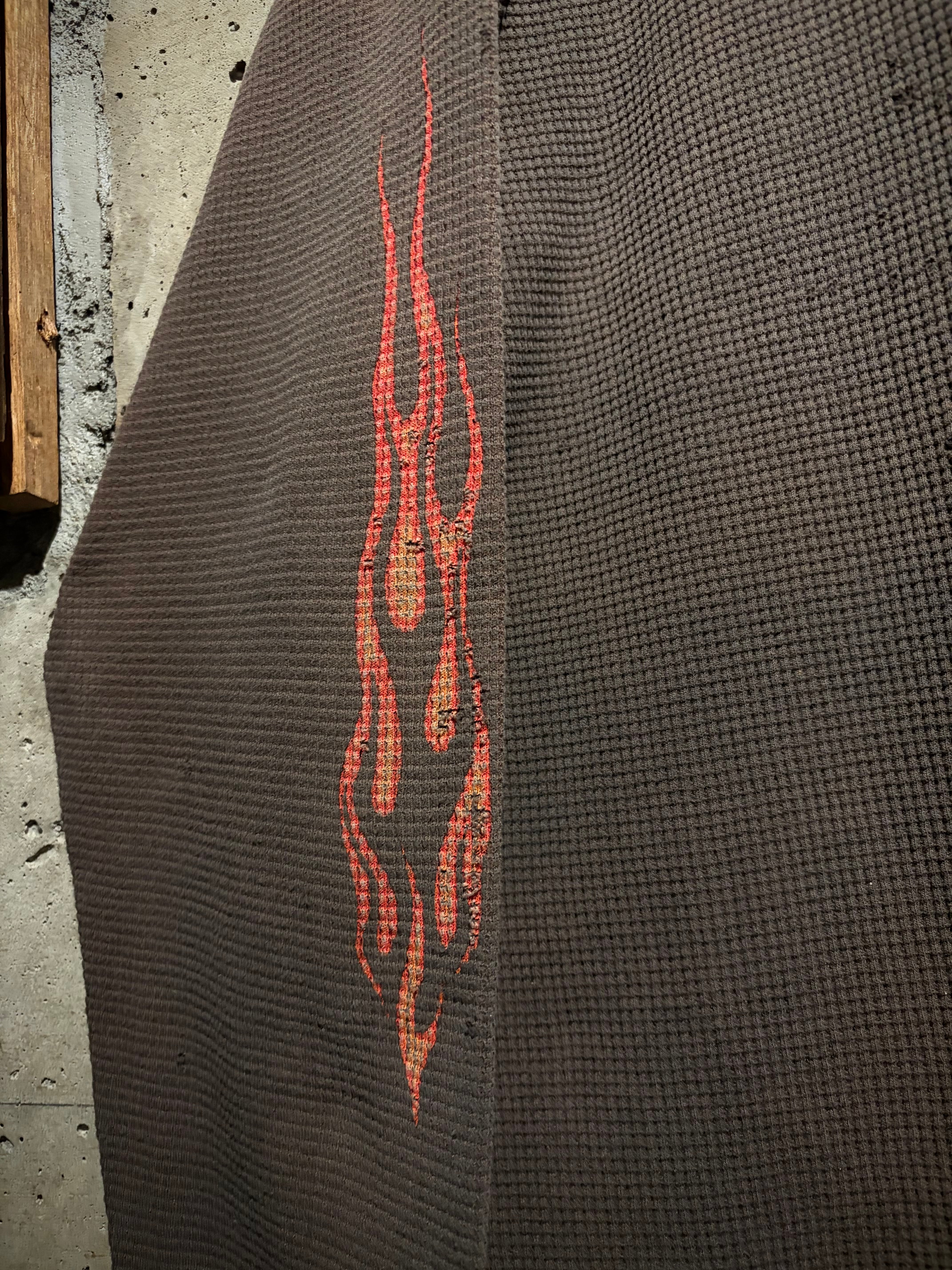ハーレーの中でも人気の高いフレイムパターンと、"ボロ"の要素が掛け合わされた、古着ならではの魅力が凝縮されたスペシャルピースとなっております。