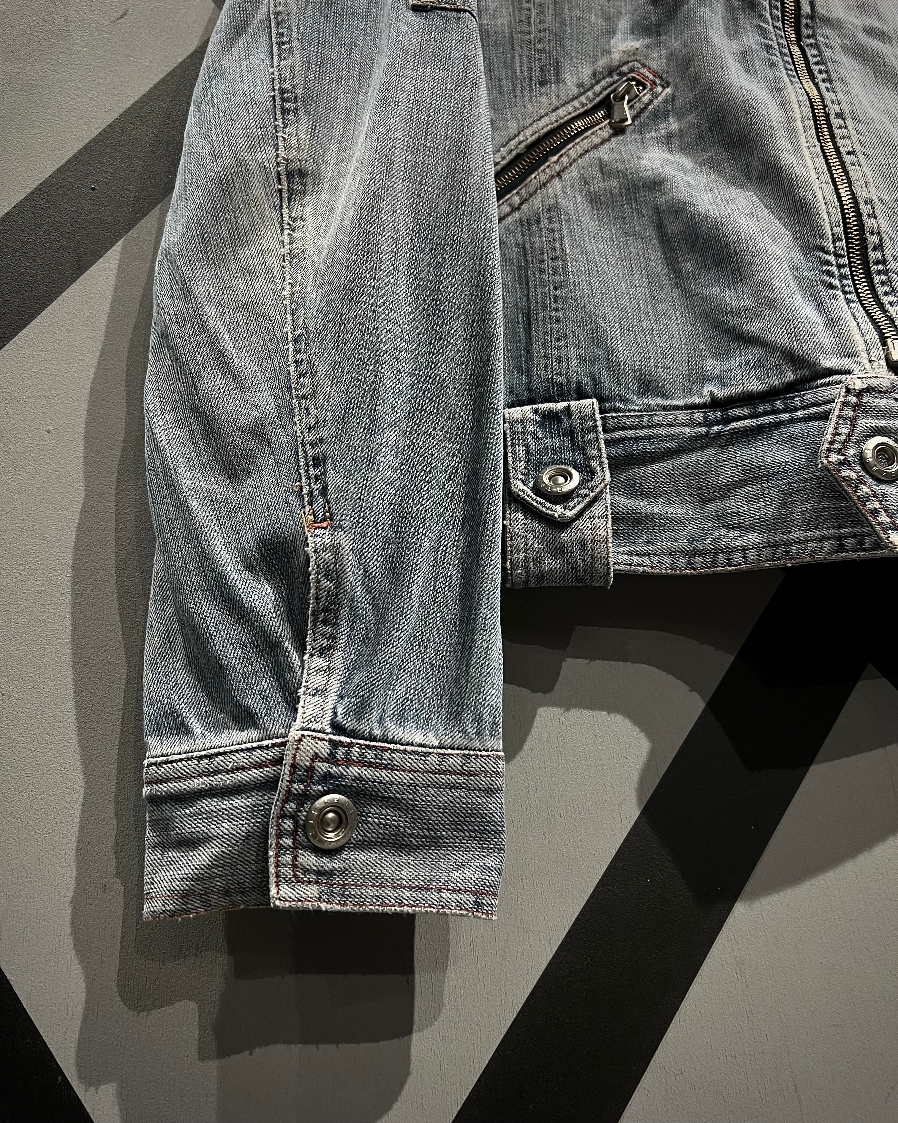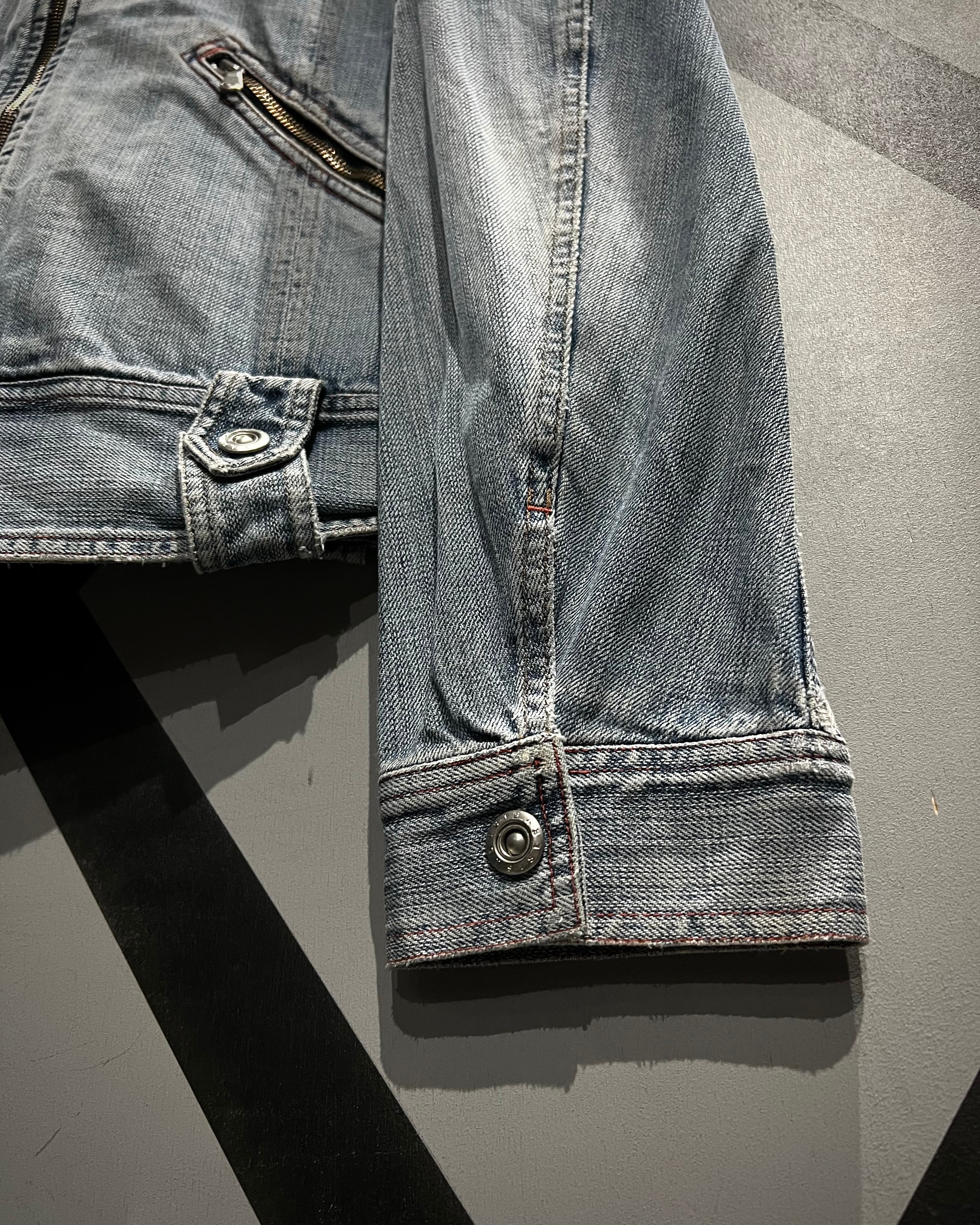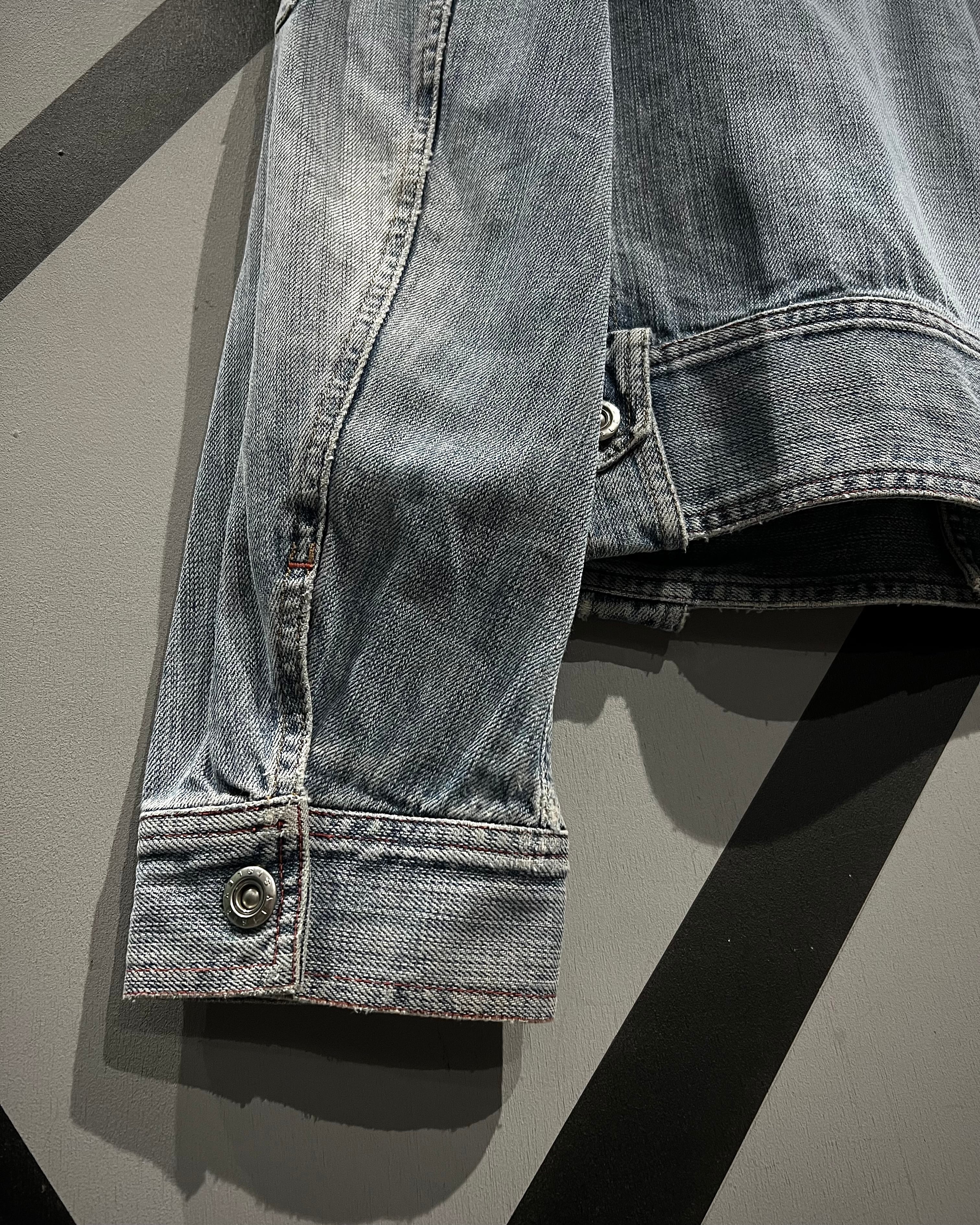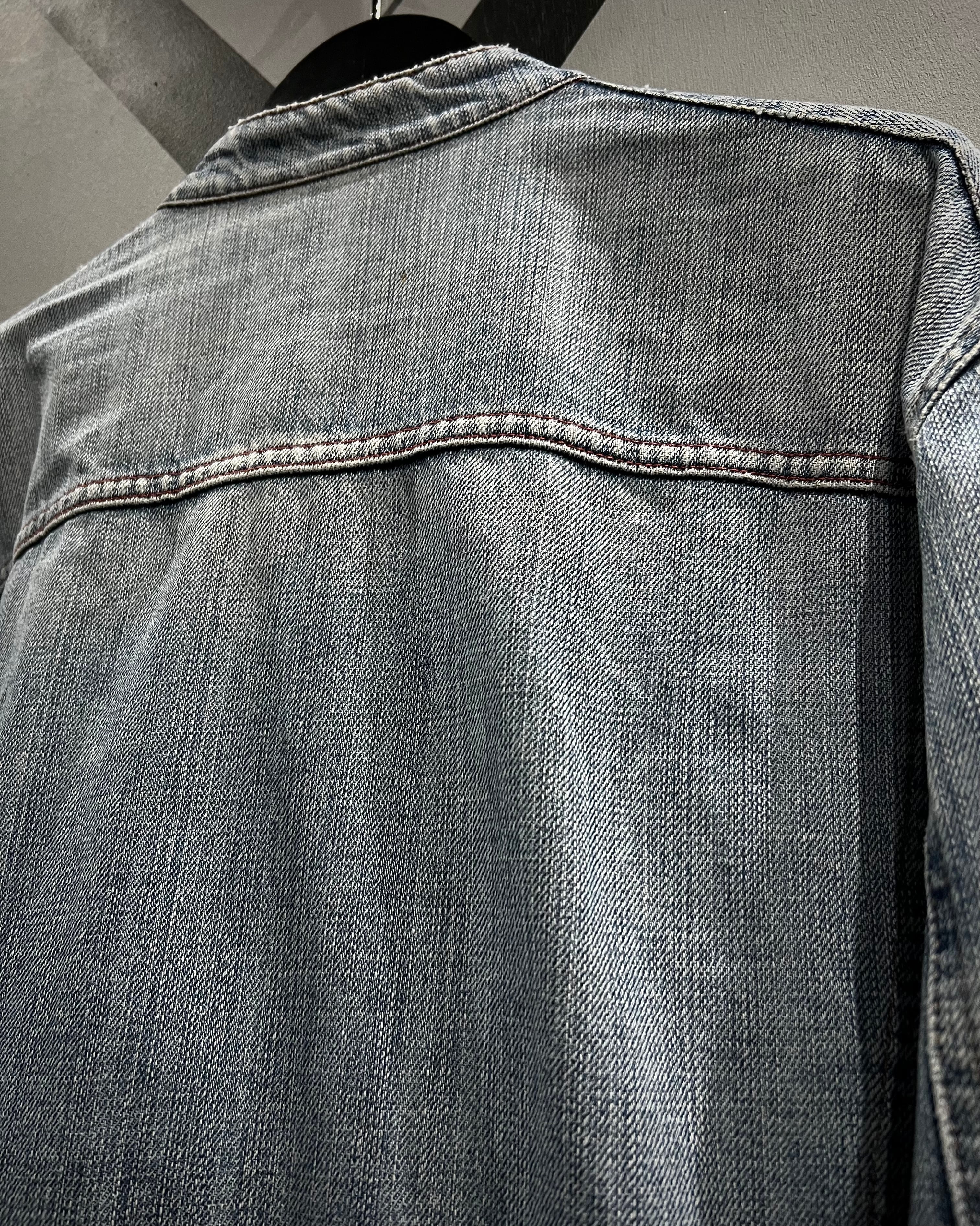 全体に施された激しいウォッシュ加工が、長年着込まれたかのようなフェード感を演出する1着。