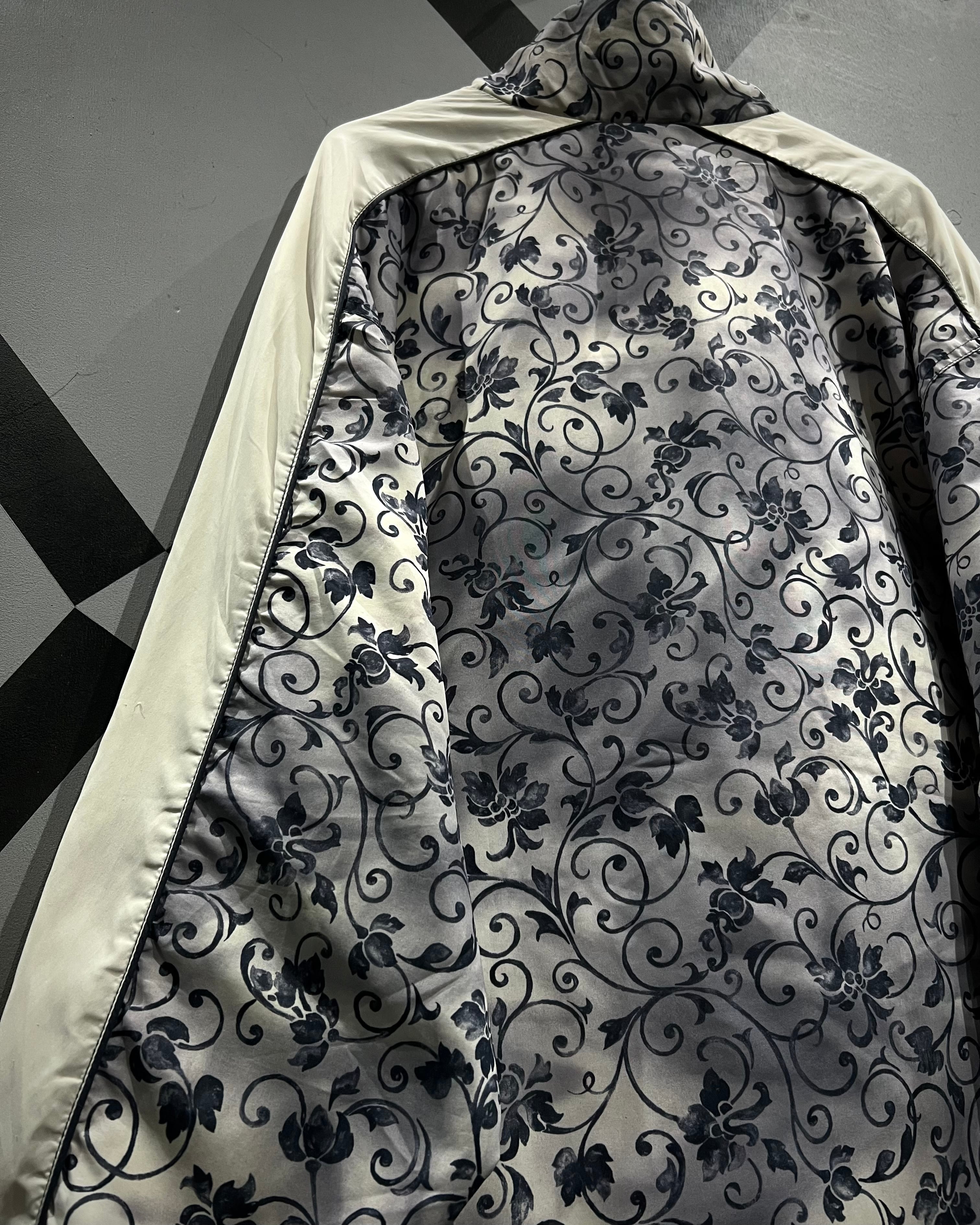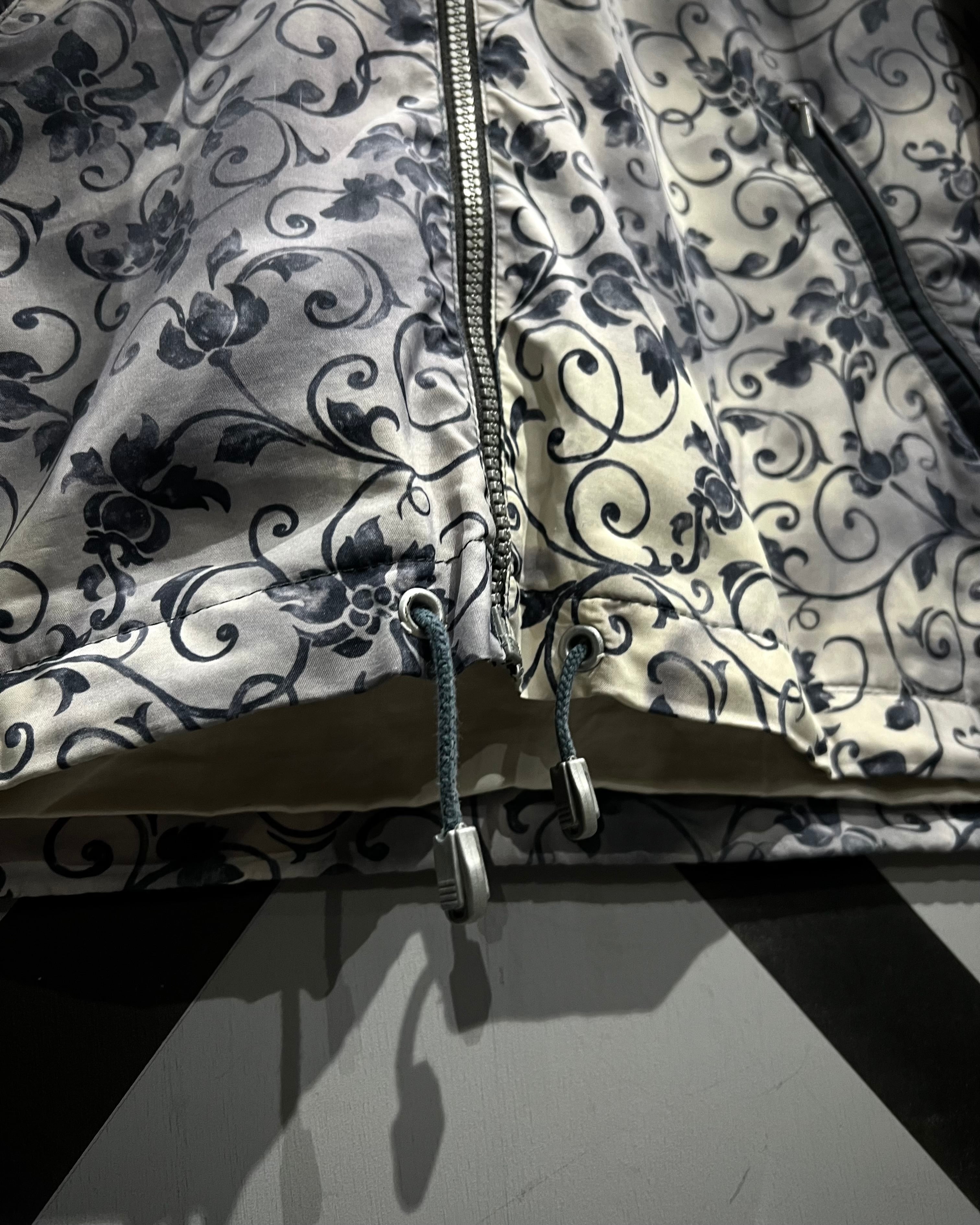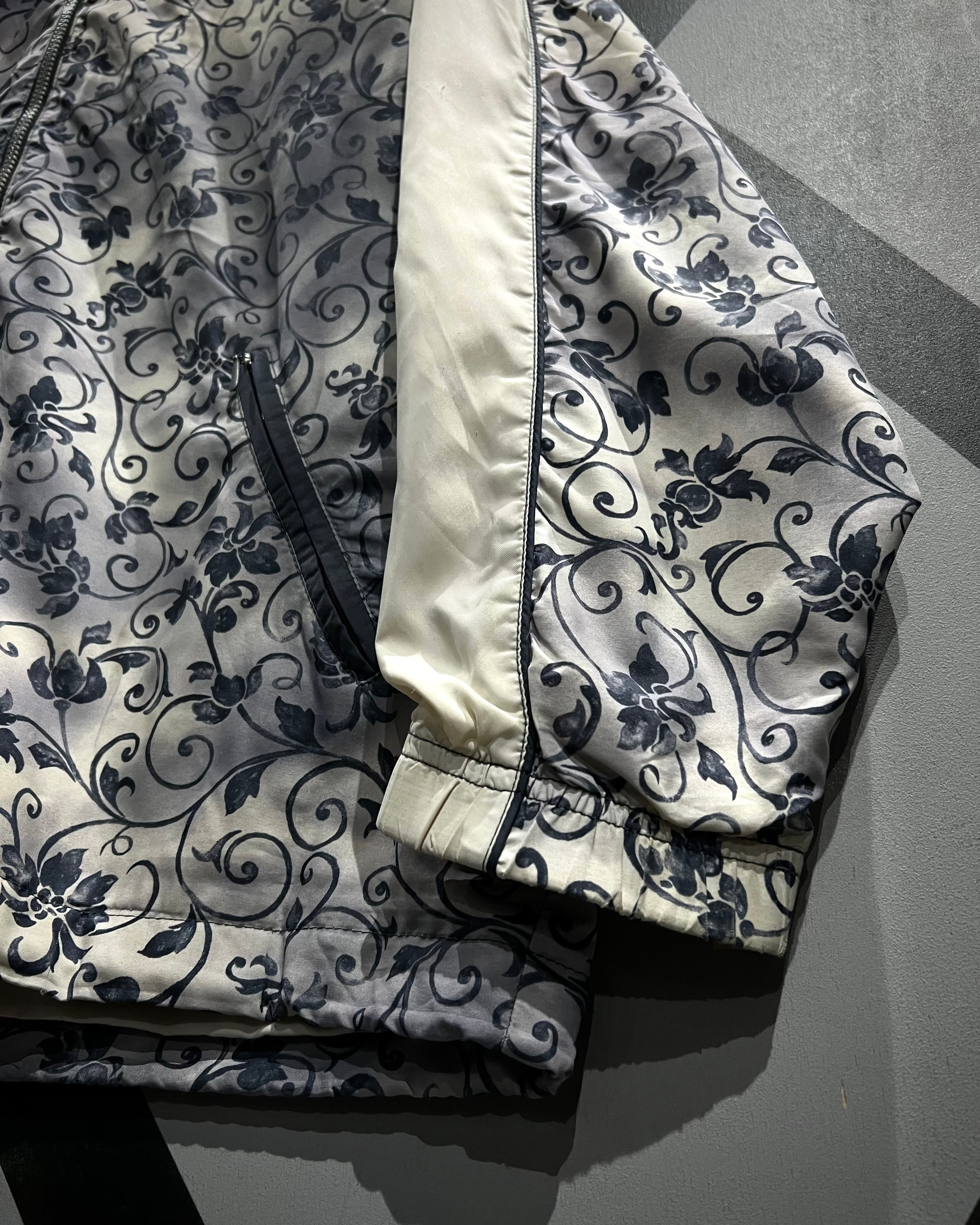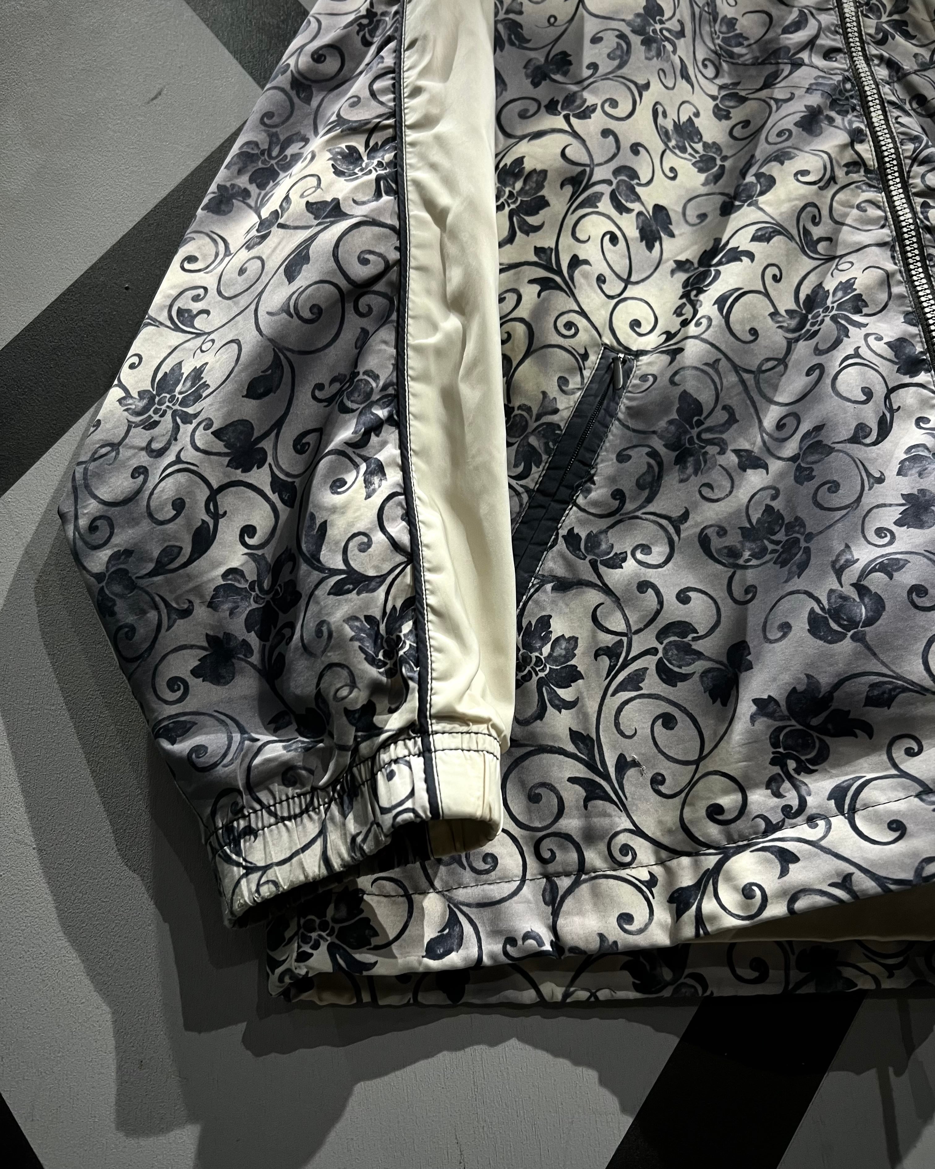 フロントにはブランドロゴの刺繍を配置し、ジップのスライダーにはロゴ刻印を施すなど、細部にまで抜かりのないディテールワークが光ります。肩から袖にかけて走るクリーンなホワイトラインが、総柄の中に絶妙な抜け感を生み出し、スポーティーな印象と気品を両立。