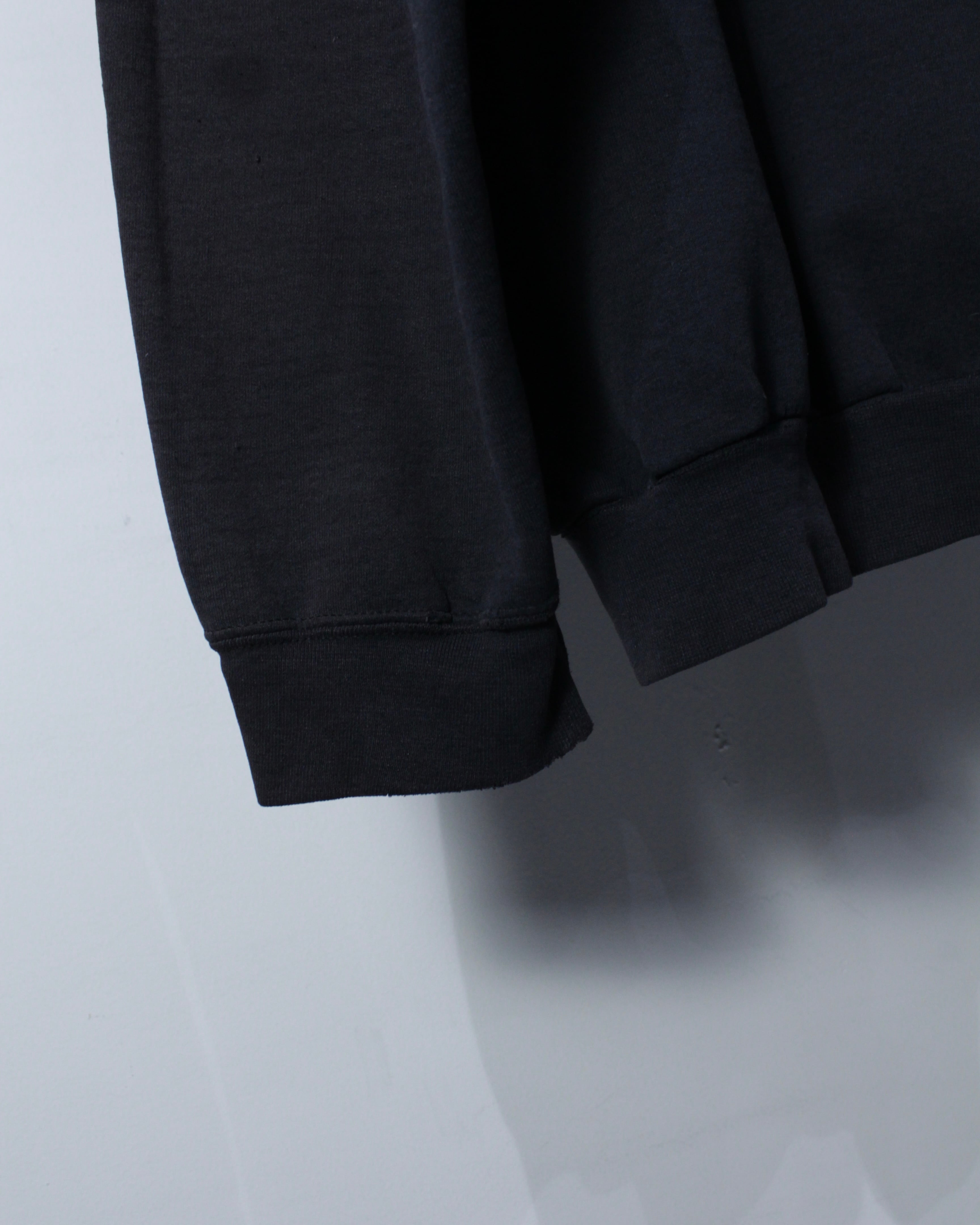 程よい厚みのコットンボディで保温性と着心地を兼ね備え、デイリーユースに最適。ルーズなシルエットで一枚着としてはもちろん、アウターのインナーとしても扱いやすく、幅広いスタイリングに対応可能です。