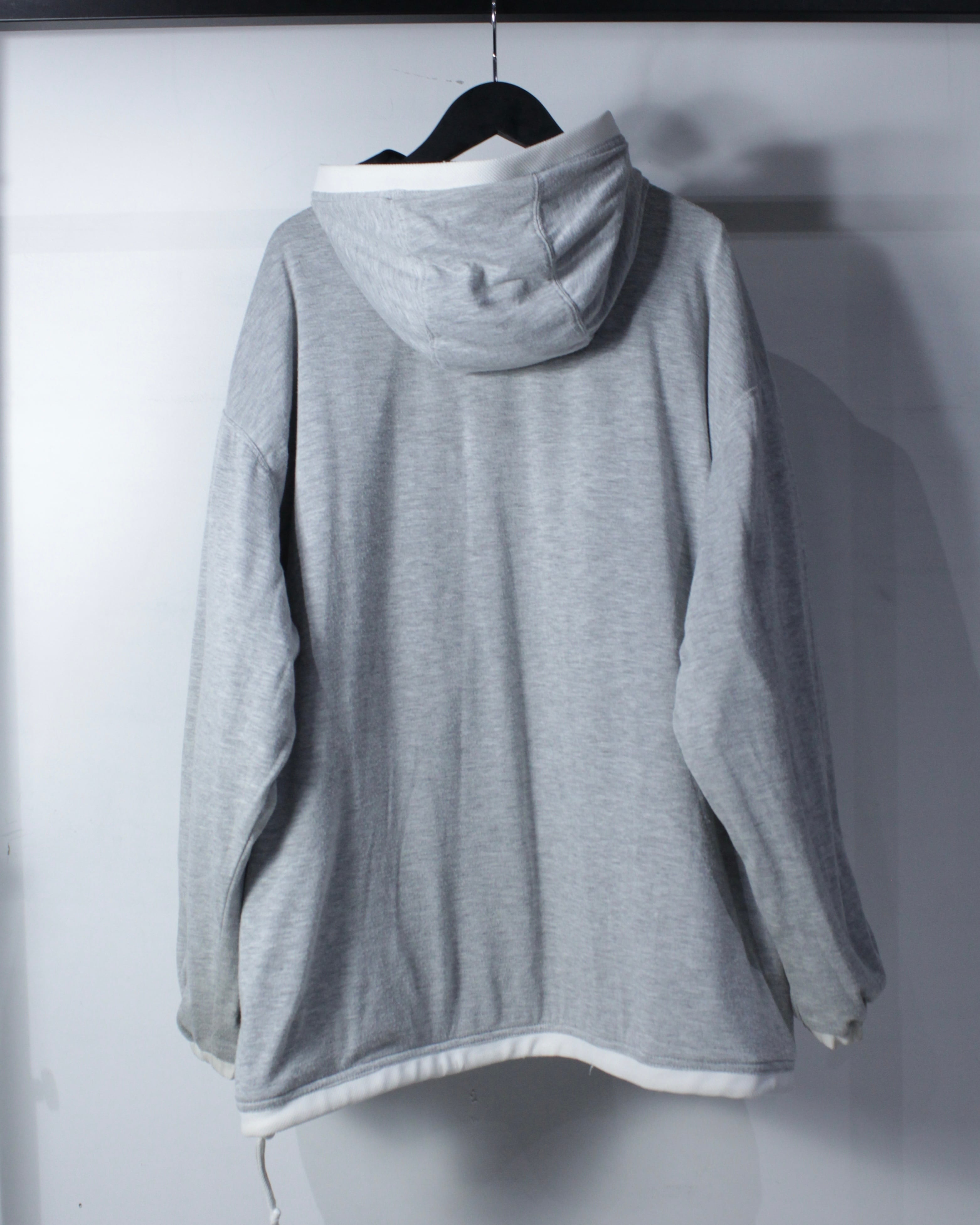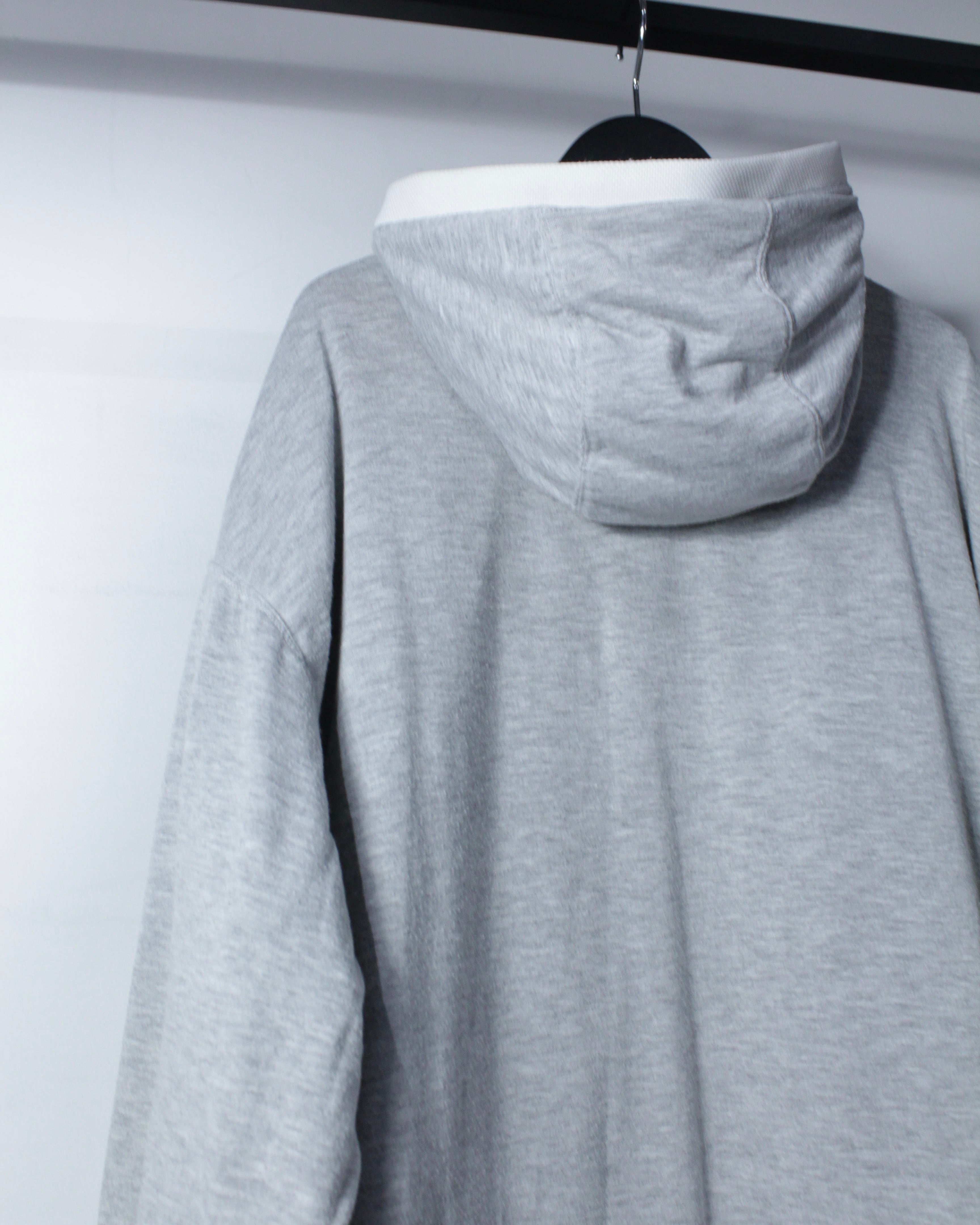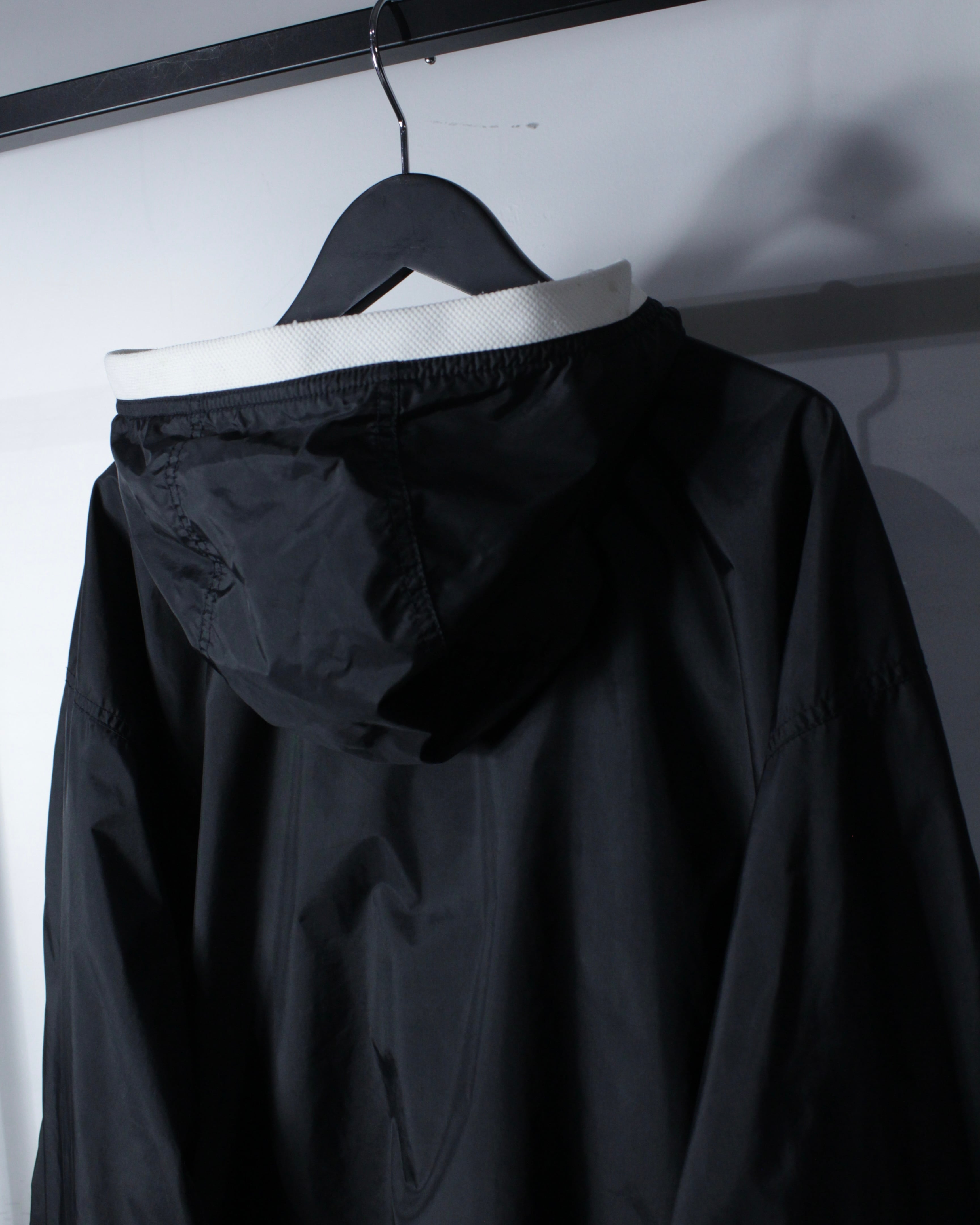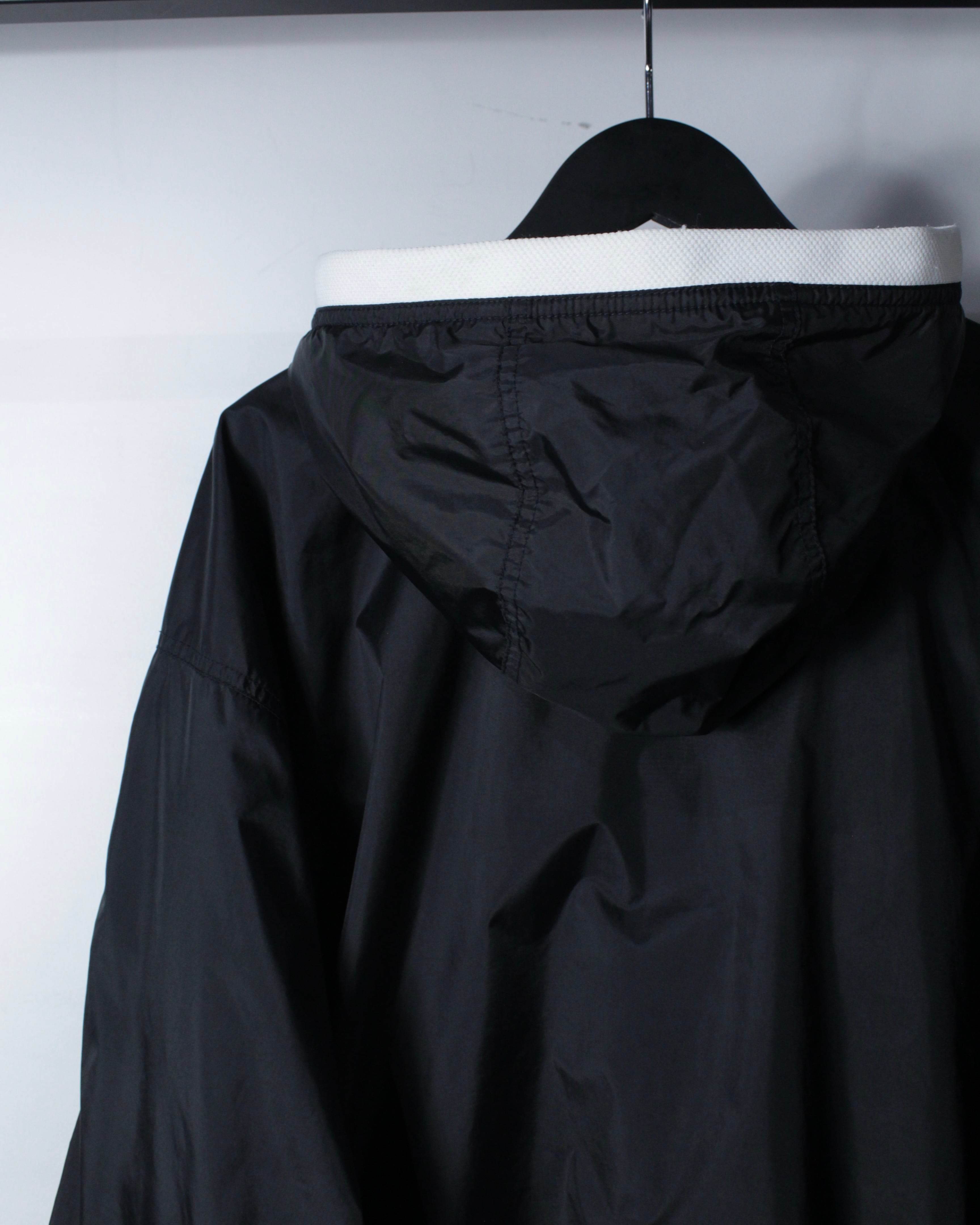 フロントのハーフジップ仕様に加え、ジップ付きポケットやフード、裾のドローコードなど実用性の高いディテールを完備。軽量なナイロンと肌馴染みの良いスウェットの切り替えにより、防風性と快適性を両立し、シーズン問わず着用可能な汎用性の高さも魅力です。