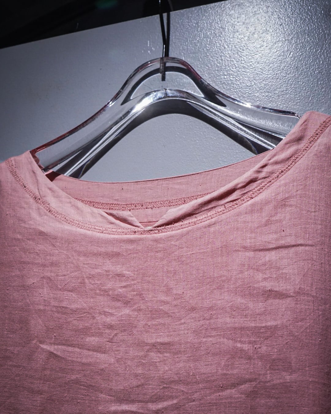 淡いピンクの抜け感、リネンのナチュラルな雰囲気、ファッション性を併せ持ったプルオーバーリネンシャツの逸品です。