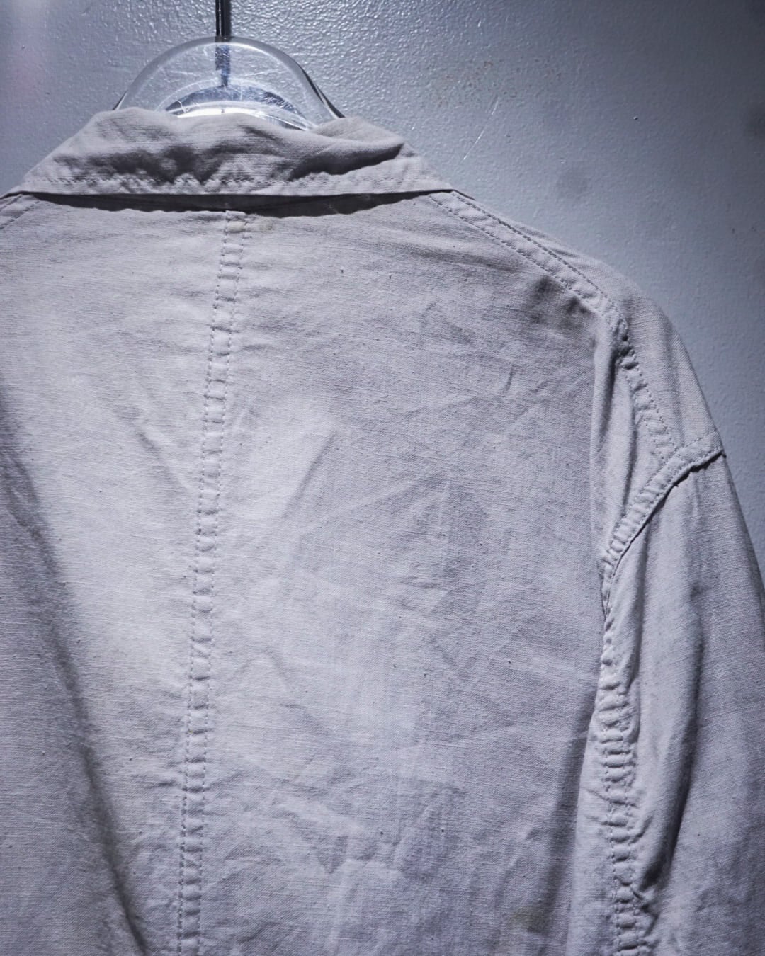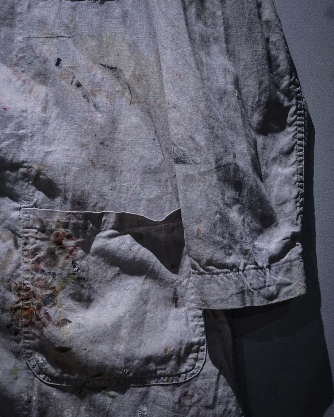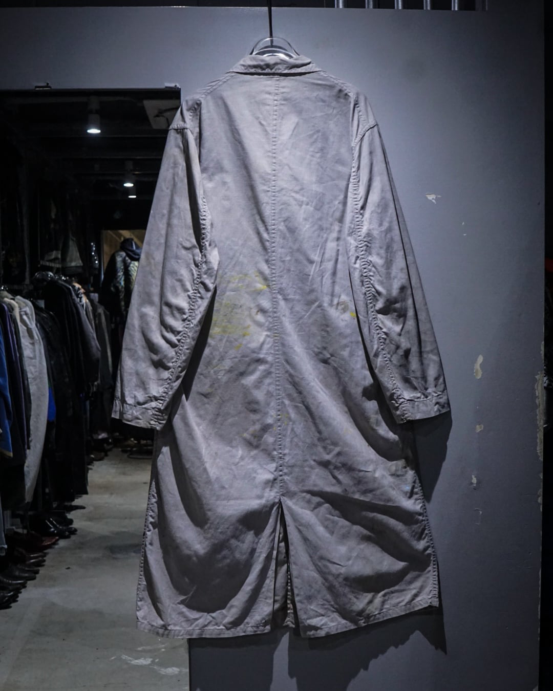絵の具汚れや経年の表情がリアルに刻まれた、アトリエコートタイプの1着をご紹介いたします。