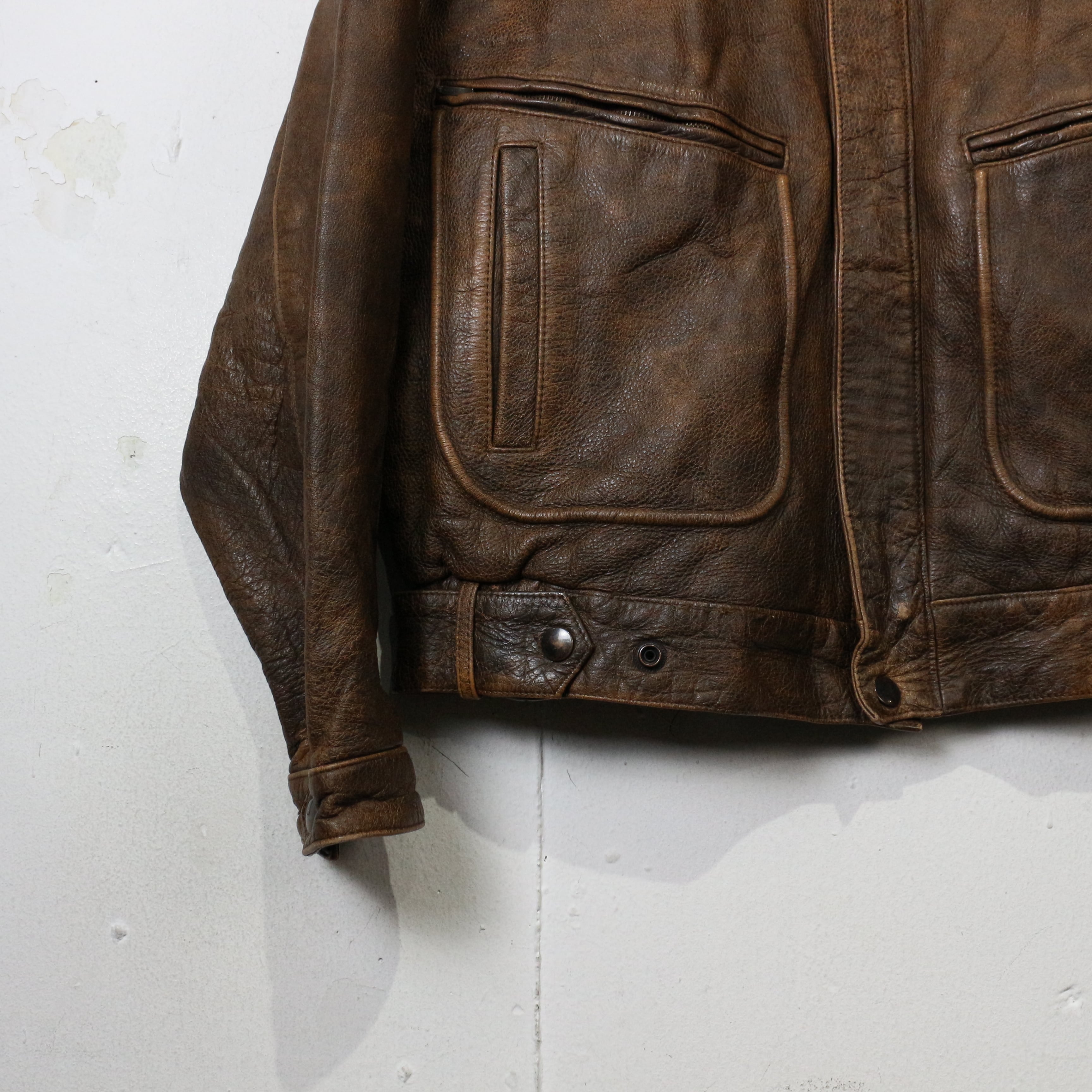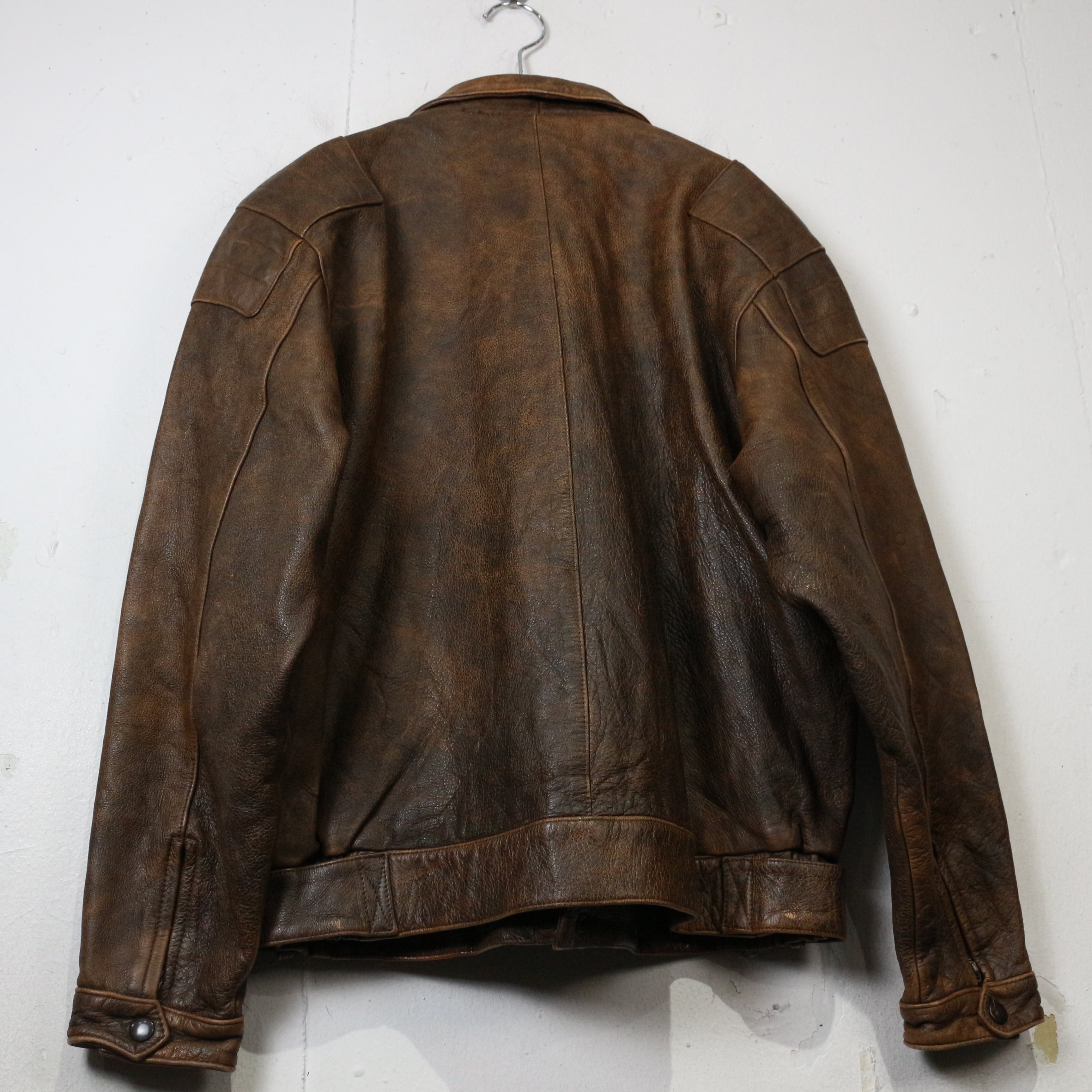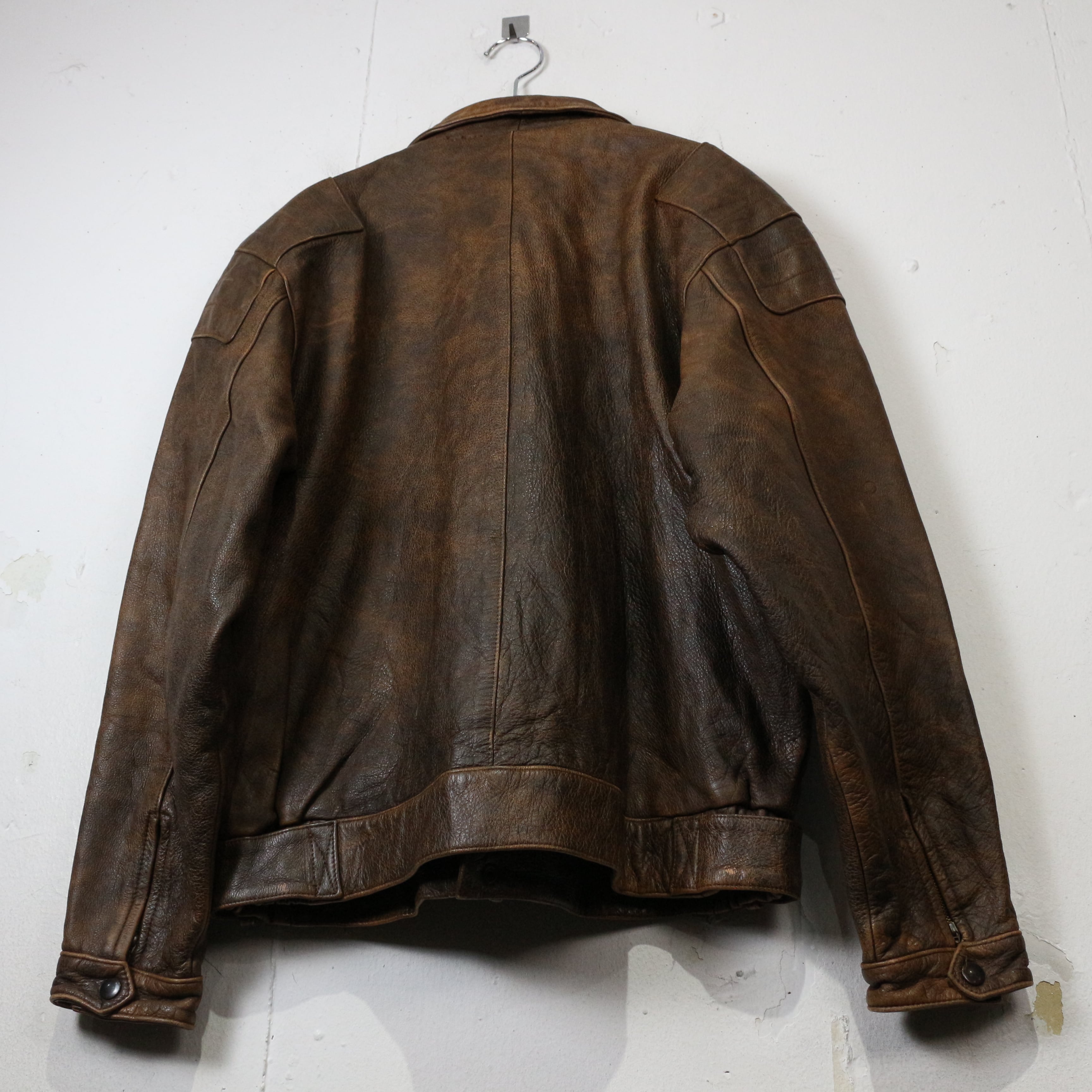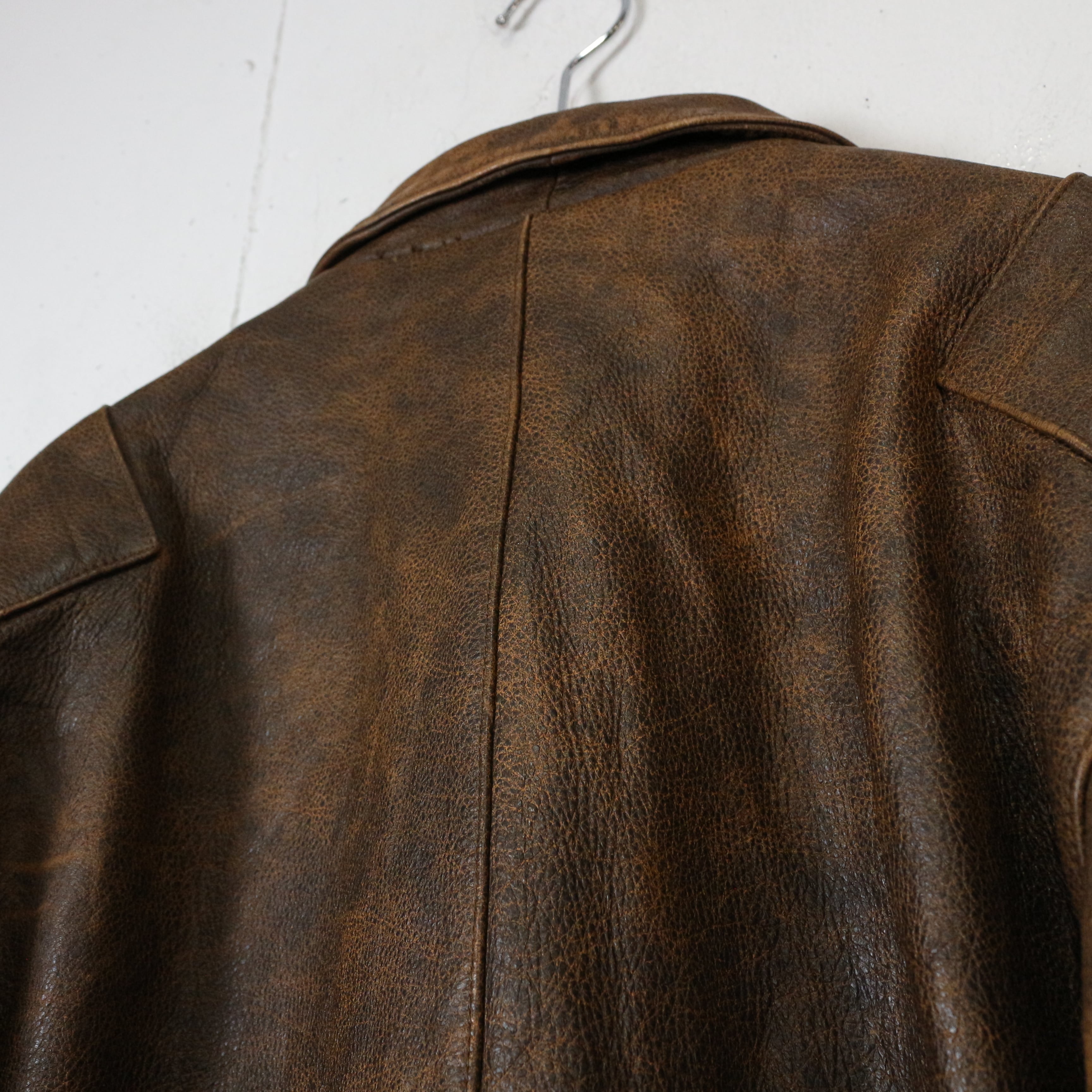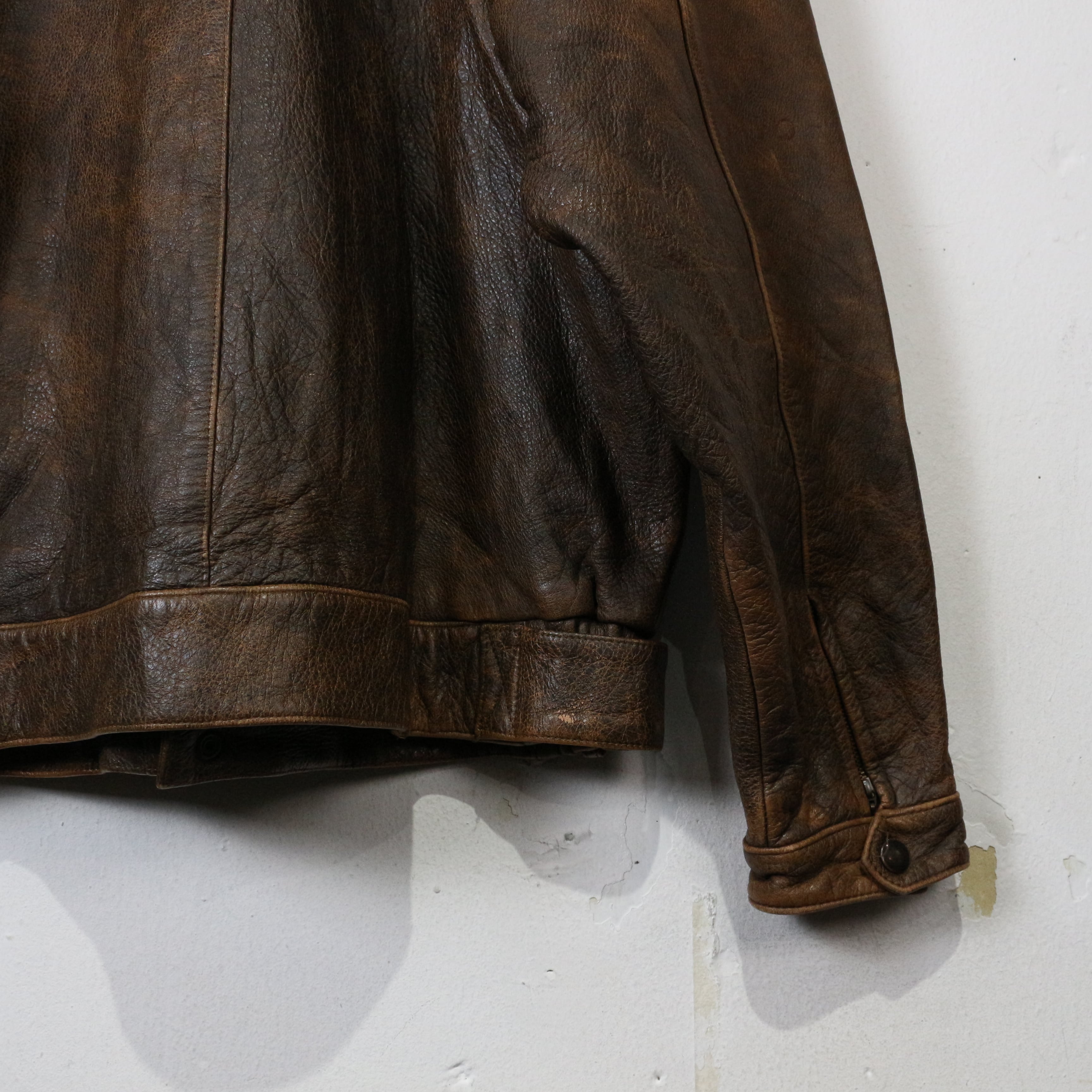 肉厚でしっかりとしたレザーを採用し、長年の着用によって生まれた深みのある色ムラやシワ感が全体に広がる、エイジングが抜群の1着。