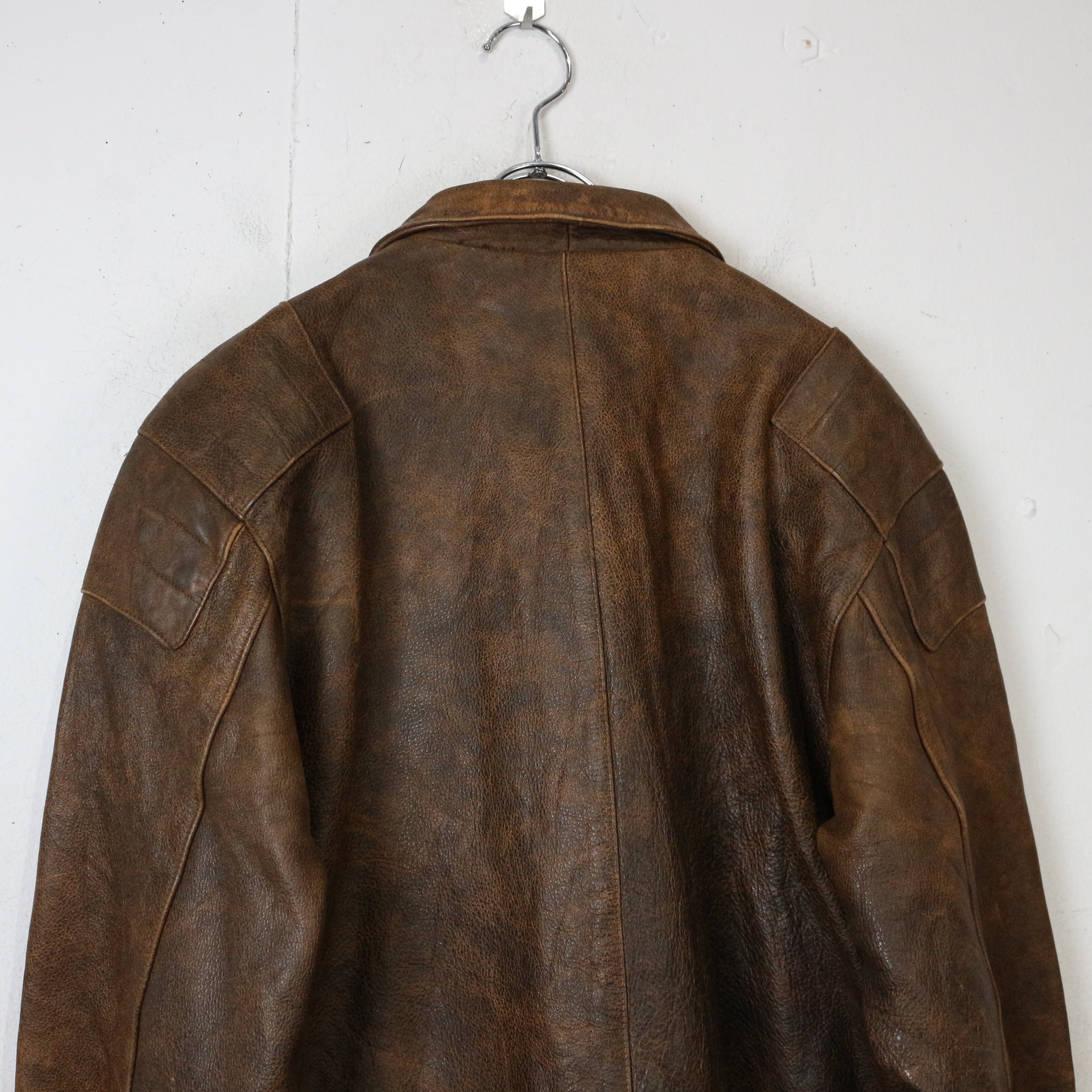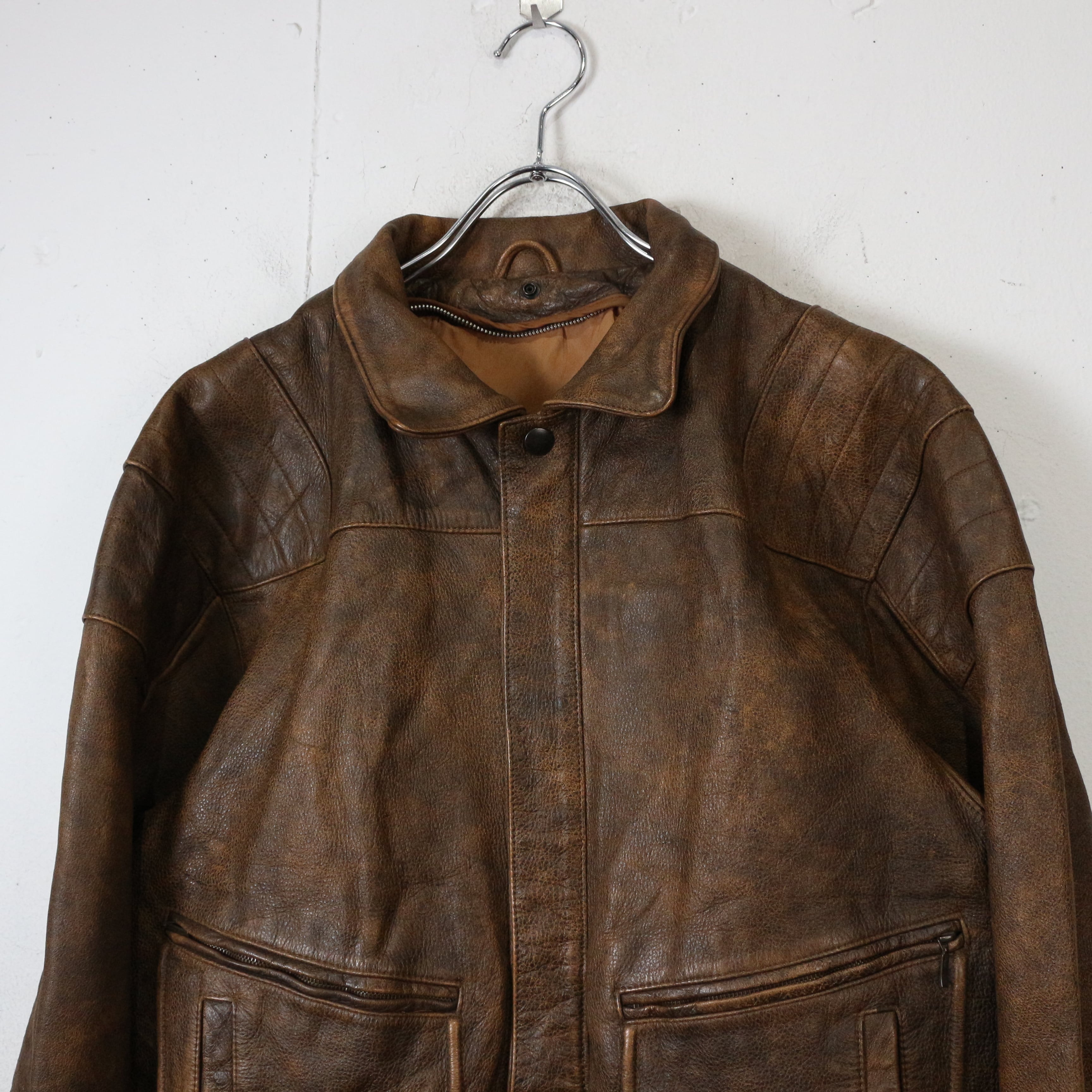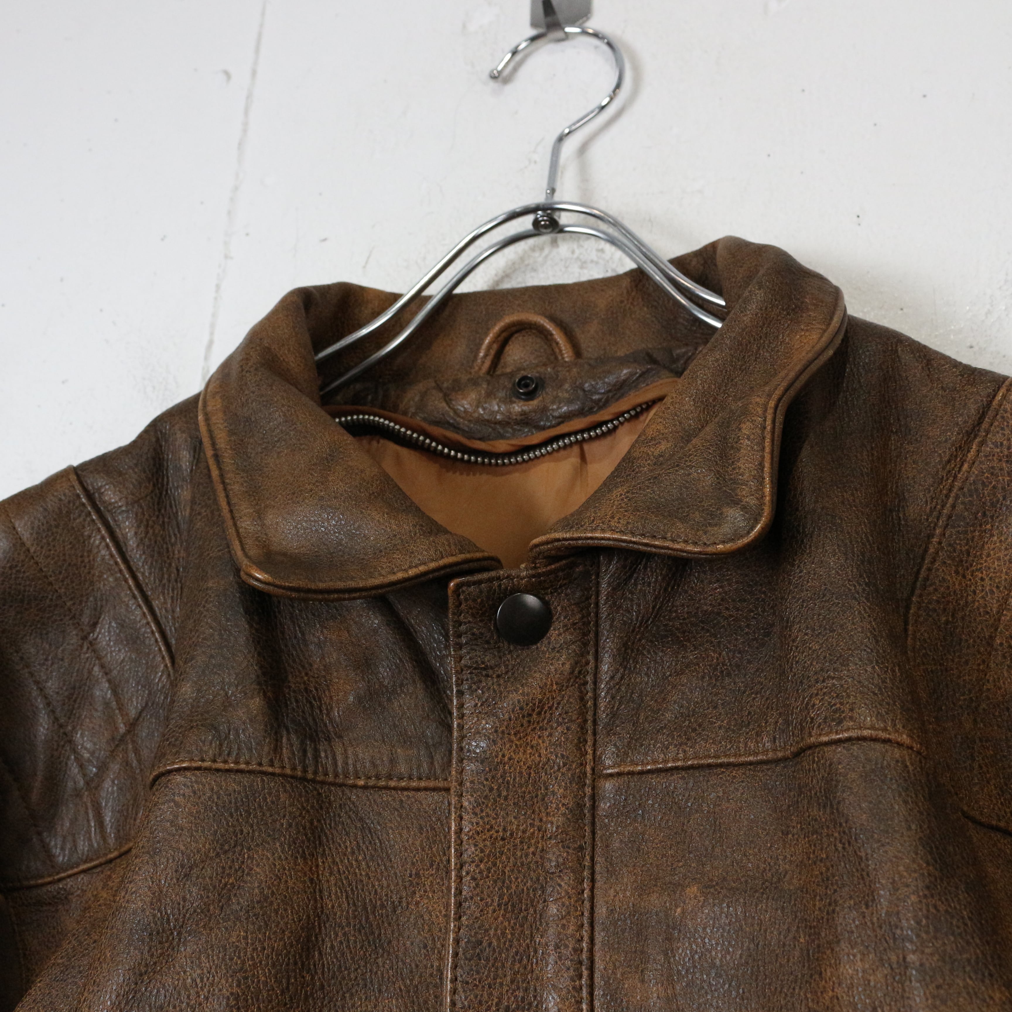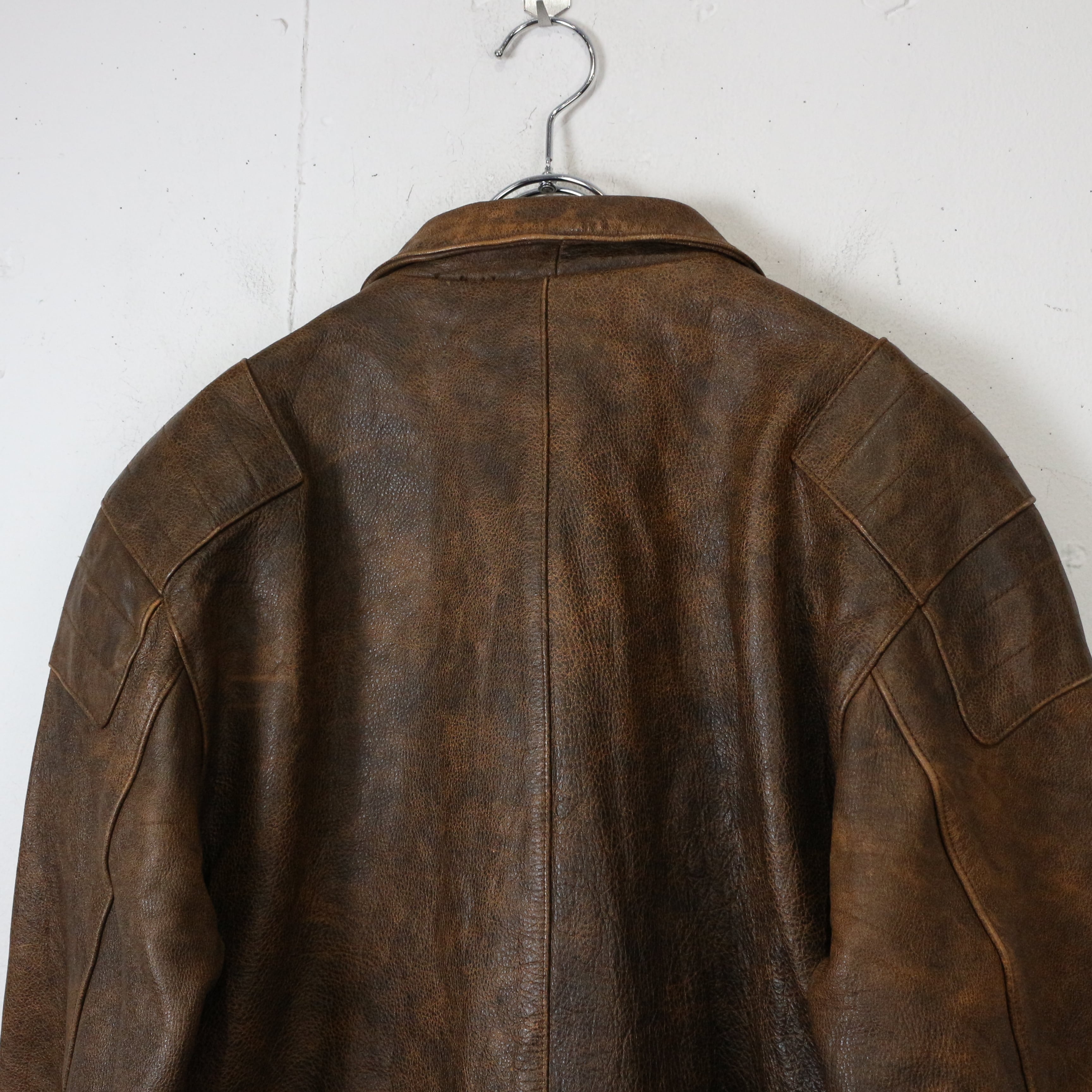 肉厚でしっかりとしたレザーを採用し、長年の着用によって生まれた深みのある色ムラやシワ感が全体に広がる、エイジングが抜群の1着。