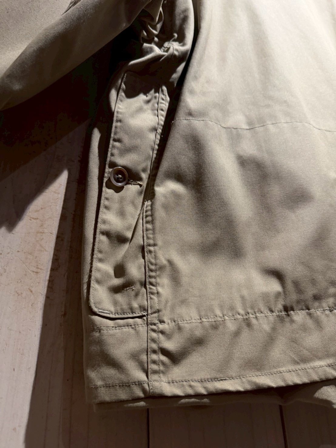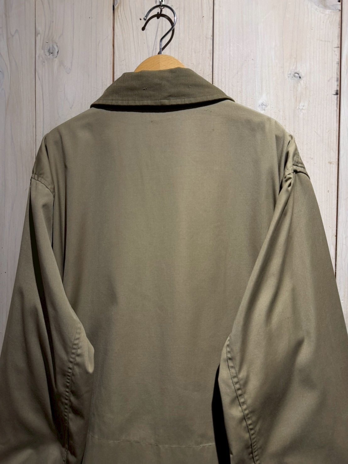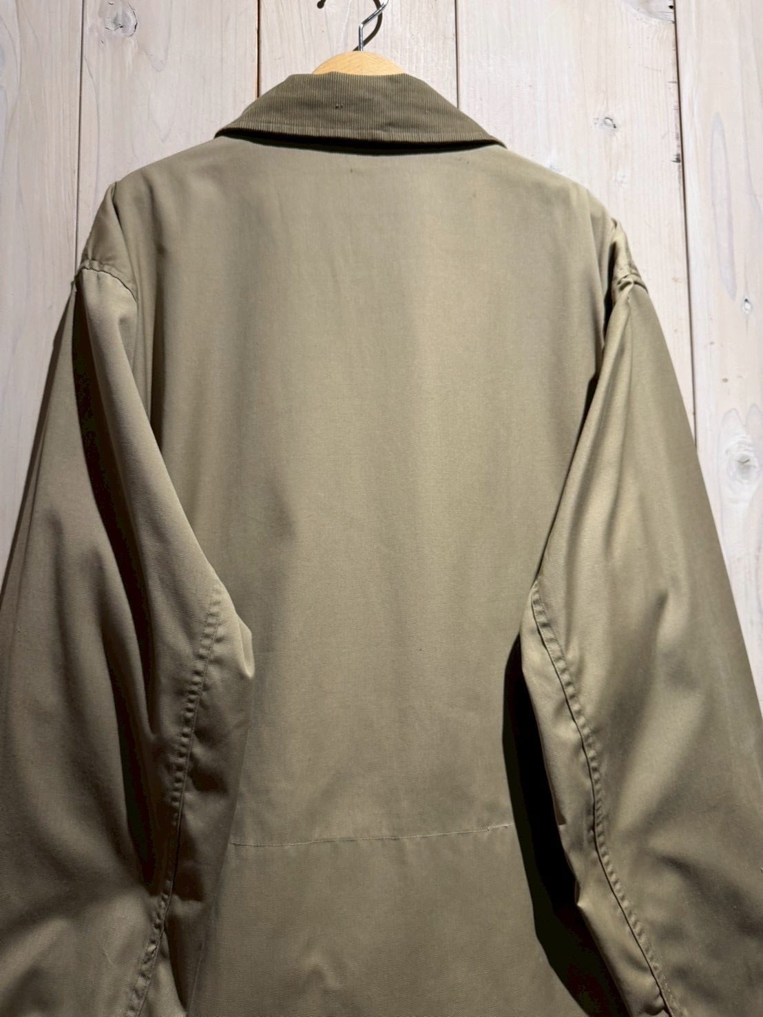 オリーブがかった落ち着いた色味のボディに、タフさと上品さを兼ね備えたポプリン生地を採用した1着。