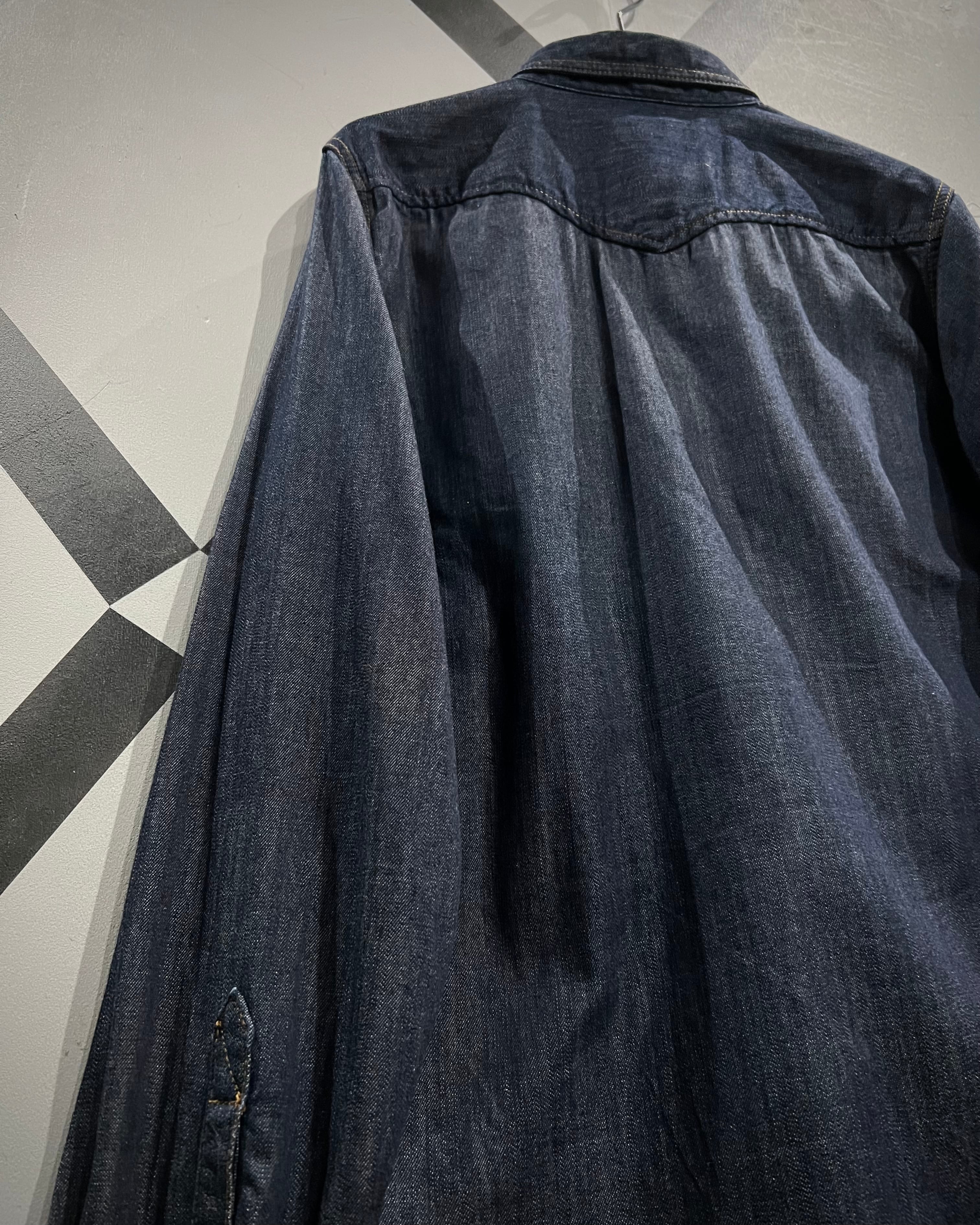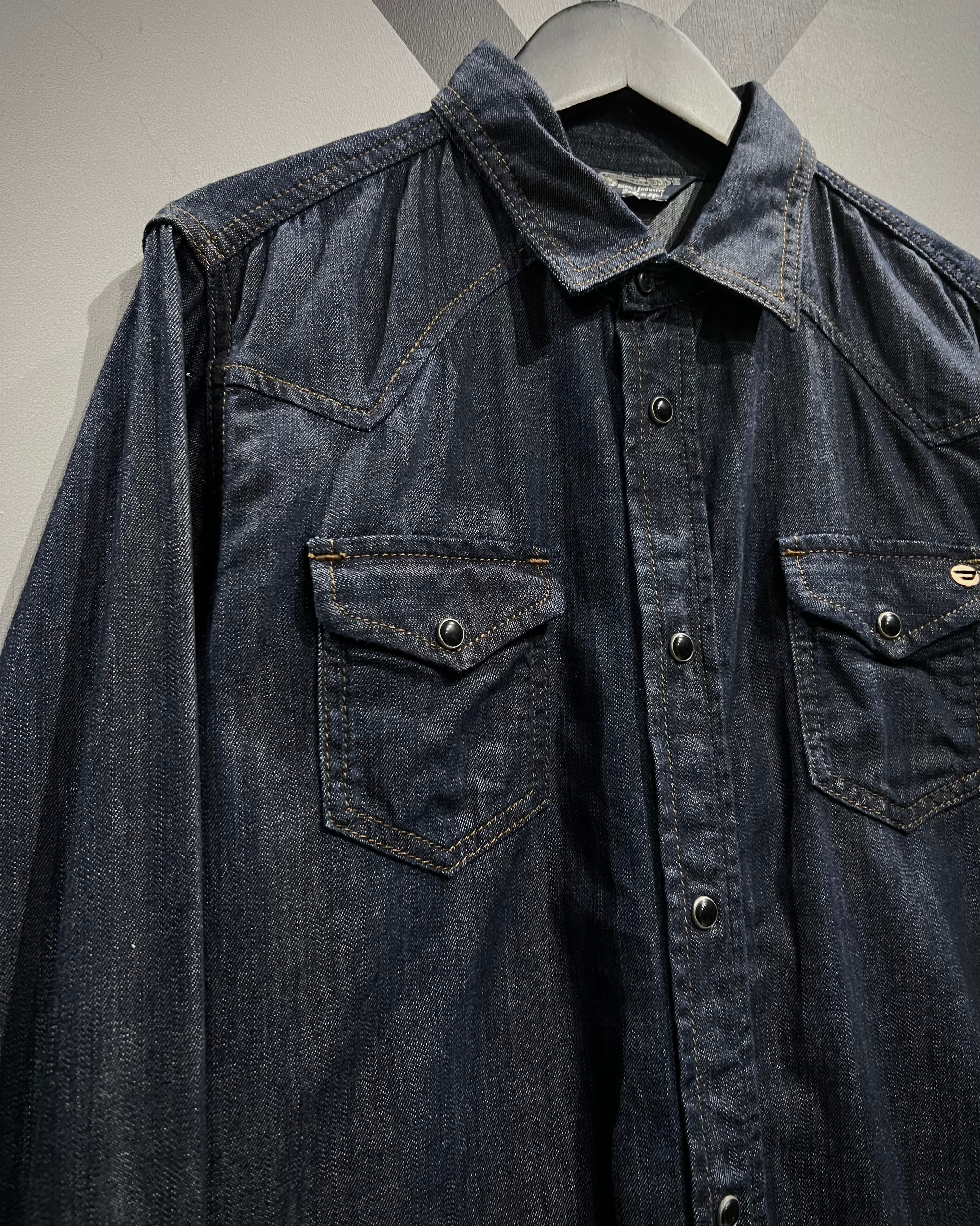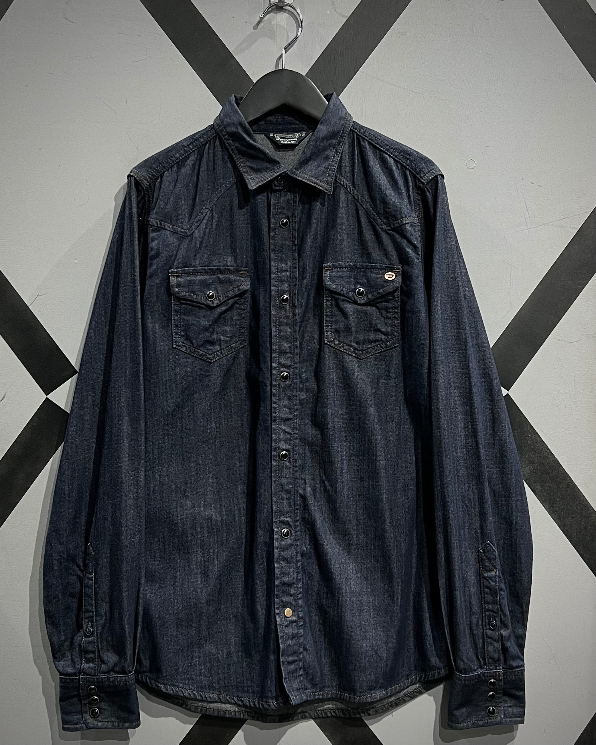 DIESELの代名詞とも言える、ハリ、コシのある上質なデニムを使用した長袖デニムウエスタンシャツ。