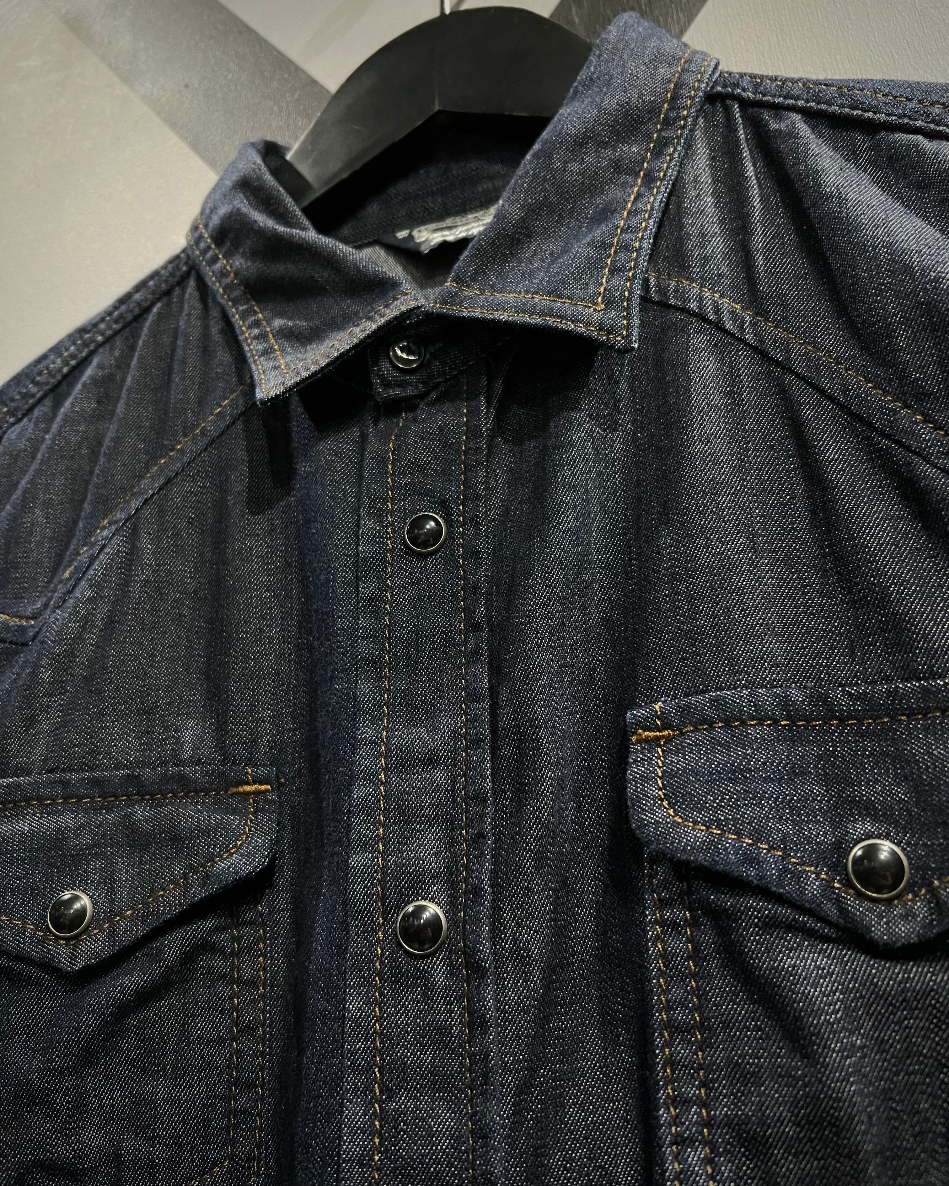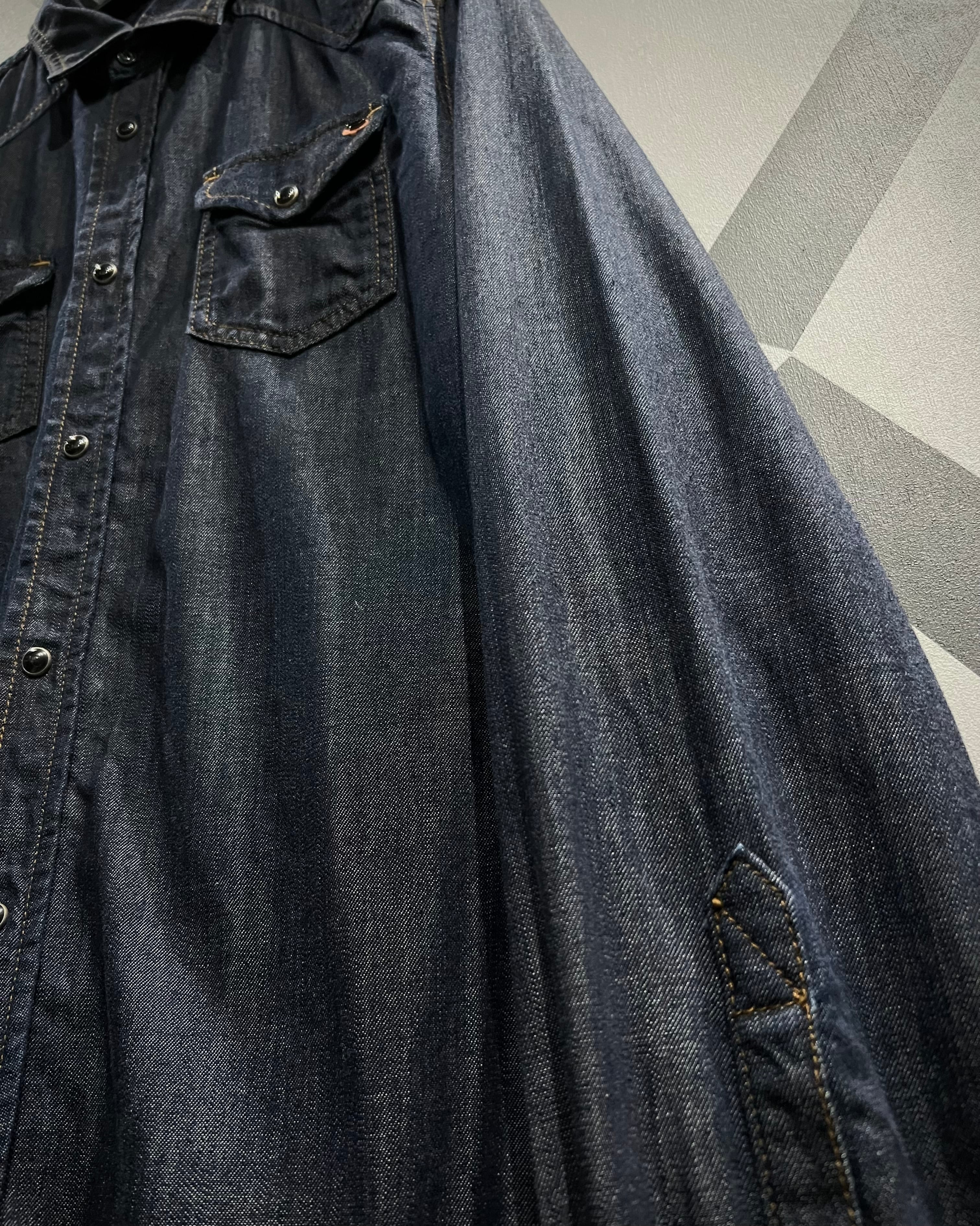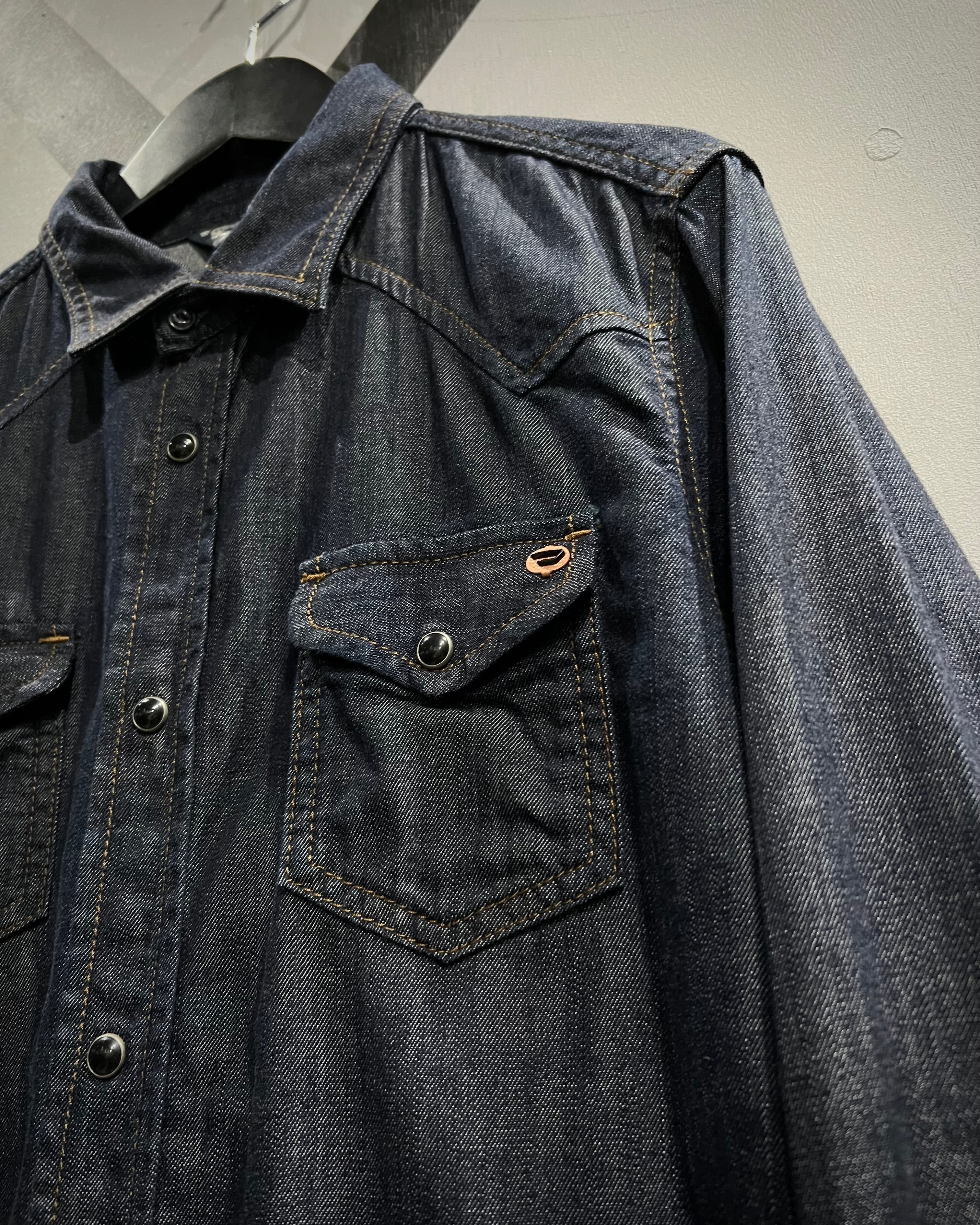 DIESELの代名詞とも言える、ハリ、コシのある上質なデニムを使用した長袖デニムウエスタンシャツ。