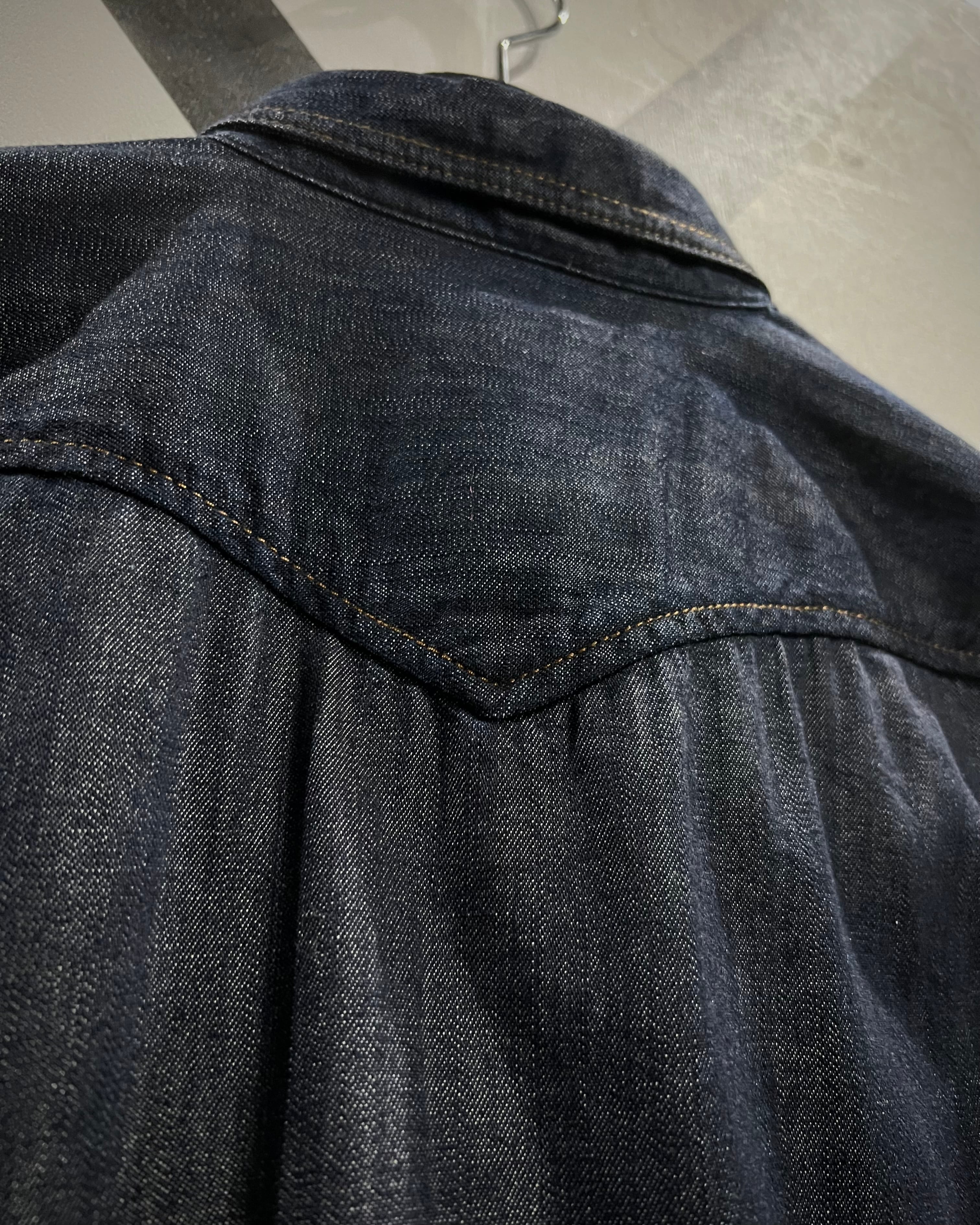 プレーンなボティにウエスタンヨーク、スナップボタン、アーチ型のフラップポケットなどウエスタンならではのディテールをON。左胸にはブランドロゴのプレートを載せさりげないアクセントに。
