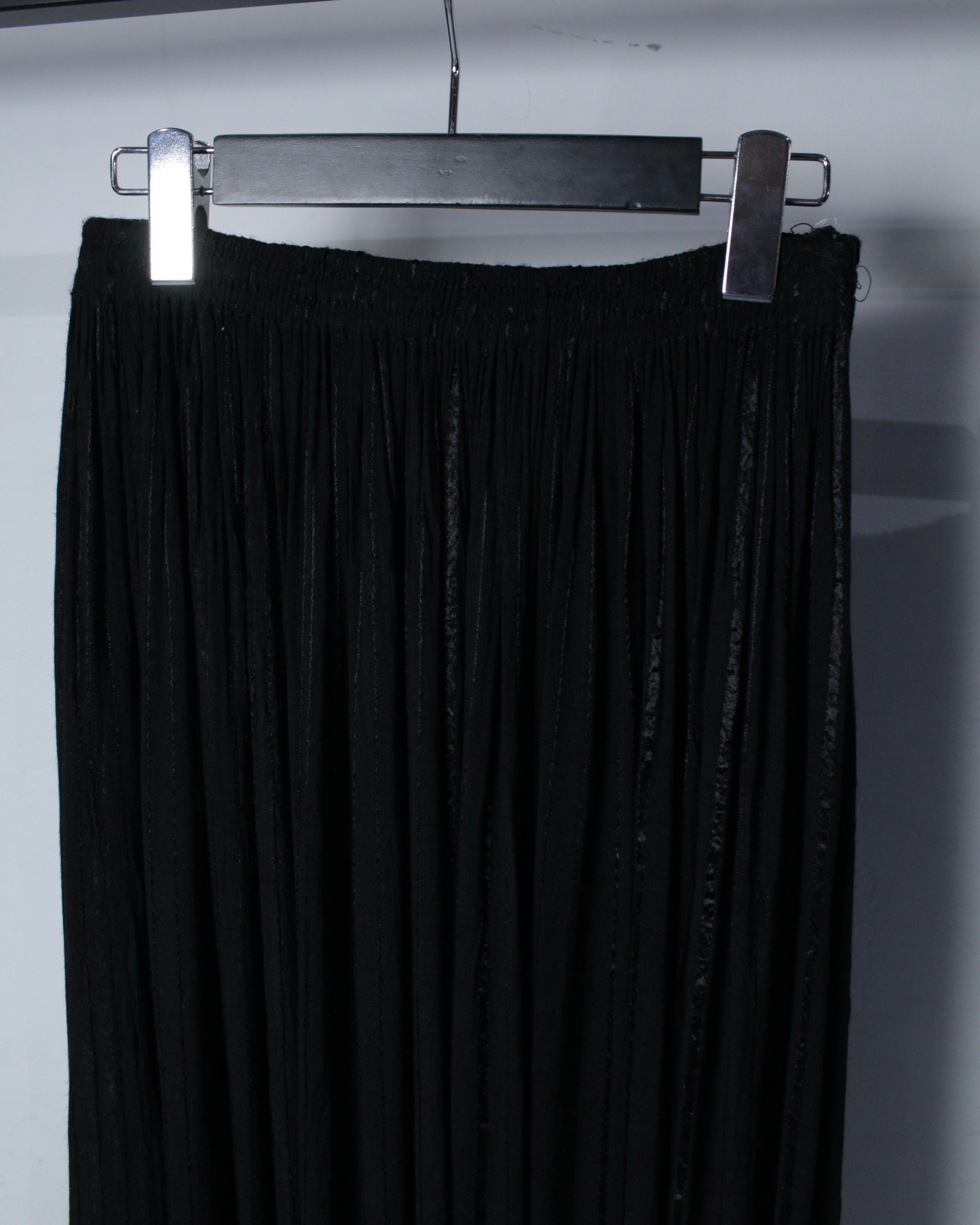 ミニマルなブラックをベースに、圧倒的なシルエットで存在感を放つ、プリーツワイドパンツをご紹介いたします。