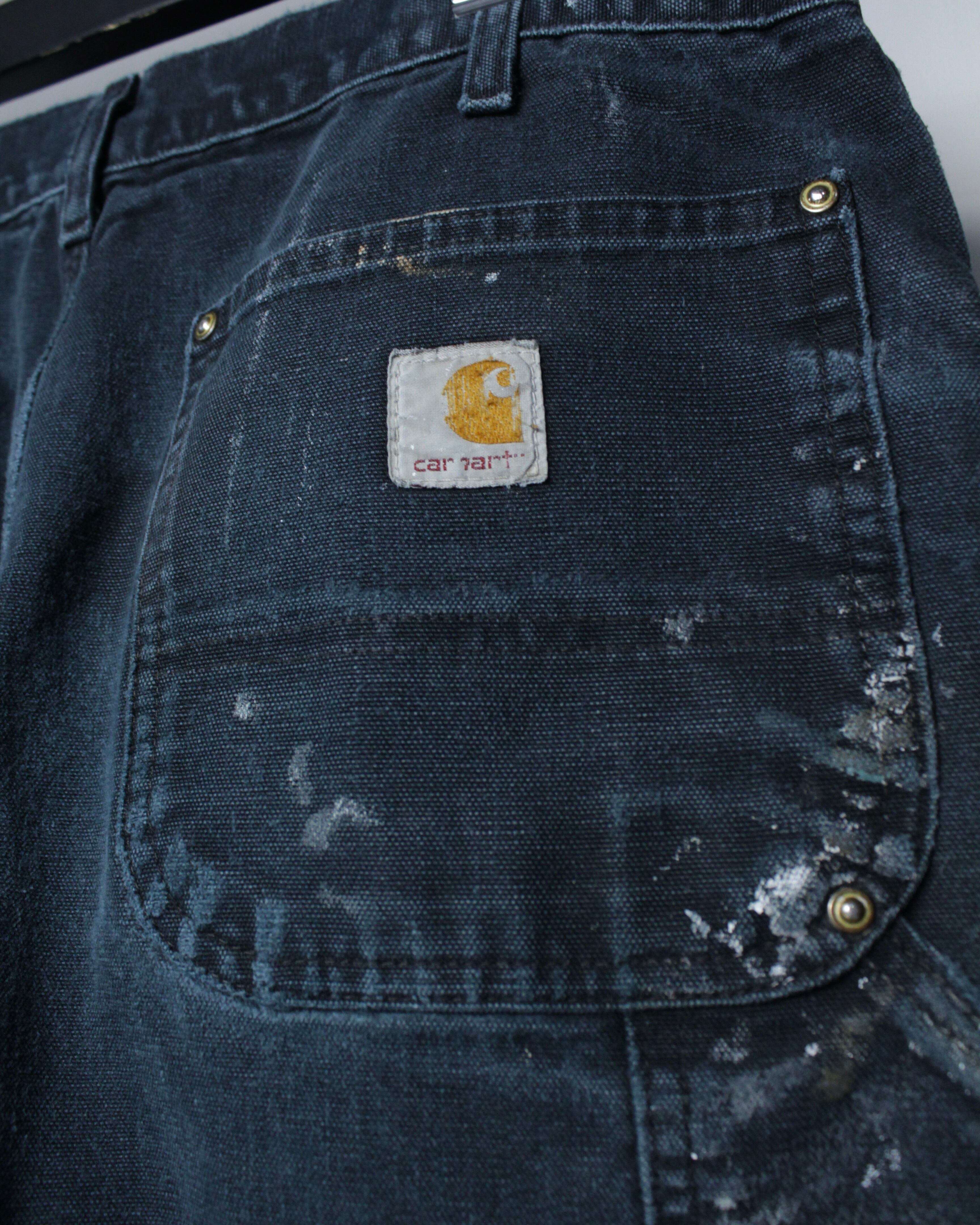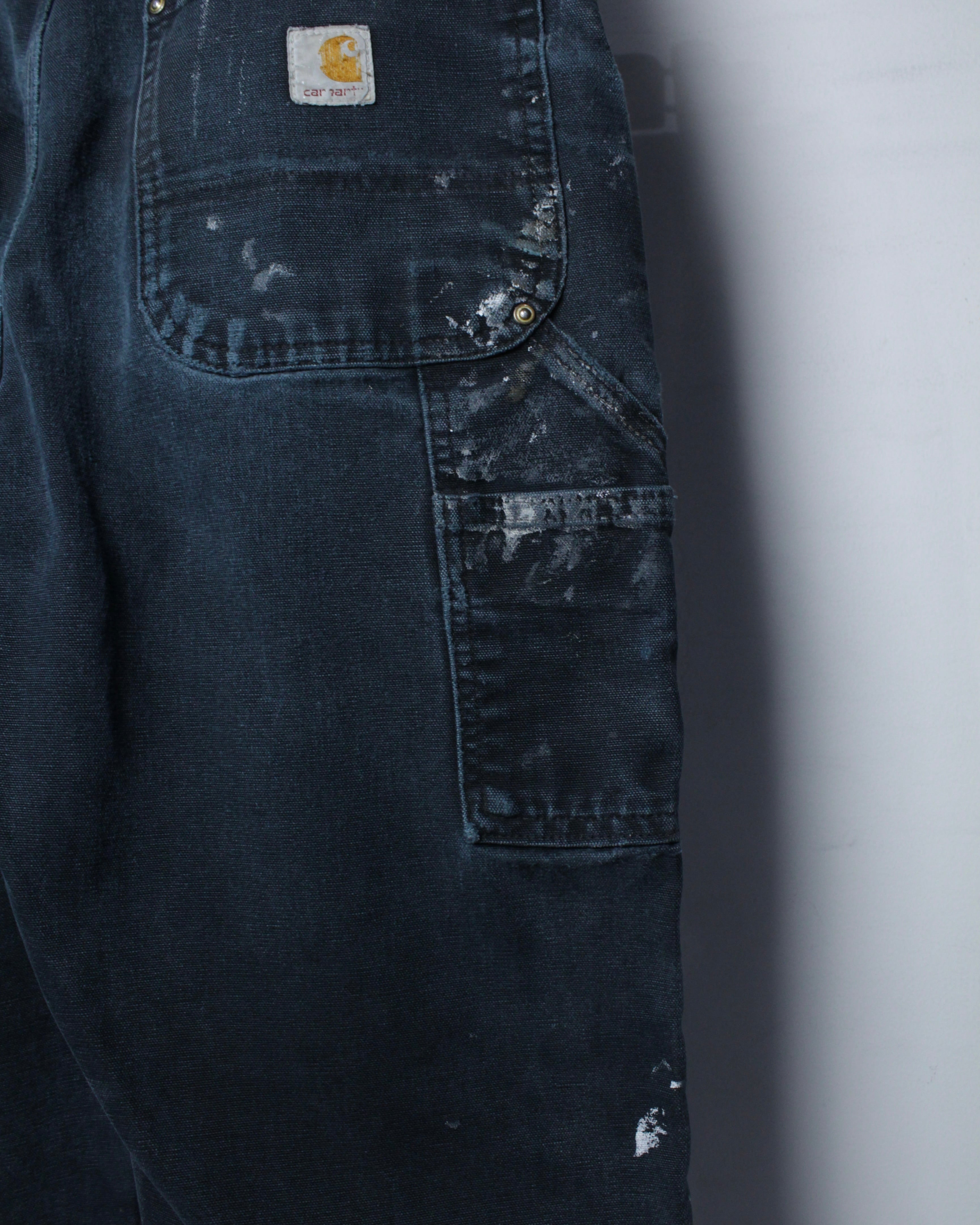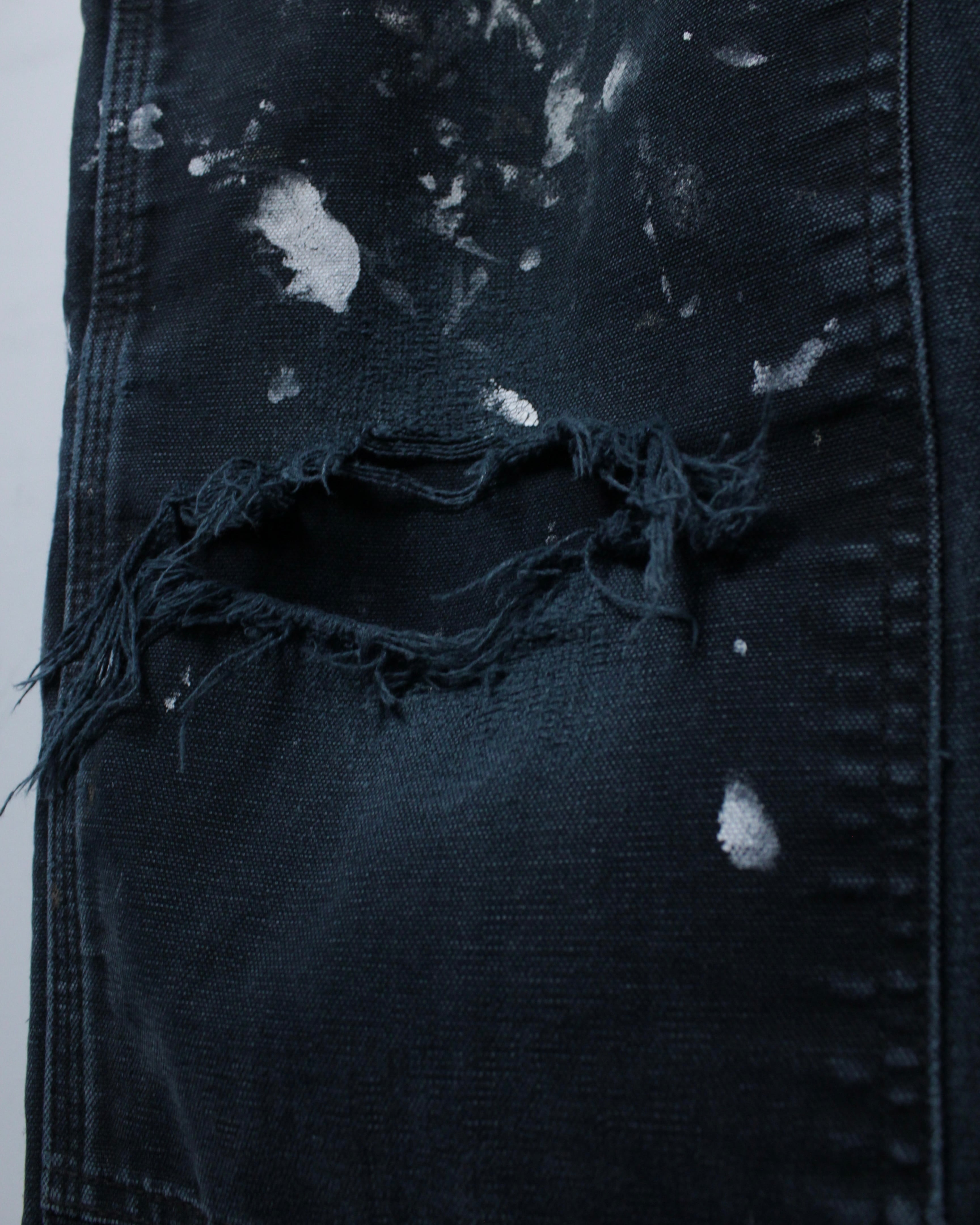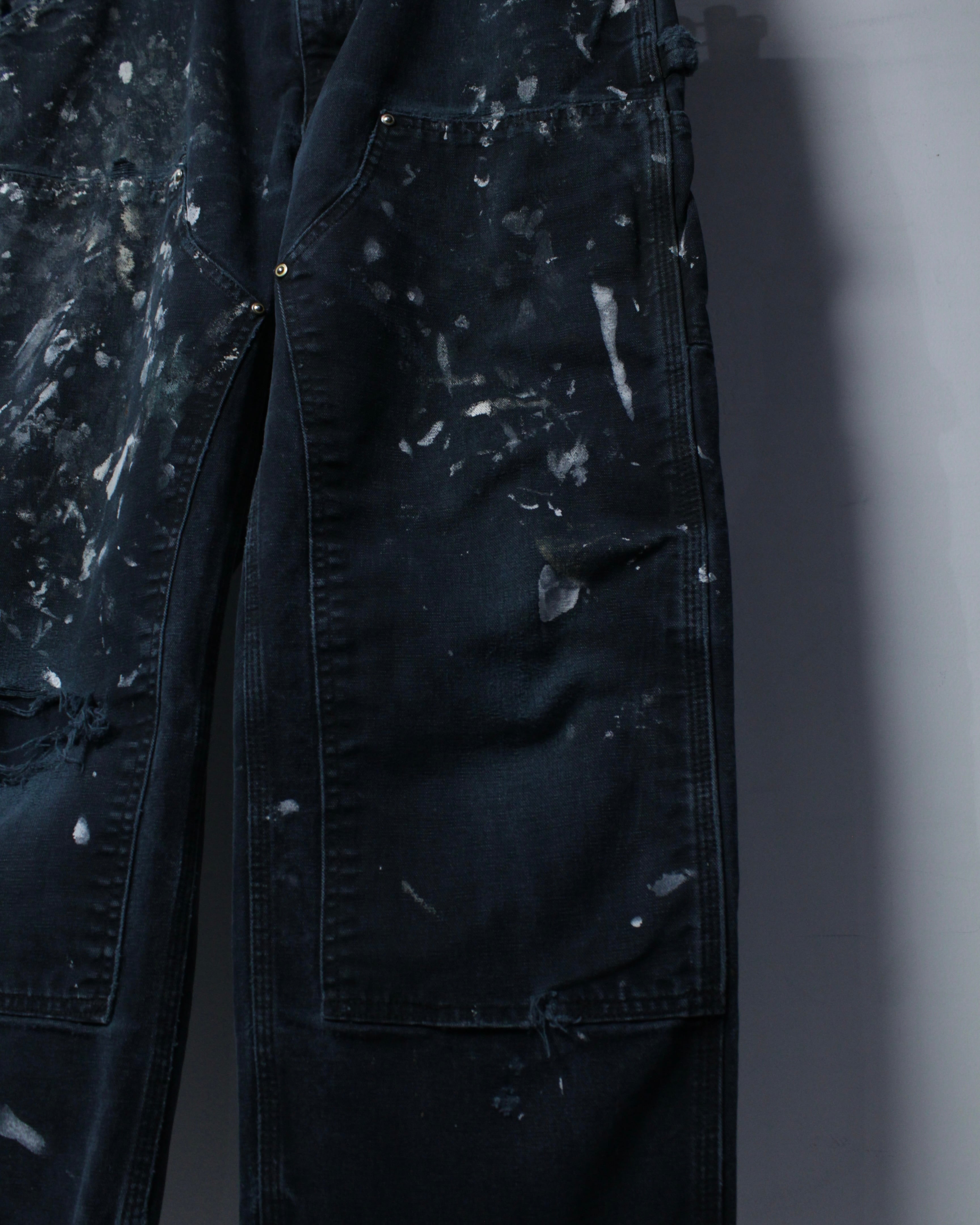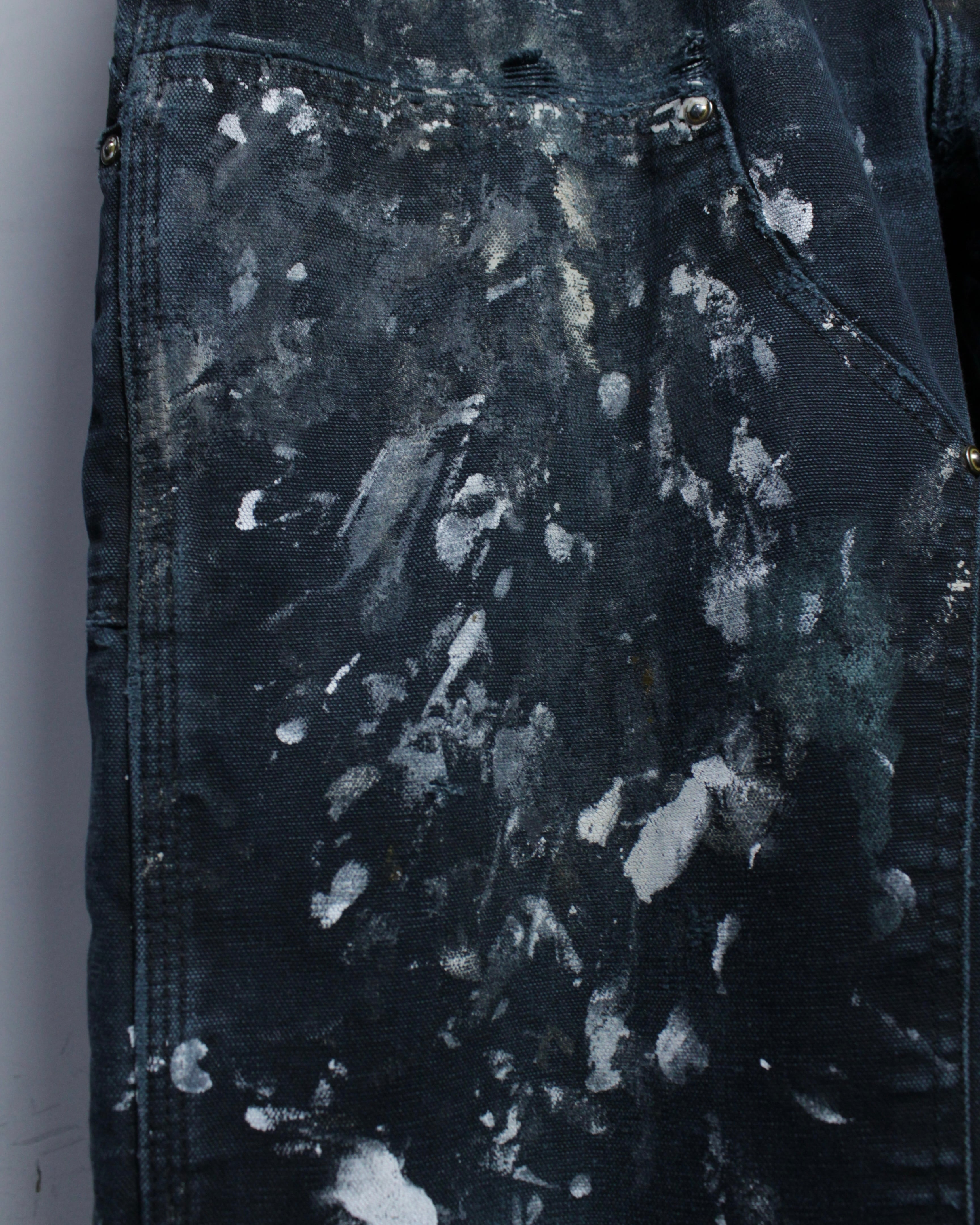 肉厚でタフなダック地に、リアルなペイント飛びやダメージが随所に刻まれ、長年の使用によって生まれたフェードと相まって、唯一無二の表情を形成。人工では再現できない、USEDならではの迫力と雰囲気がムンムンに漂います。ダブルニー仕様によるフロントの補強やリベット使い、ハンマーループなど、ワーク由来のディテールも抜かりなく搭載。