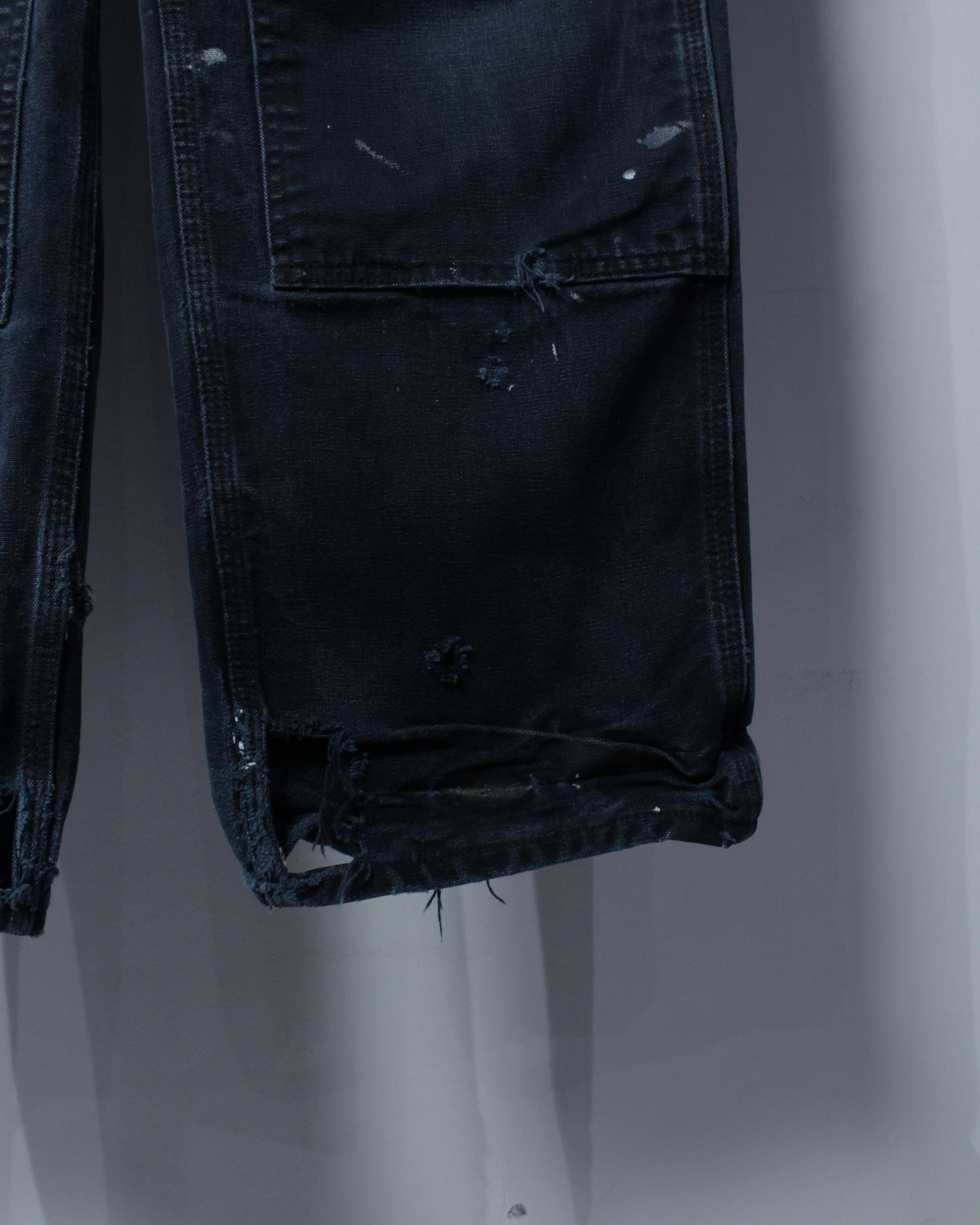 昨今ヴィンテージバイヤーやディーラーの間でも球数が減少し、入手が困難になりつつあるブラックのダブルニーダックパンツ。無骨なワークウェアをベースにしながらも、ブラックカラー特有の都会的な空気感を纏った一本です。