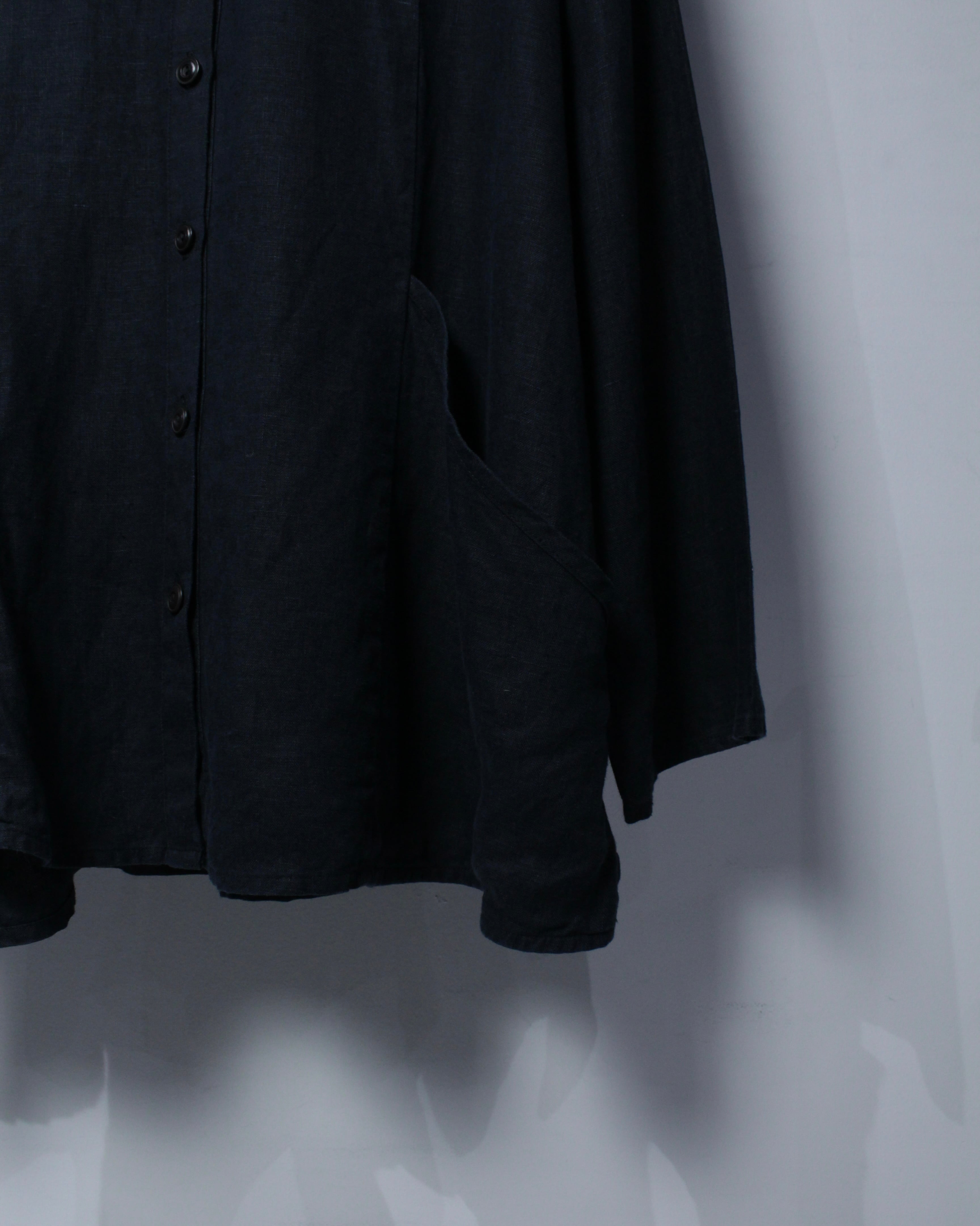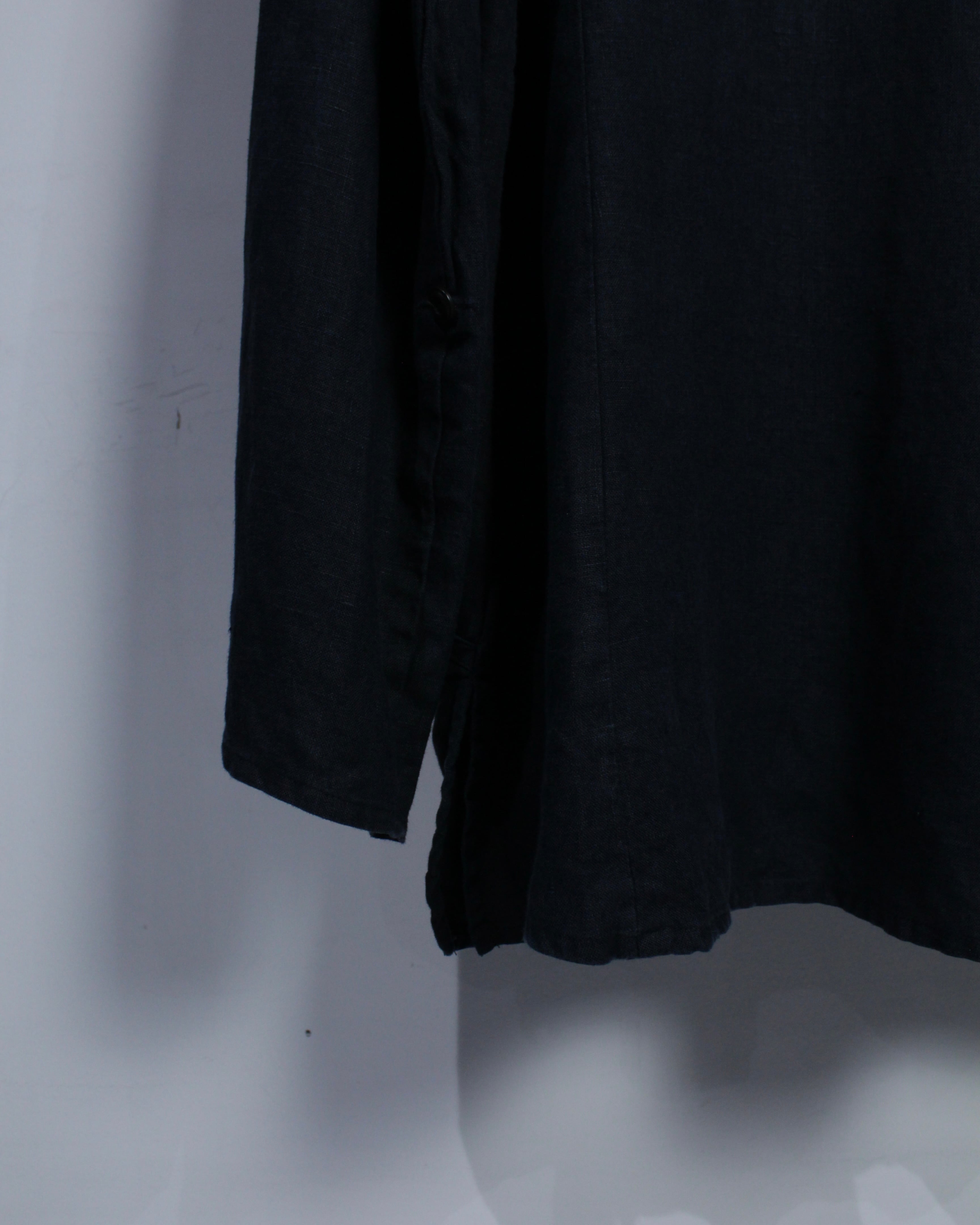 市場でも意外と見つからないブラックリネンの個体。素材・シルエット・ブランド背景すべてが揃った、長く愛用できるスペシャルな一着です。