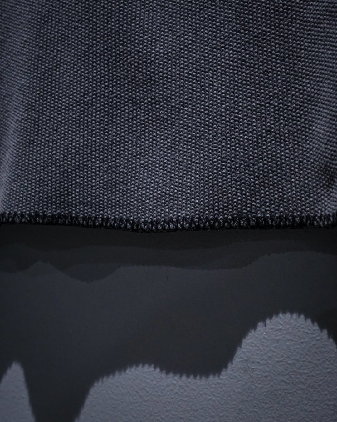 100%コットンで仕立てられたボディは、ドライタッチで軽やかな着心地。薄手のニット地ならではの柔らかな風合いがあり、絶妙なグレーのカラーリングによって、こなれ感を演出しています。
