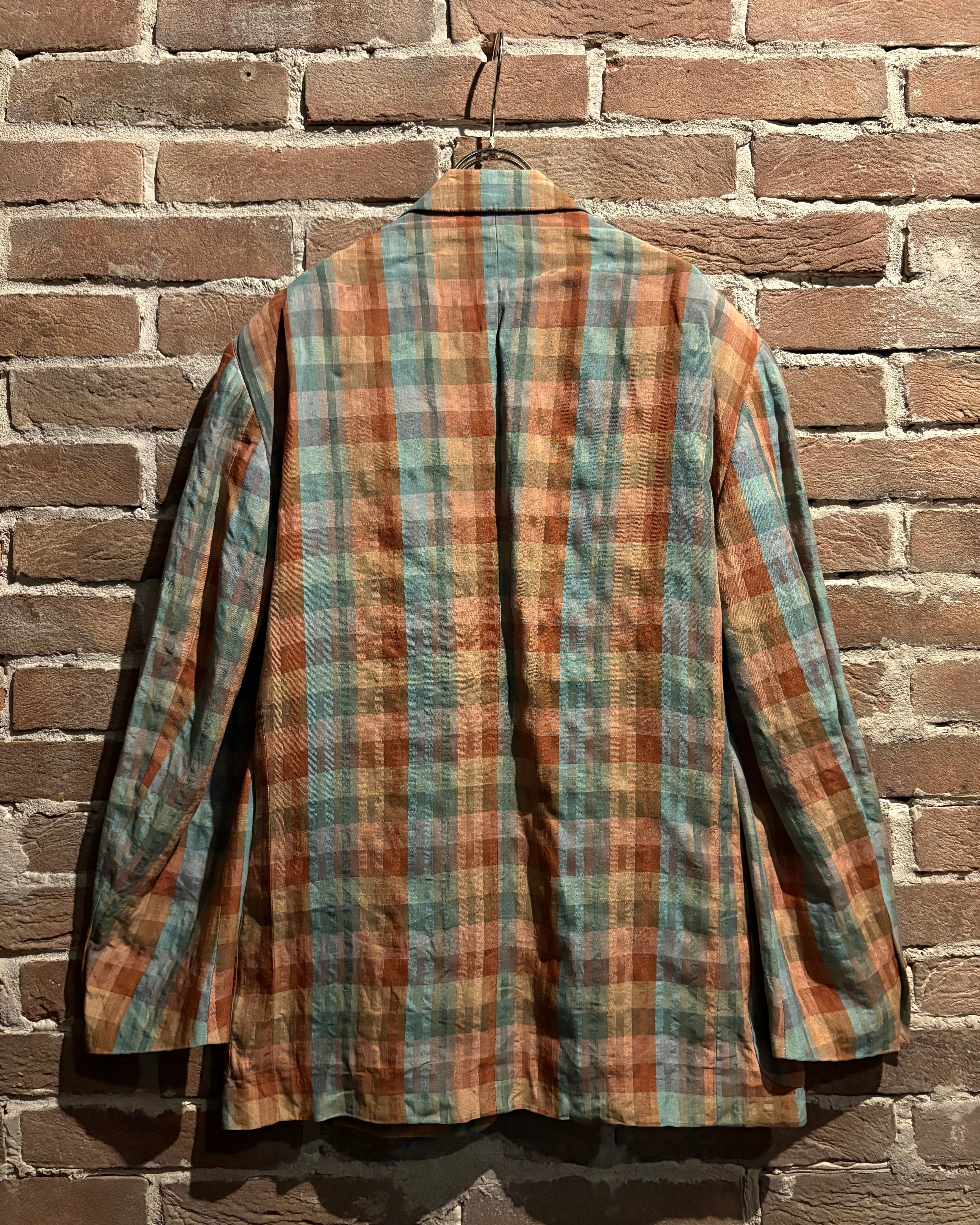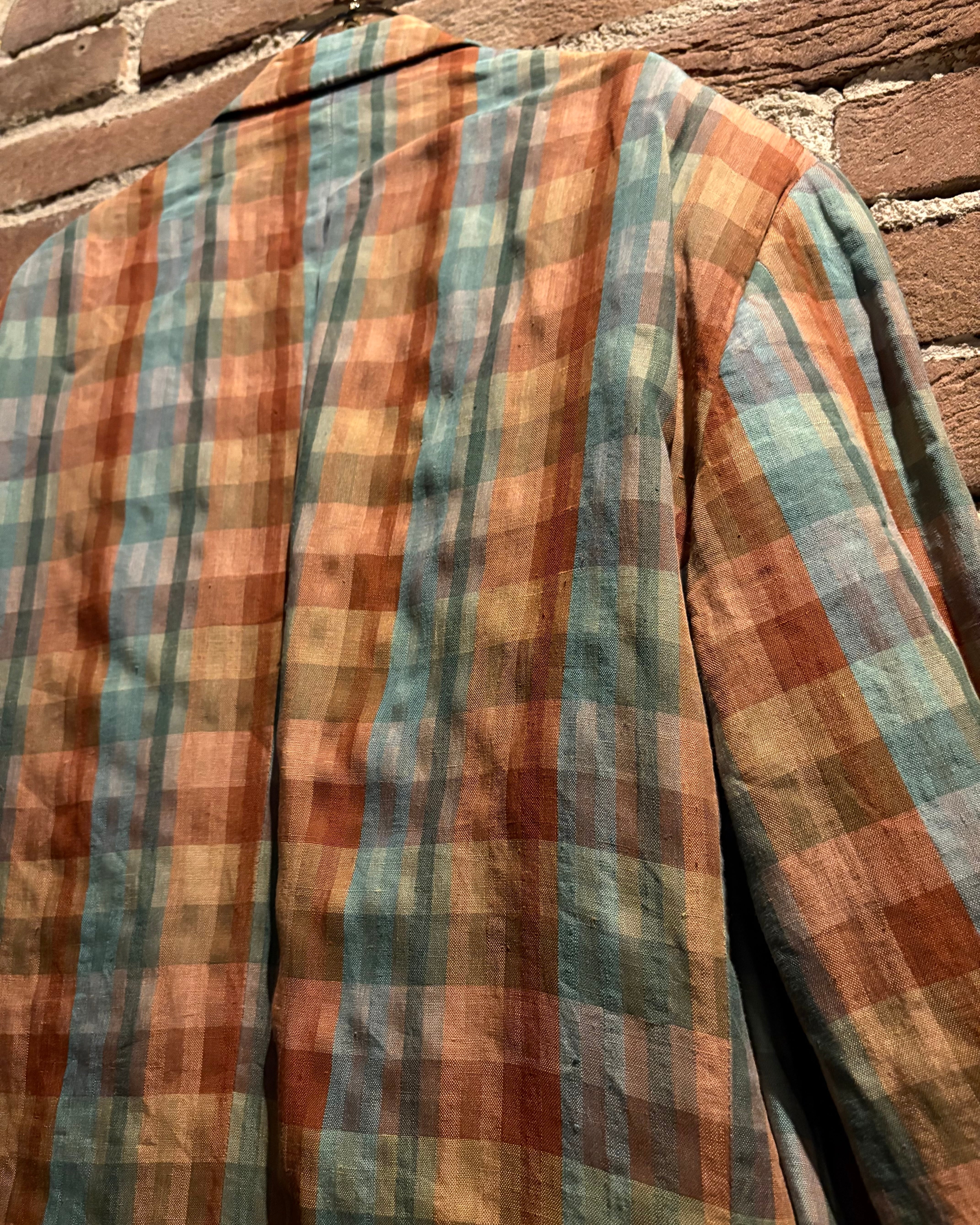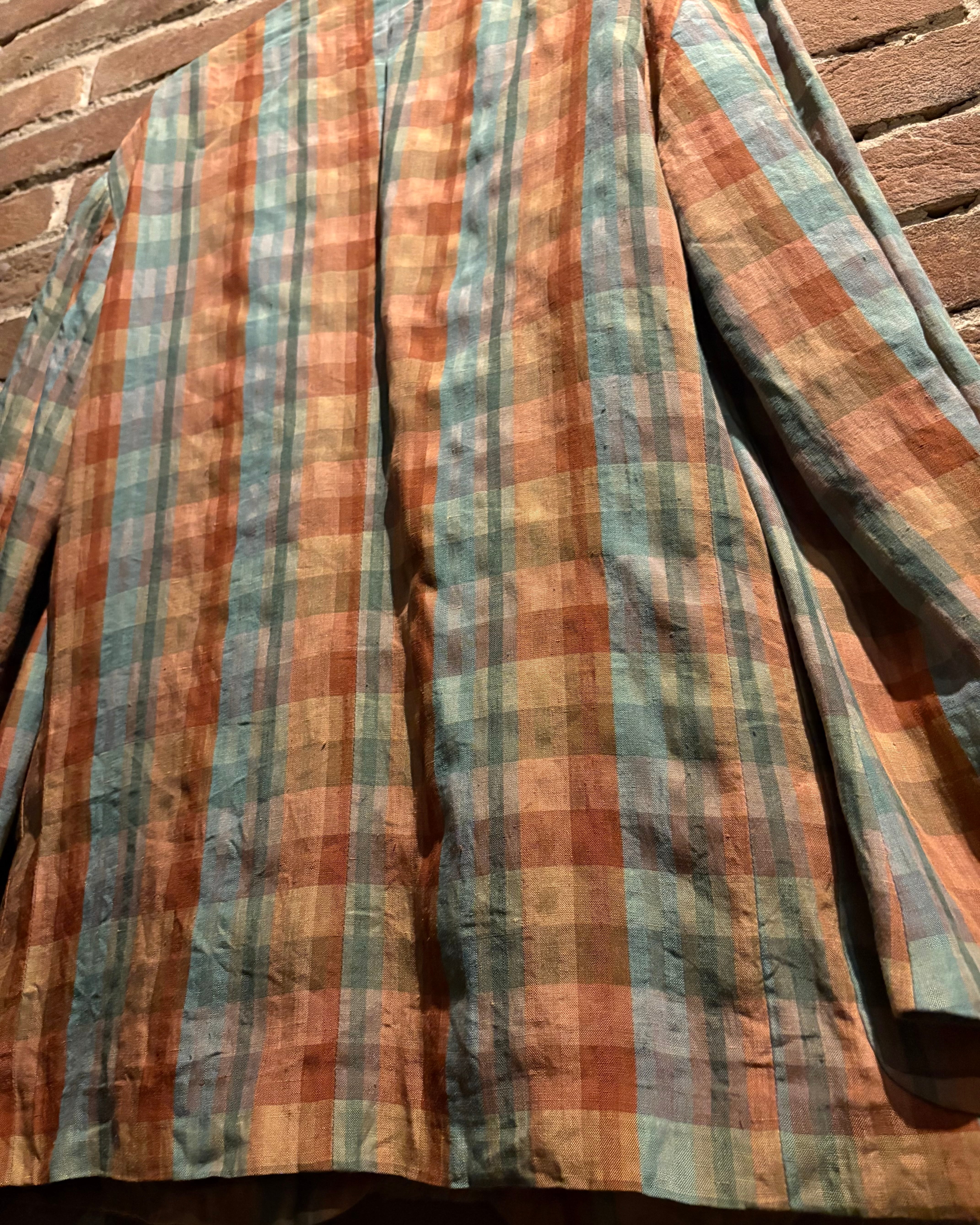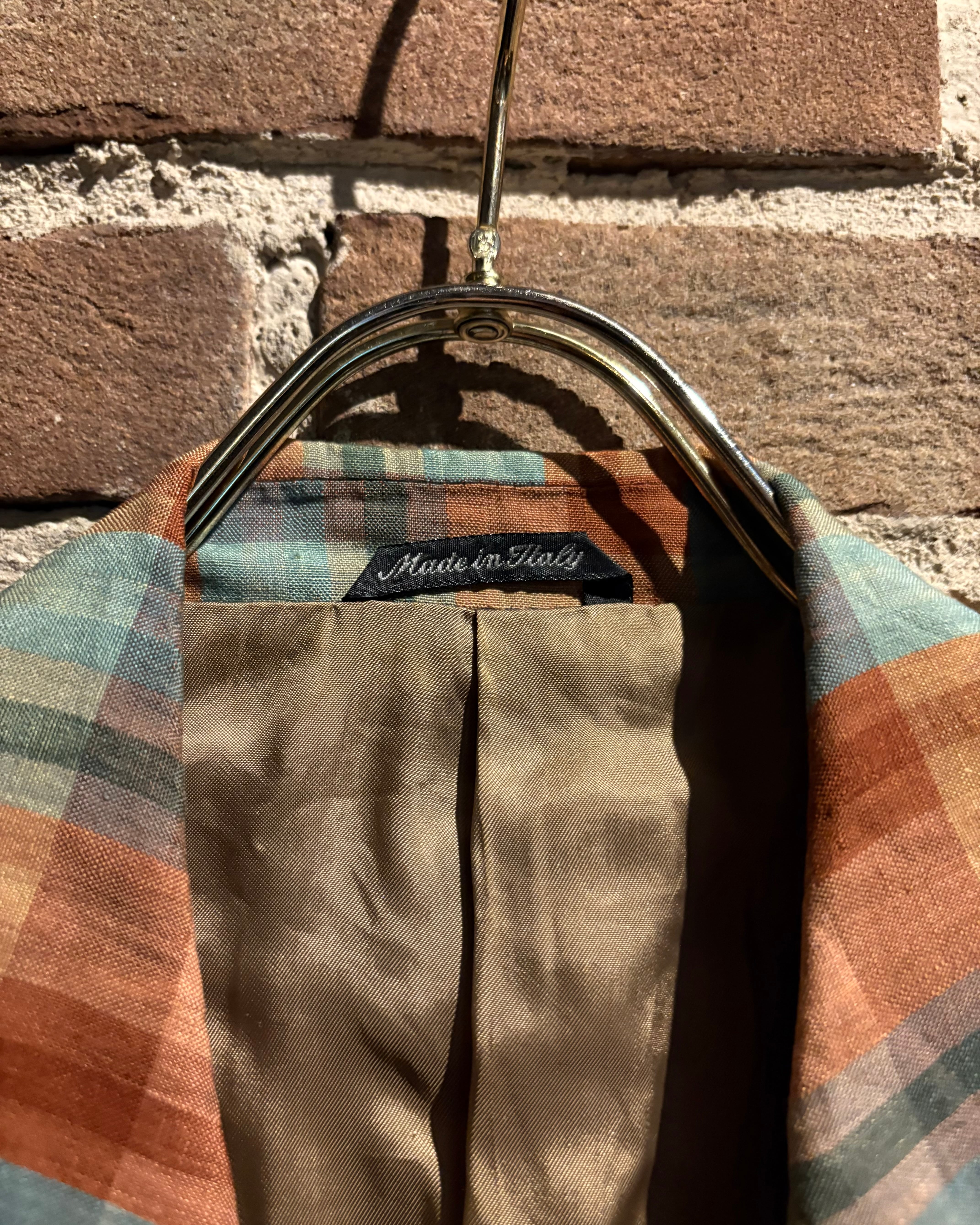 上質なリネン100%を使用した軽やかなファブリックに、柔らかくも奥行きのあるチェックパターンを載せた1着。MISSONIらしい色彩感覚が存分に発揮された配色は、オレンジやブルーを織り交ぜた絶妙なバランスで、春夏らしい清涼感と華やかさを両立しています。