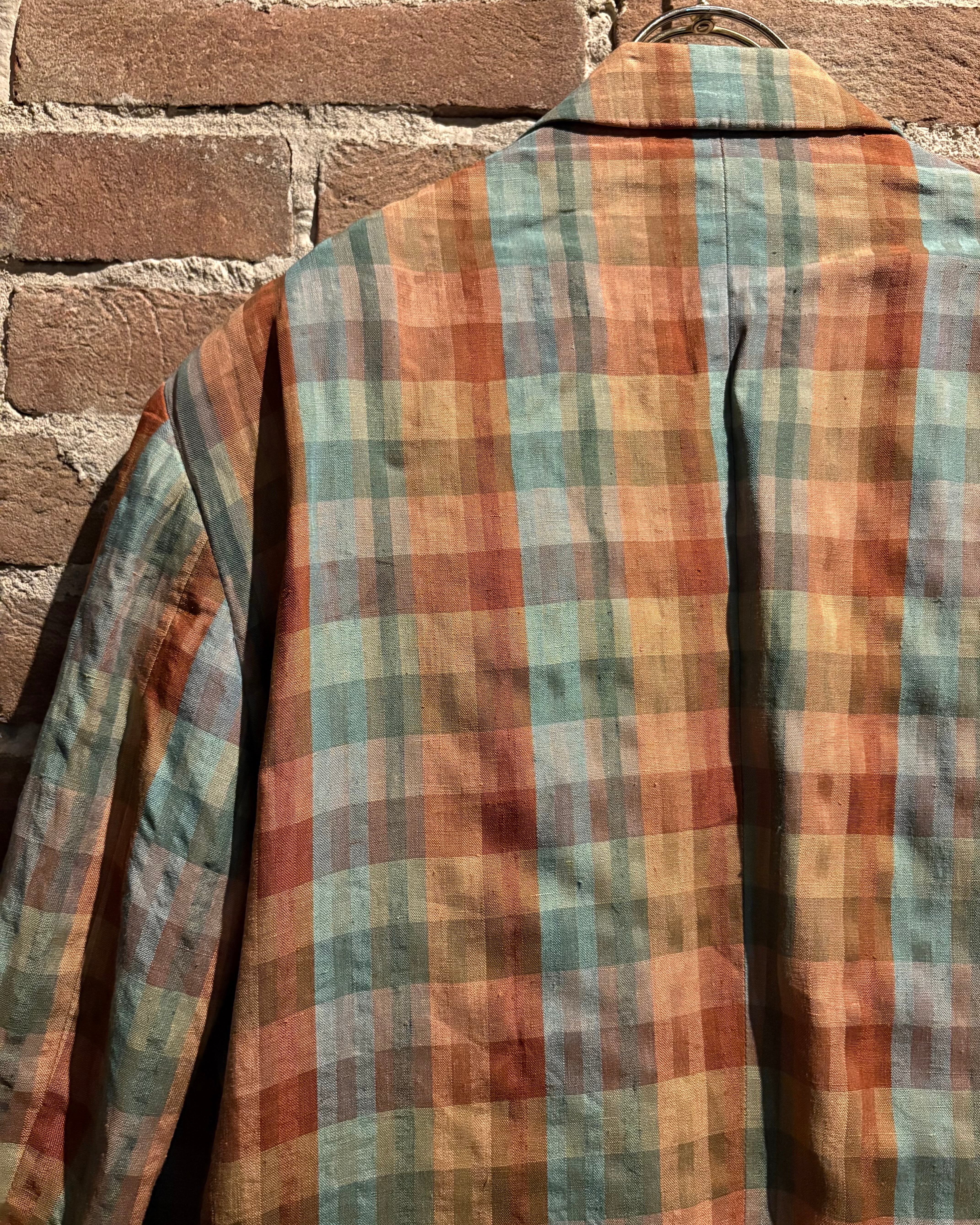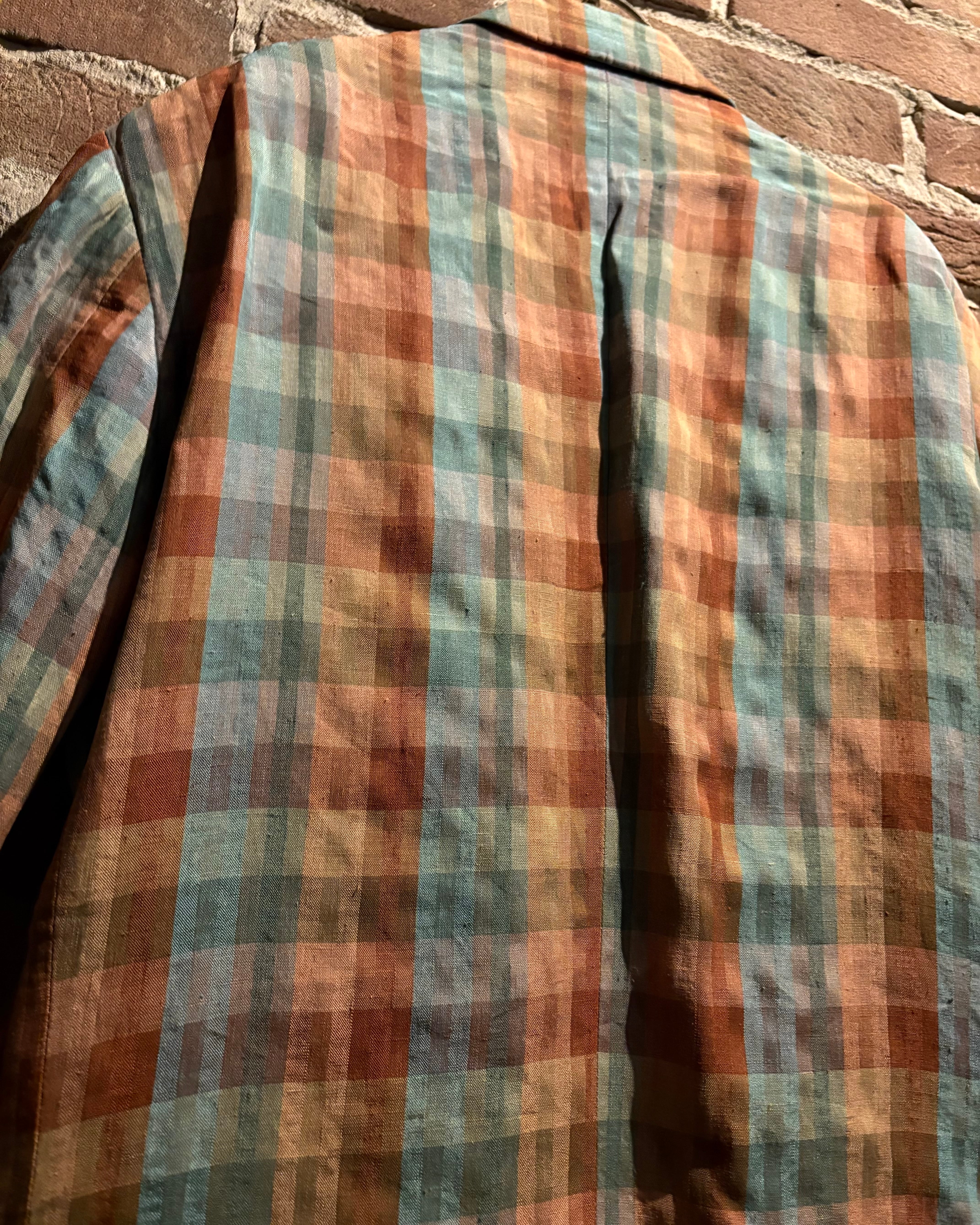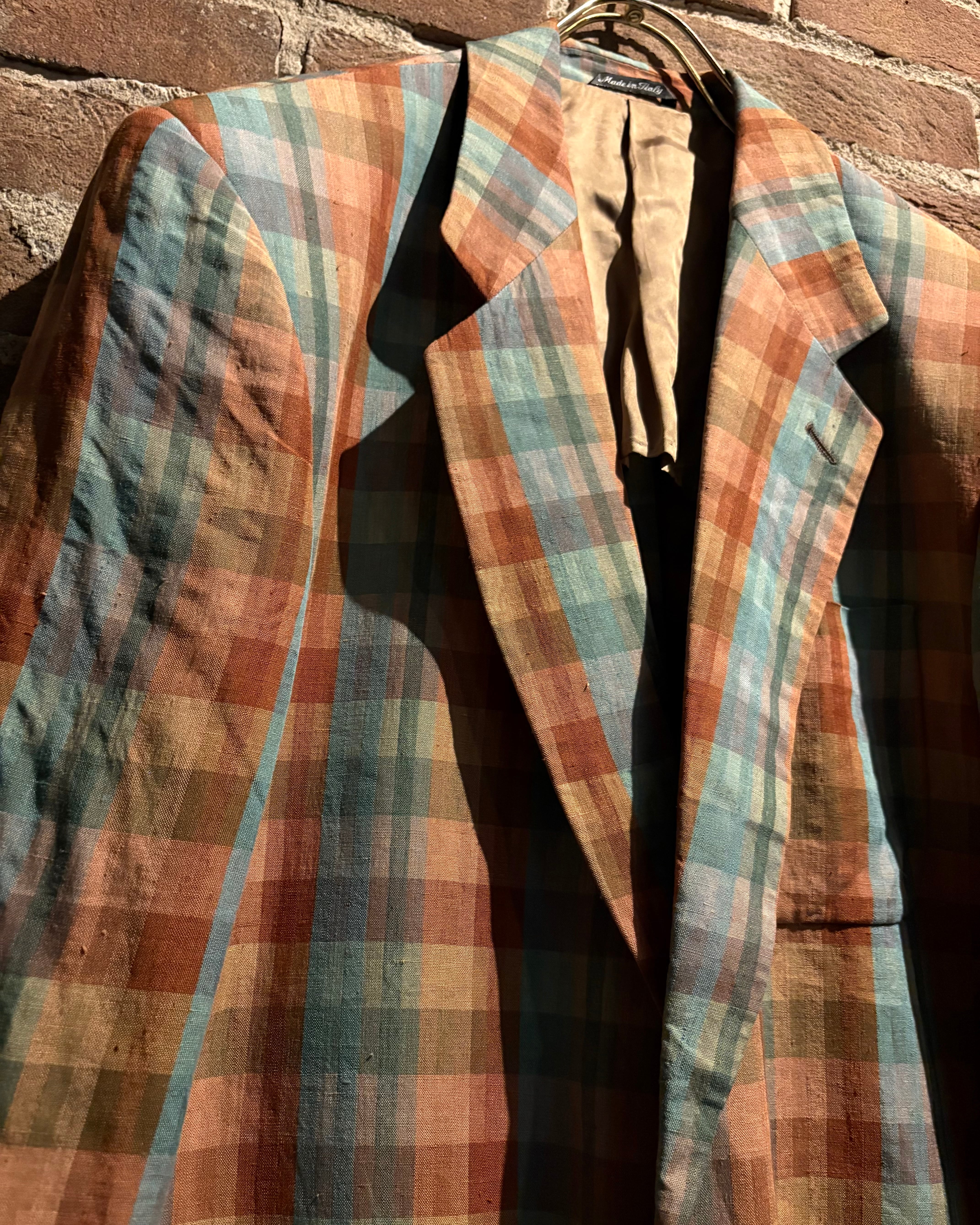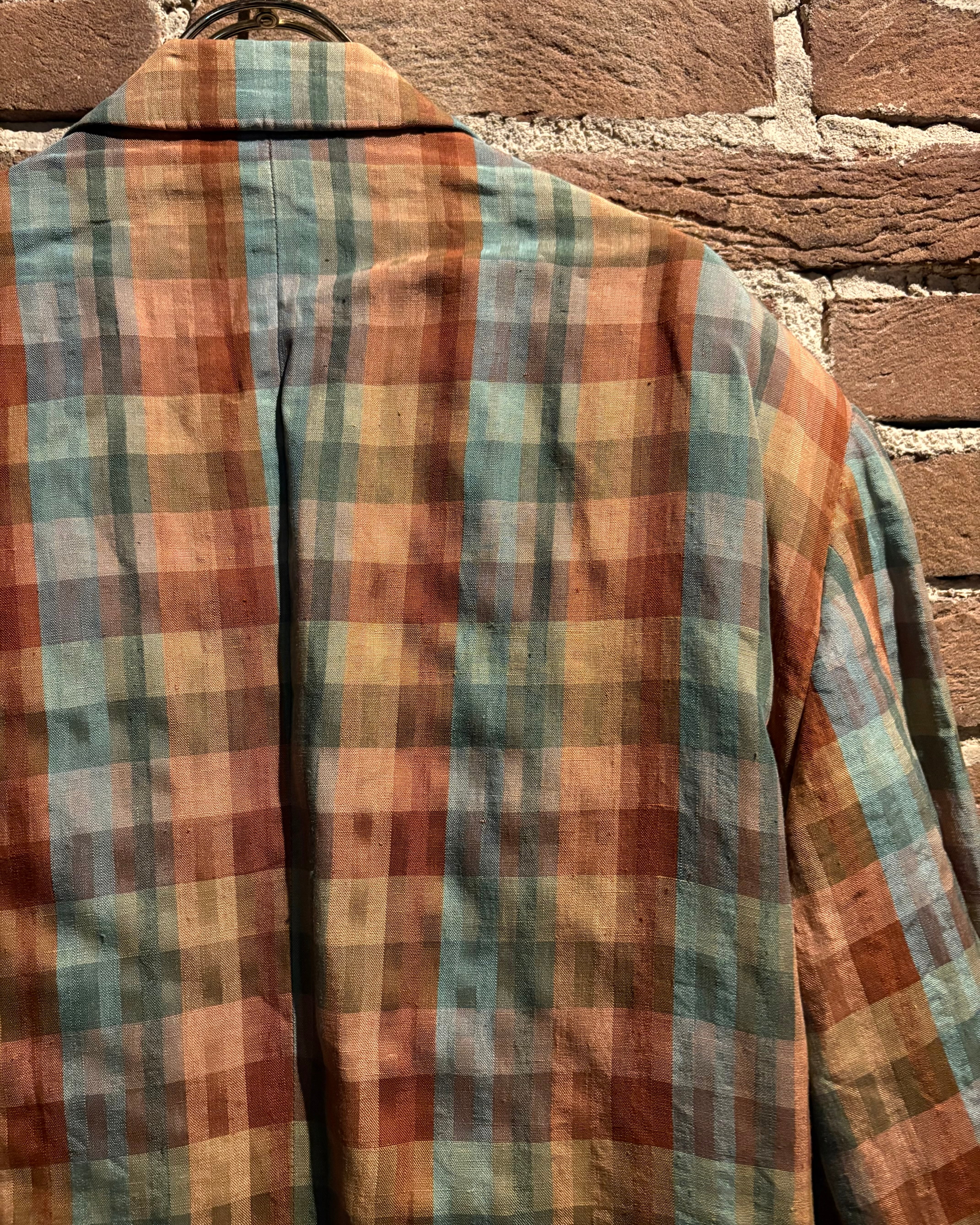 上質なリネン100%を使用した軽やかなファブリックに、柔らかくも奥行きのあるチェックパターンを載せた1着。MISSONIらしい色彩感覚が存分に発揮された配色は、オレンジやブルーを織り交ぜた絶妙なバランスで、春夏らしい清涼感と華やかさを両立しています。