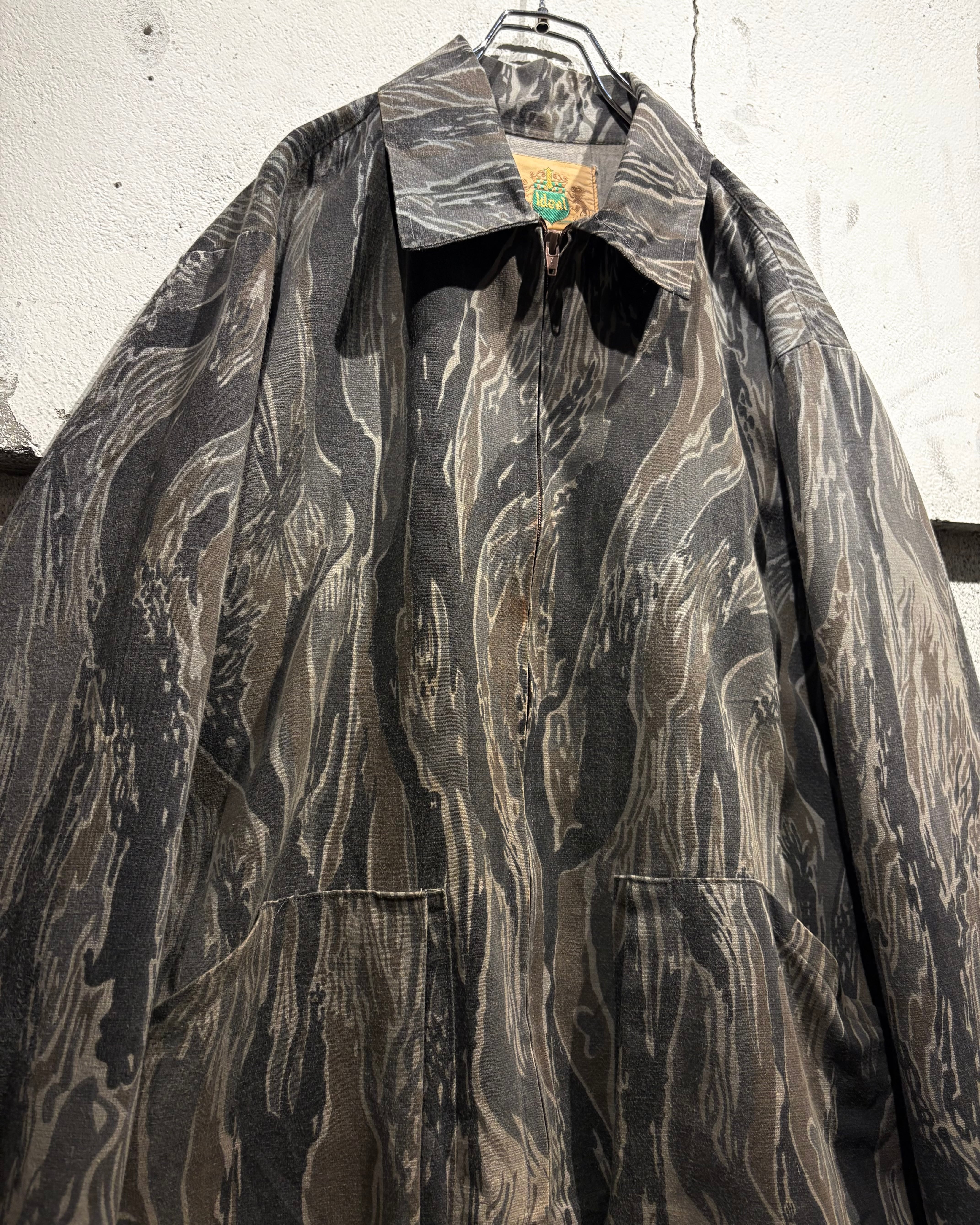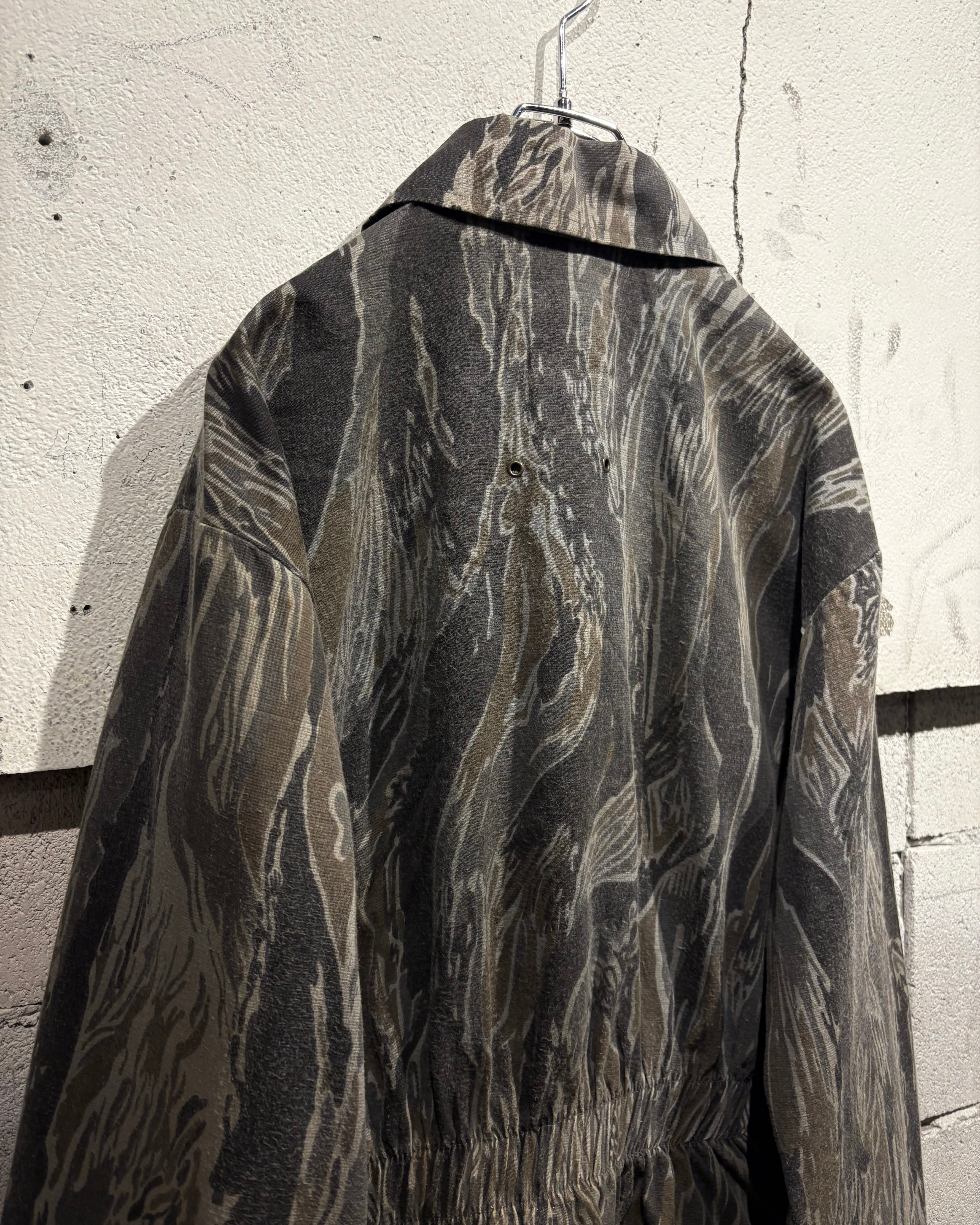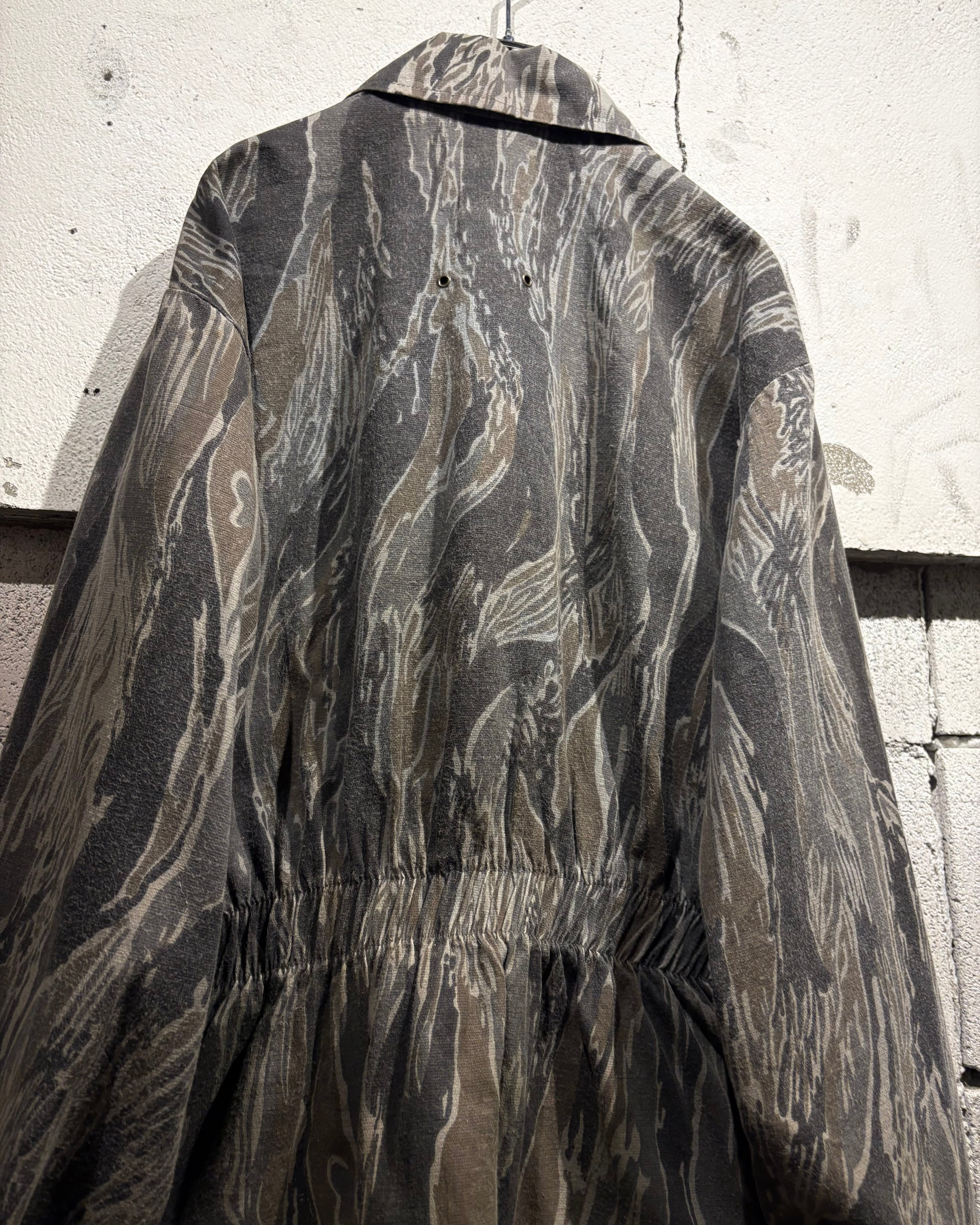 フロントはジップ仕様、両サイドにはポケットを配置したシンプルながらも実用的なディテール。タフなカモ柄に対してシンプルなディテールが、より柄の迫力を引き立てています。