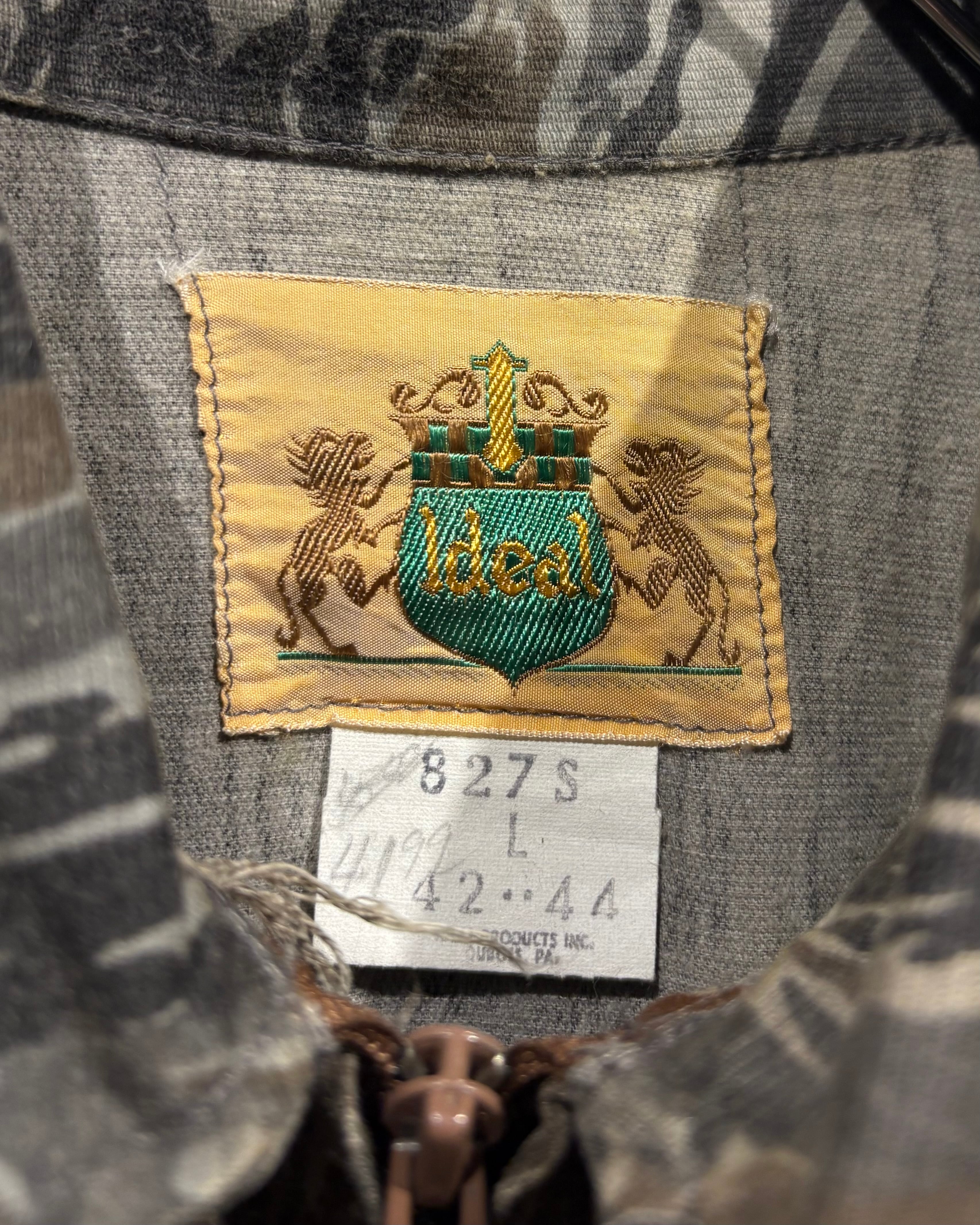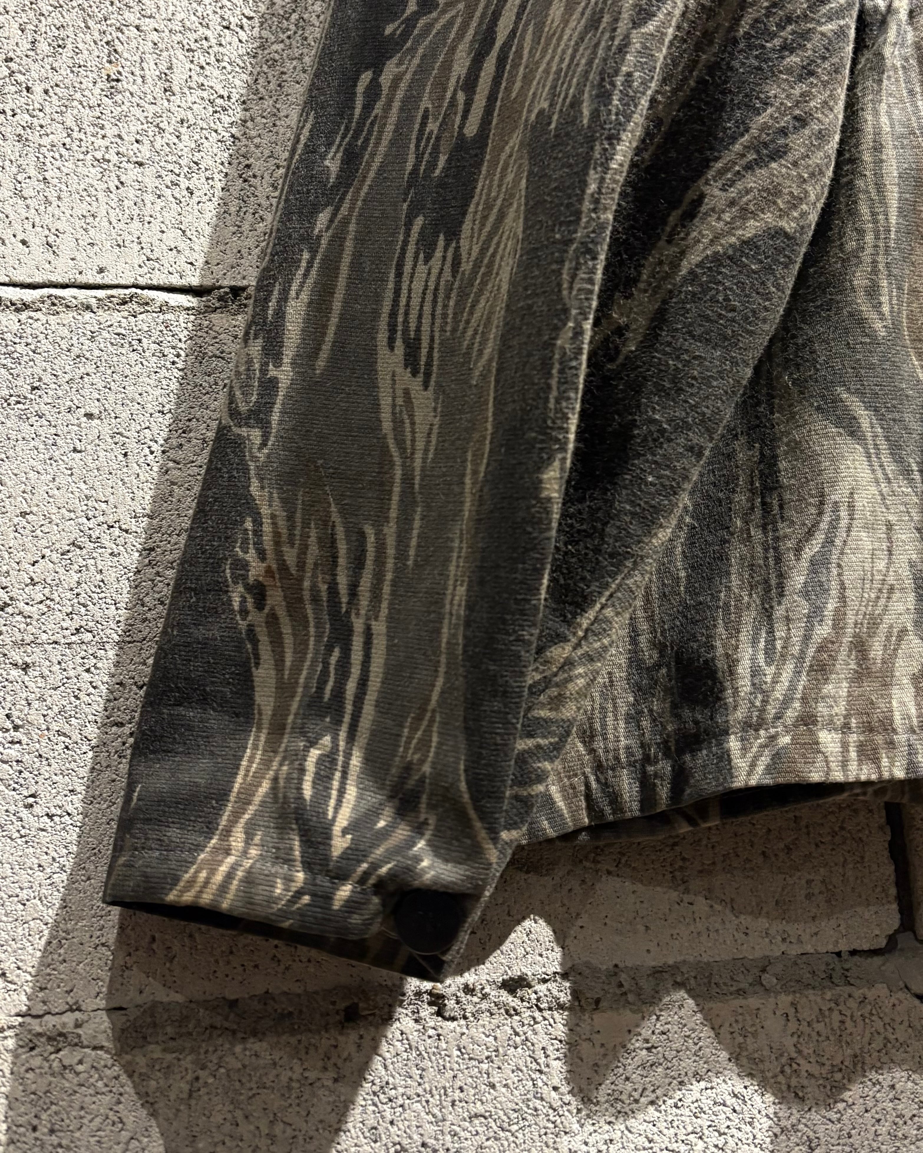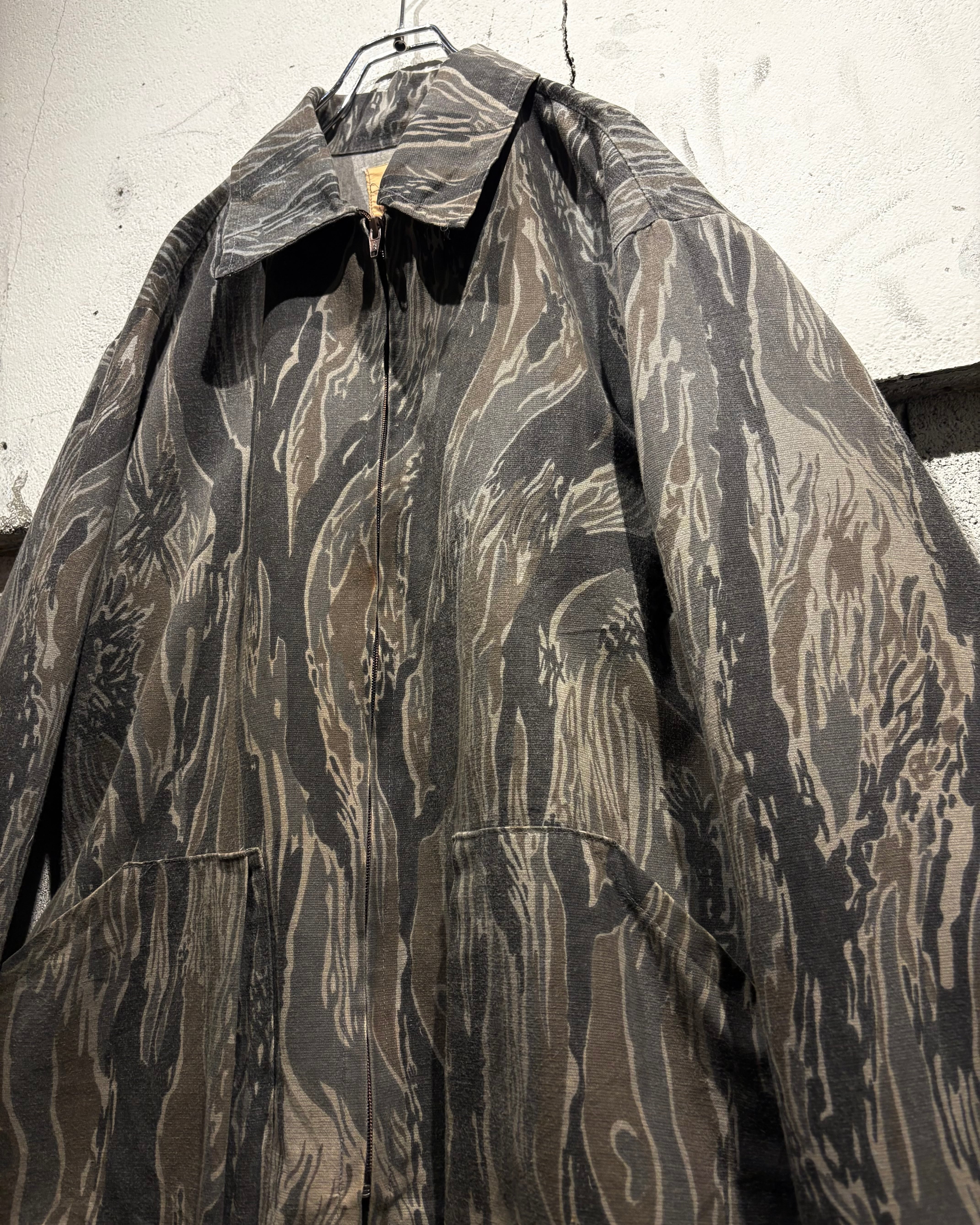 フロントはジップ仕様、両サイドにはポケットを配置したシンプルながらも実用的なディテール。タフなカモ柄に対してシンプルなディテールが、より柄の迫力を引き立てています。