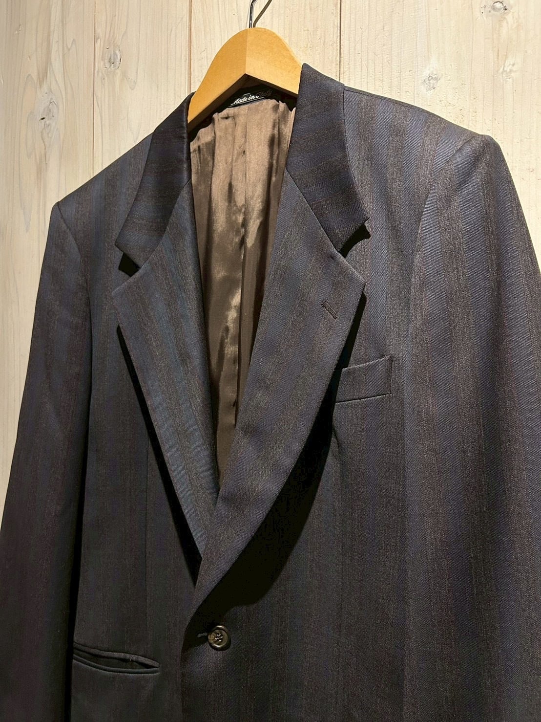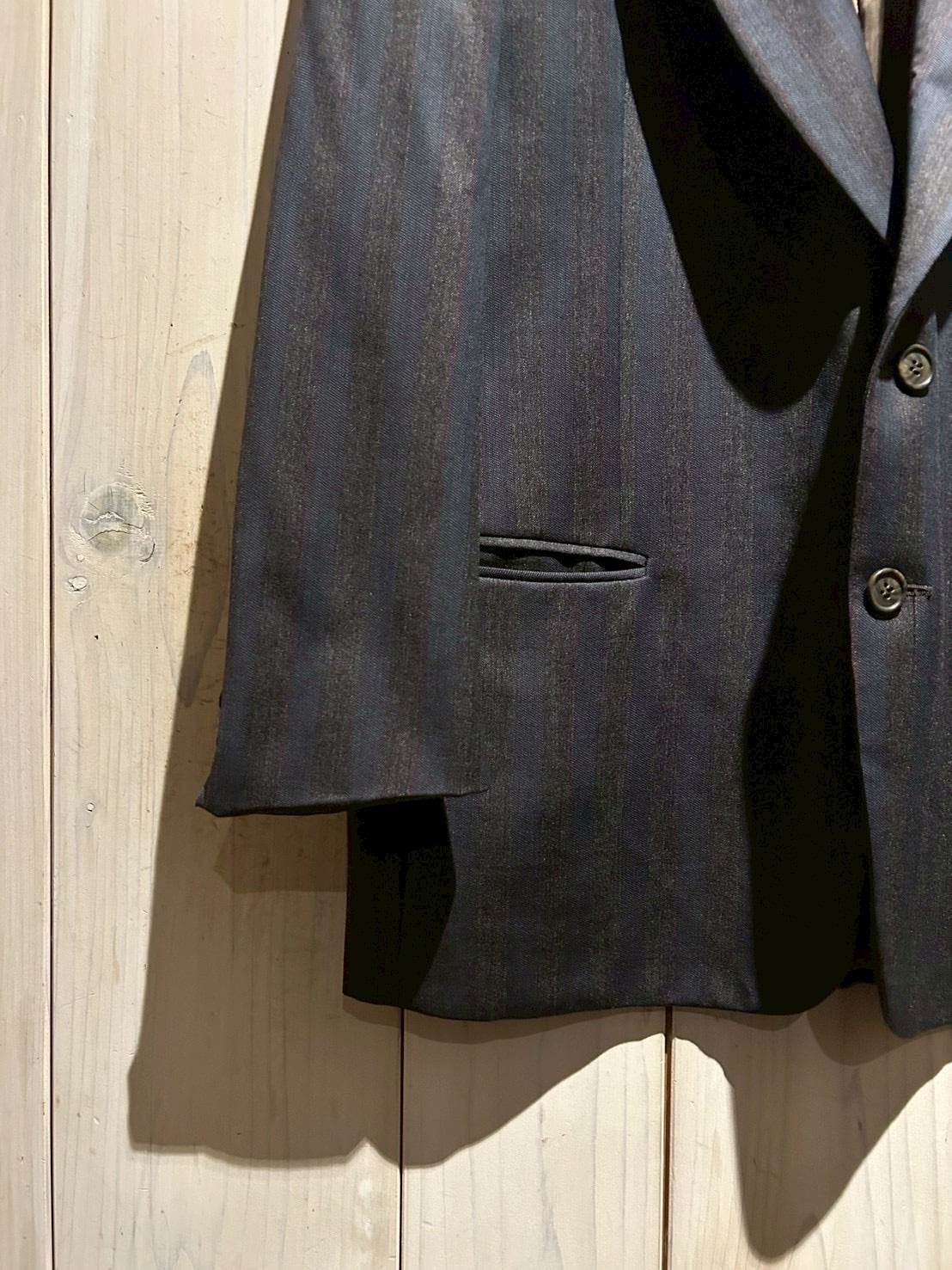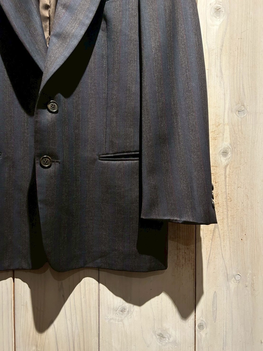 適度にゆとりを持たせたシルエットで、シャツやニットとのレイヤードはもちろん、カットソーにさらりと羽織るスタイリングも◎。クラシックとモードが共存する、当時の空気感を色濃く反映した一着です。