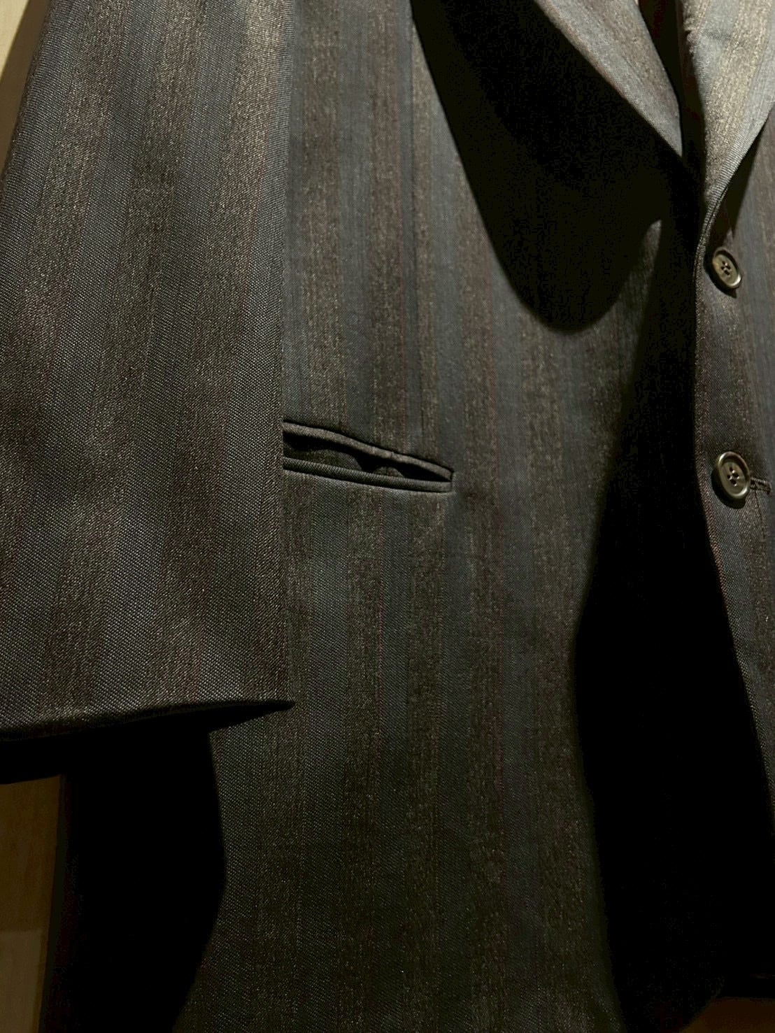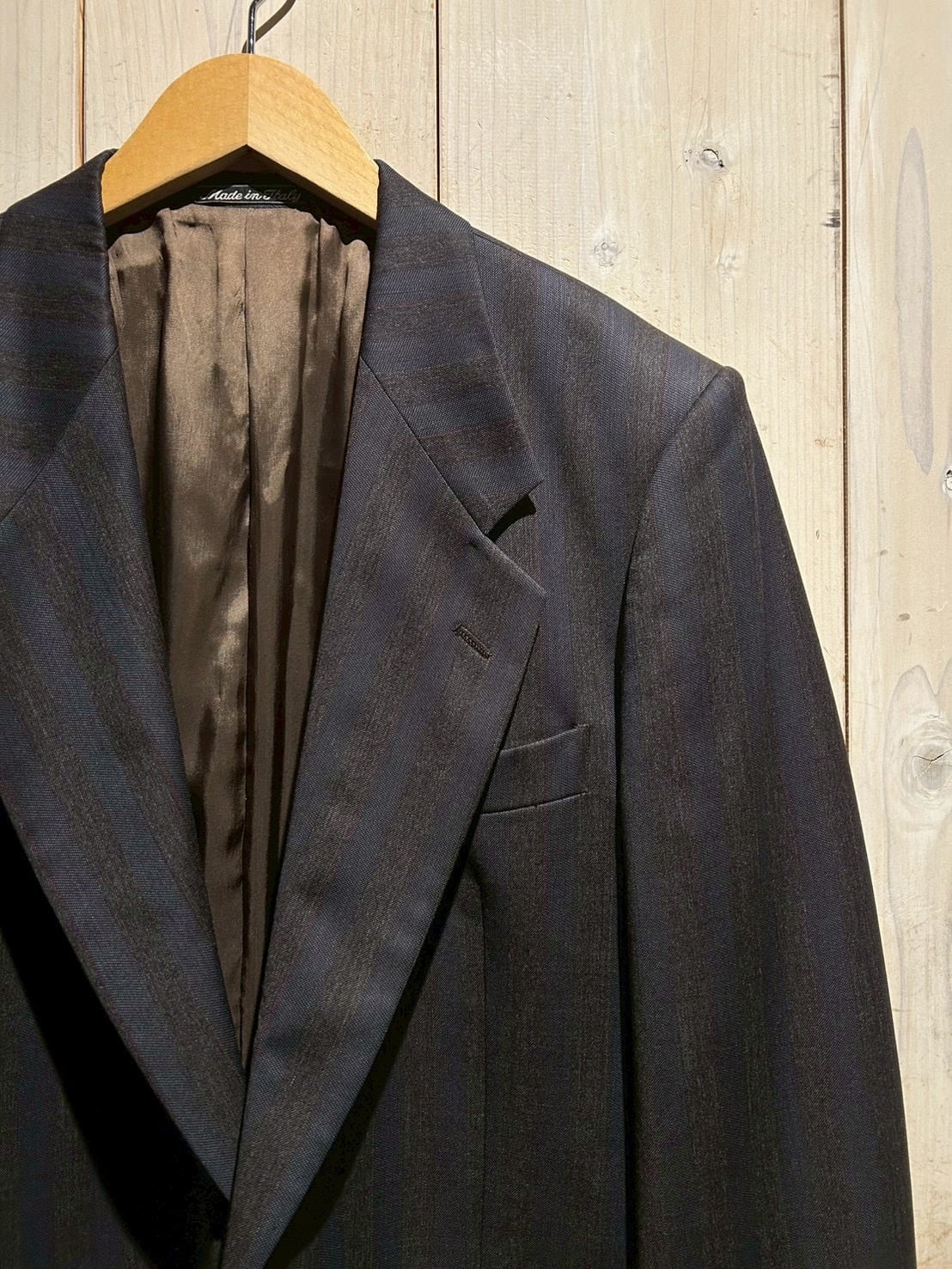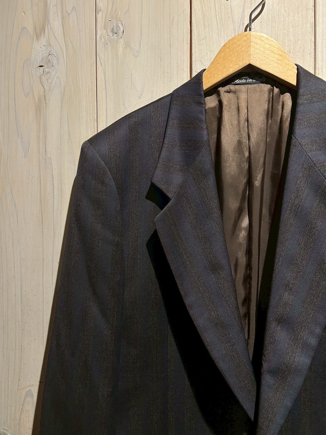 適度にゆとりを持たせたシルエットで、シャツやニットとのレイヤードはもちろん、カットソーにさらりと羽織るスタイリングも◎。クラシックとモードが共存する、当時の空気感を色濃く反映した一着です。