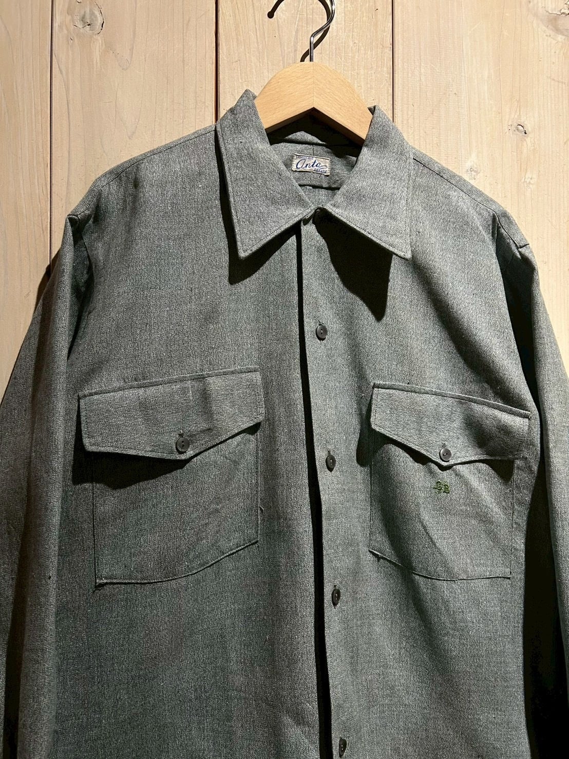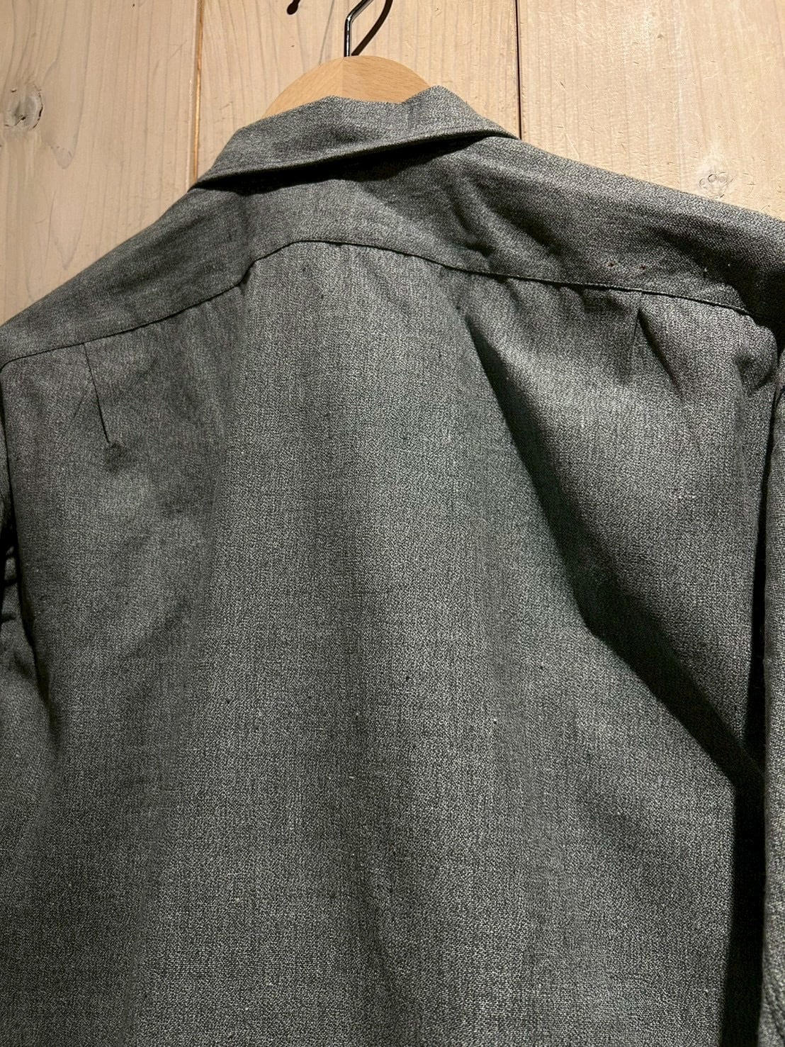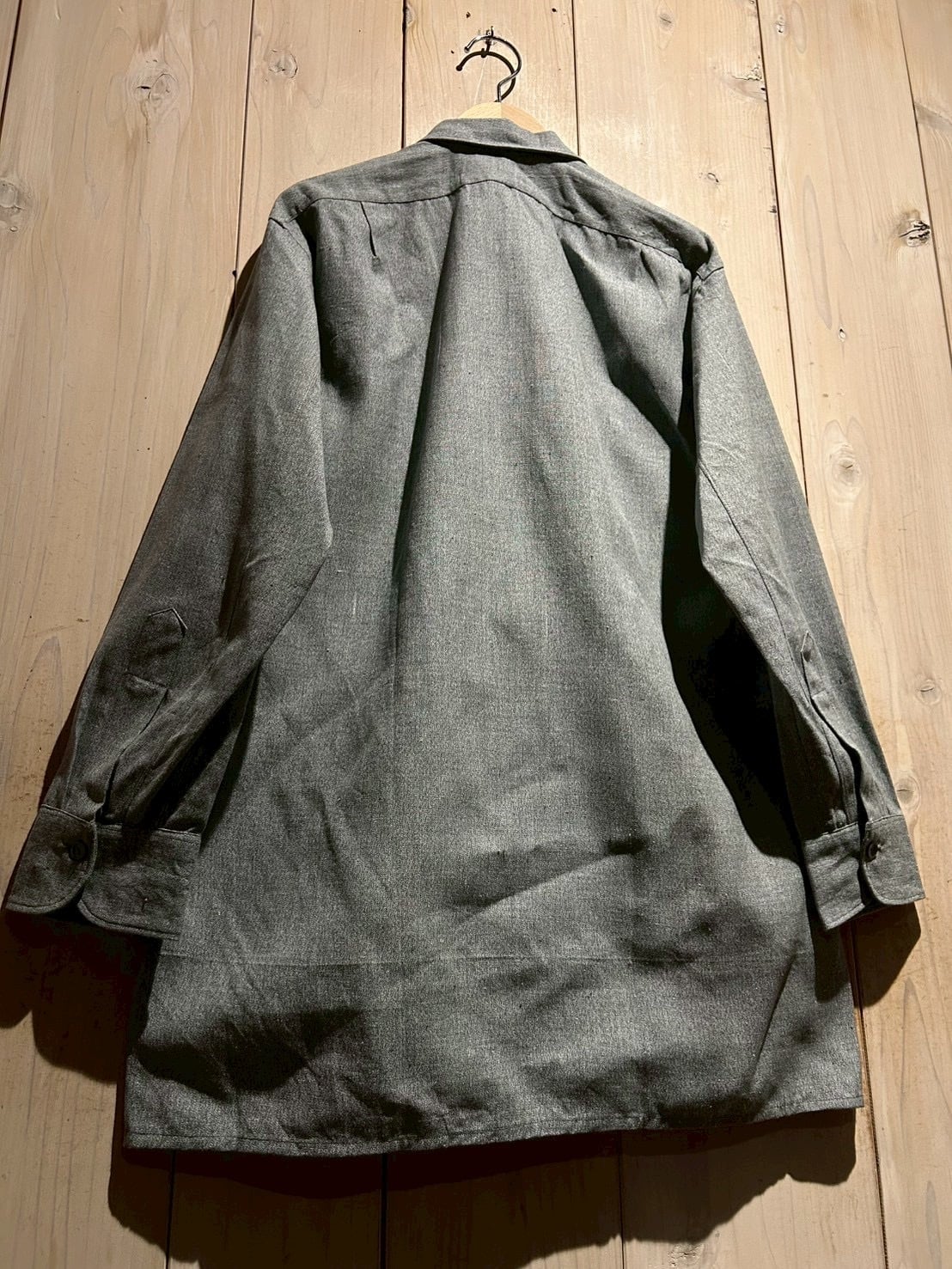 生地にはハリのあるシャンブレーを使用し、細かな織りによる奥行きのあるグレートーンが魅力。着込むことで柔らかさと風合いが増していく、ヴィンテージならではの経年変化も楽しめる一着です。