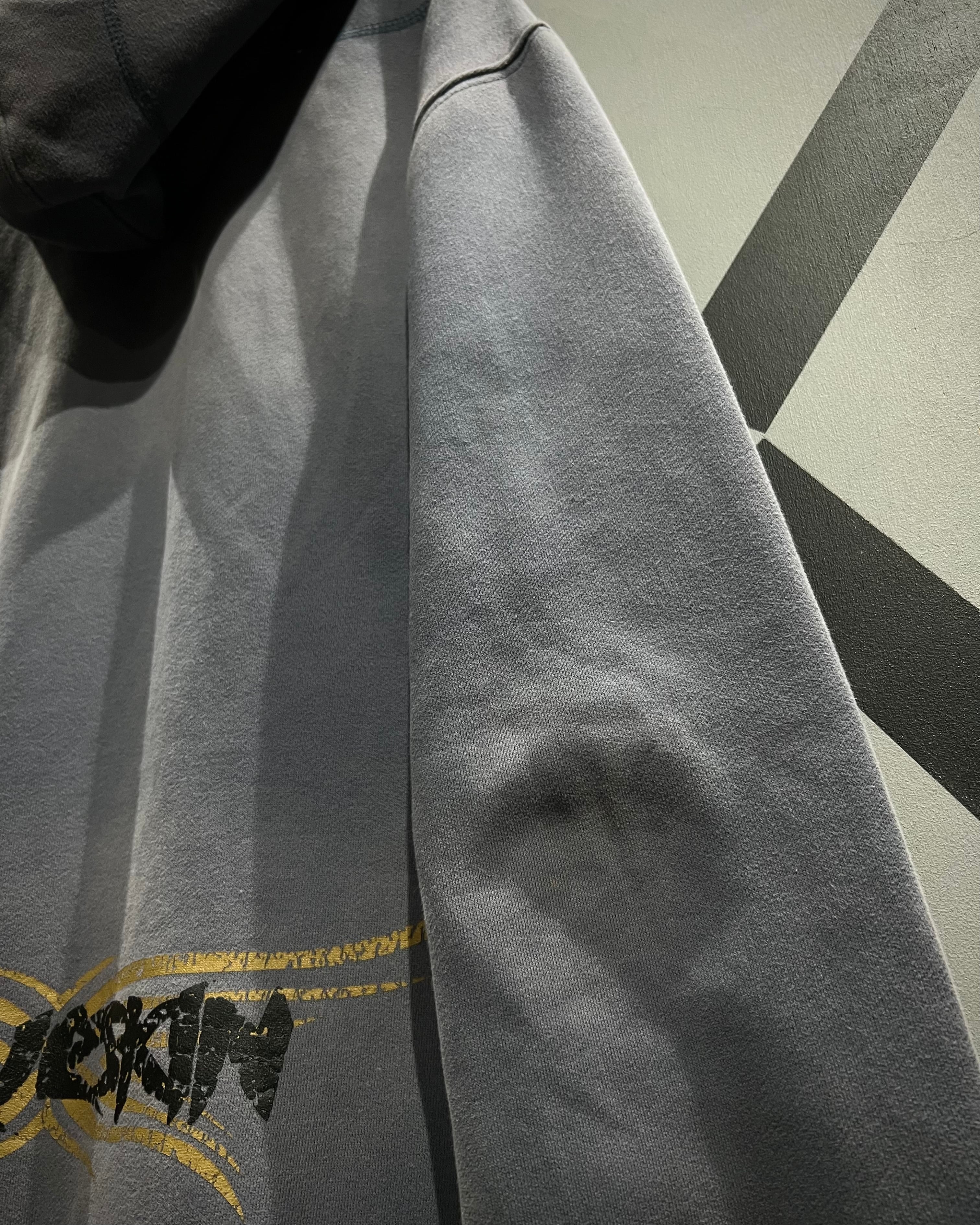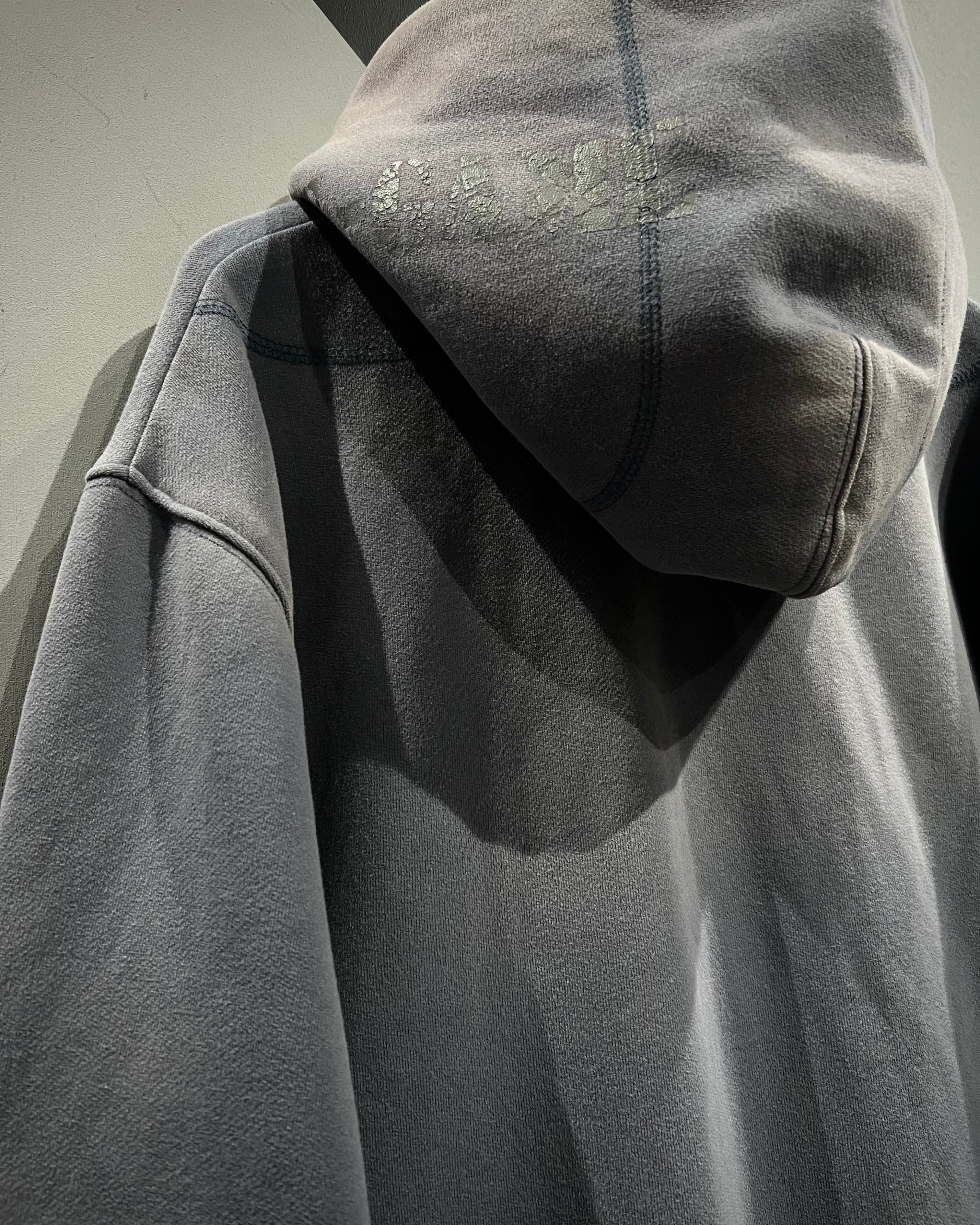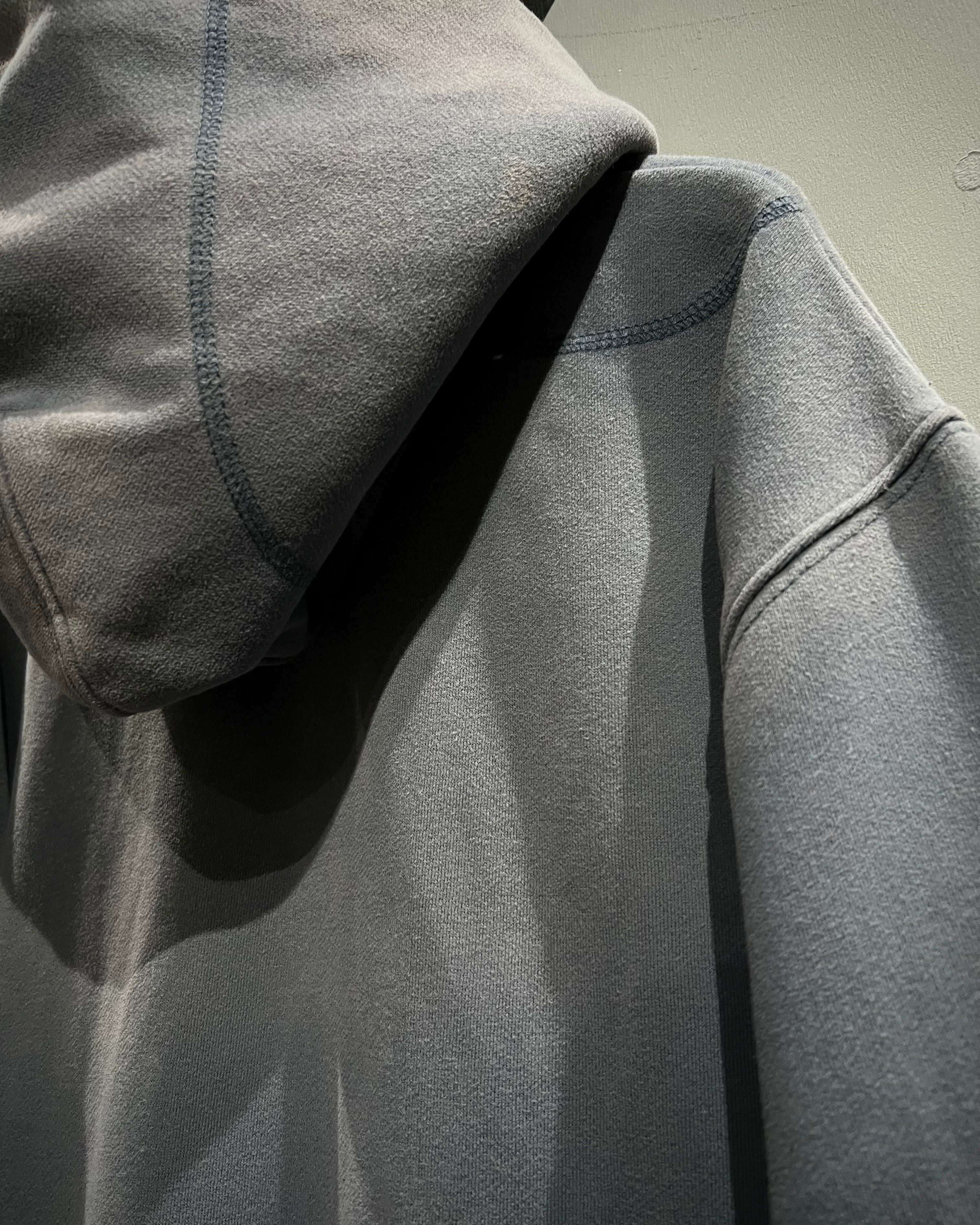 長年の着用や環境によって生まれたフェード感が、グレーのボディに奥行きがある一着。光の当たり方で陰影が変化し、グラデーションがかった色味はまさに一点物の風合いです。