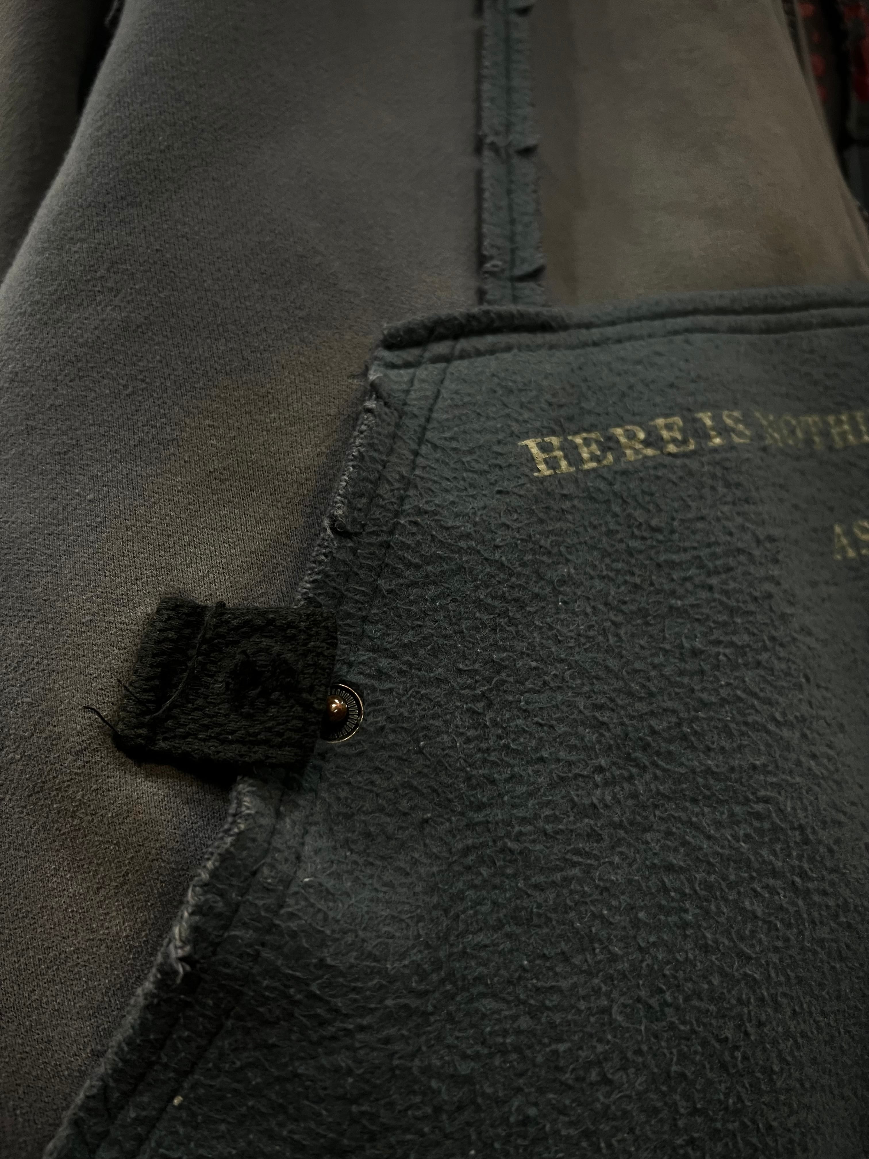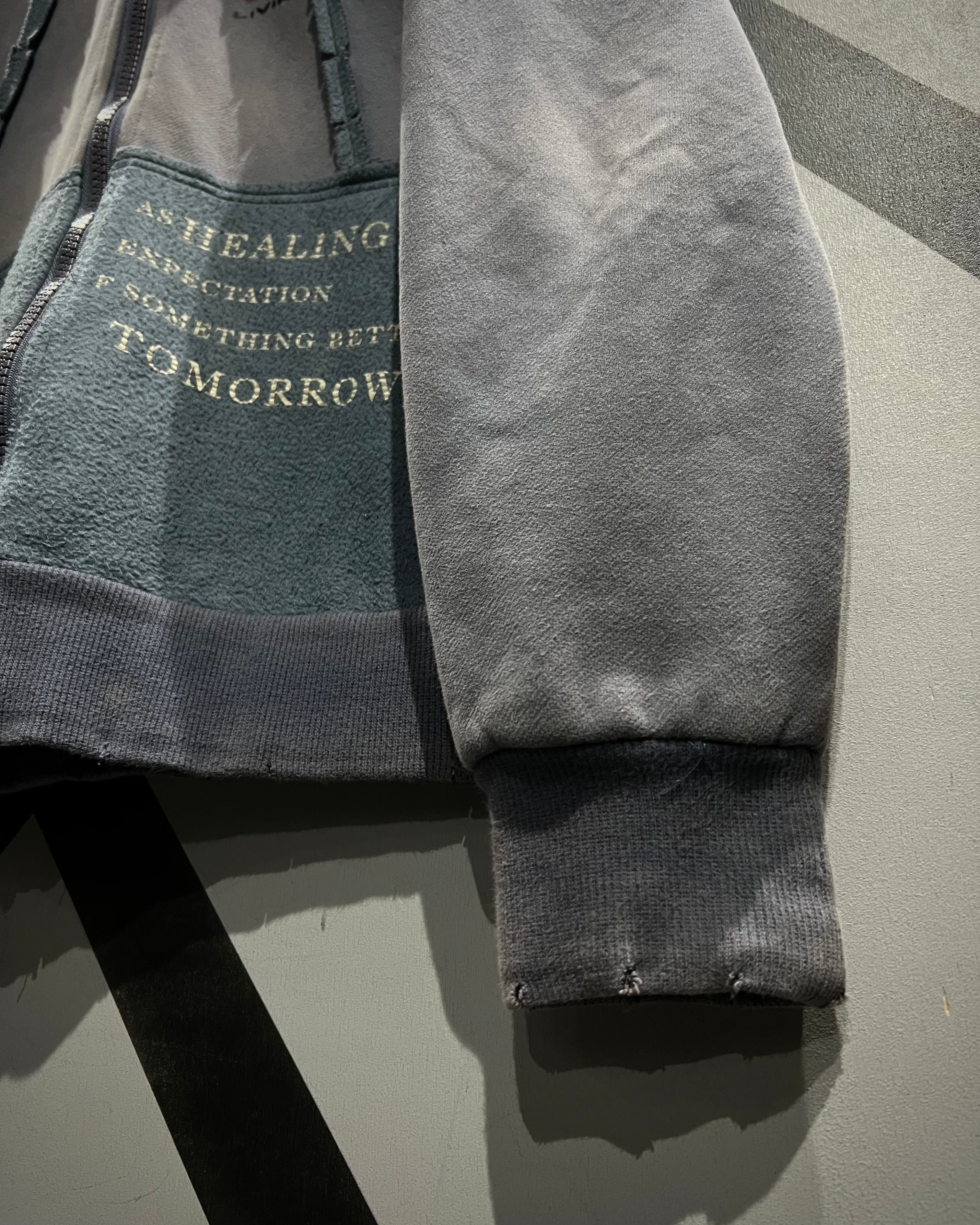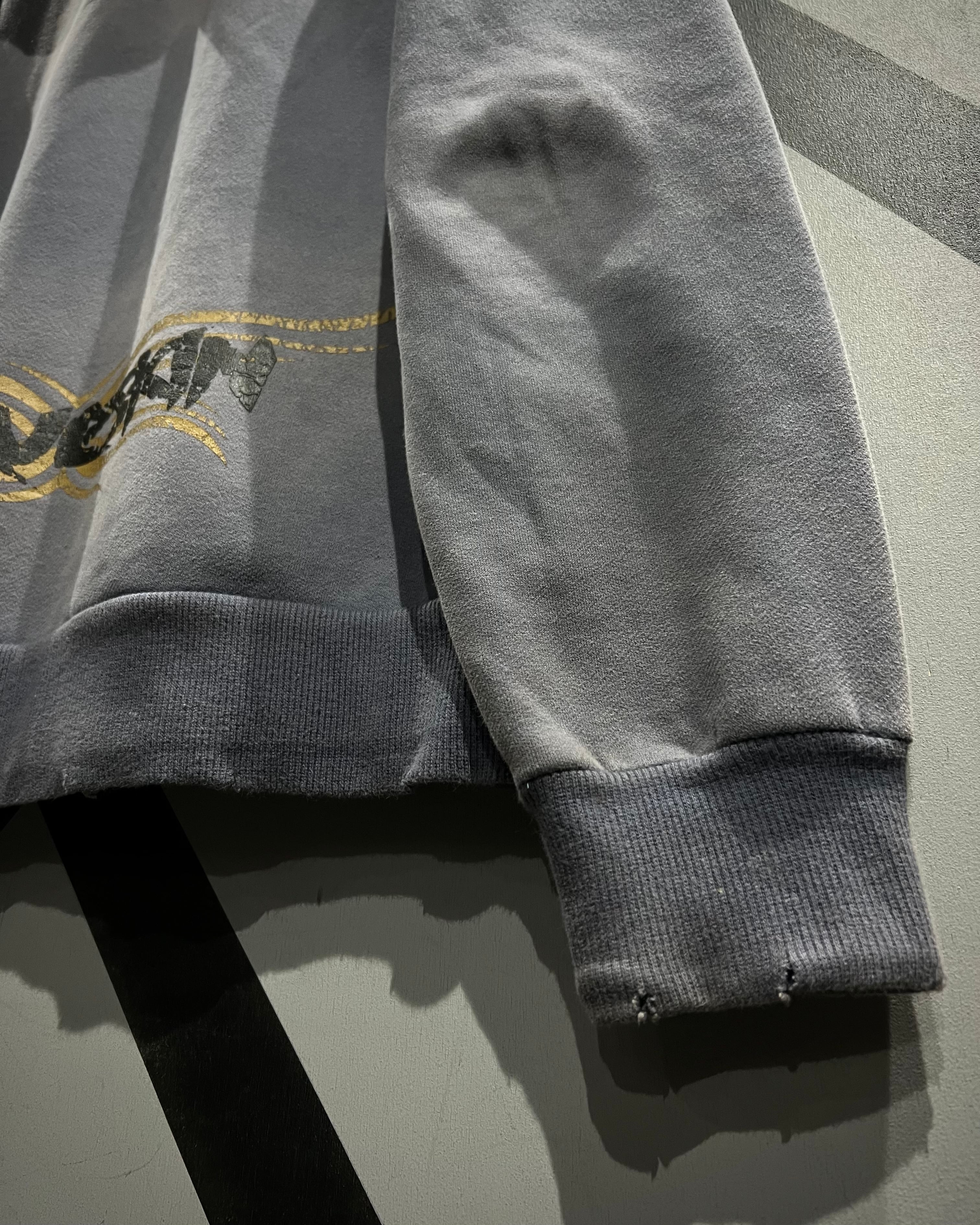 長年の着用や環境によって生まれたフェード感が、グレーのボディに奥行きがある一着。光の当たり方で陰影が変化し、グラデーションがかった色味はまさに一点物の風合いです。