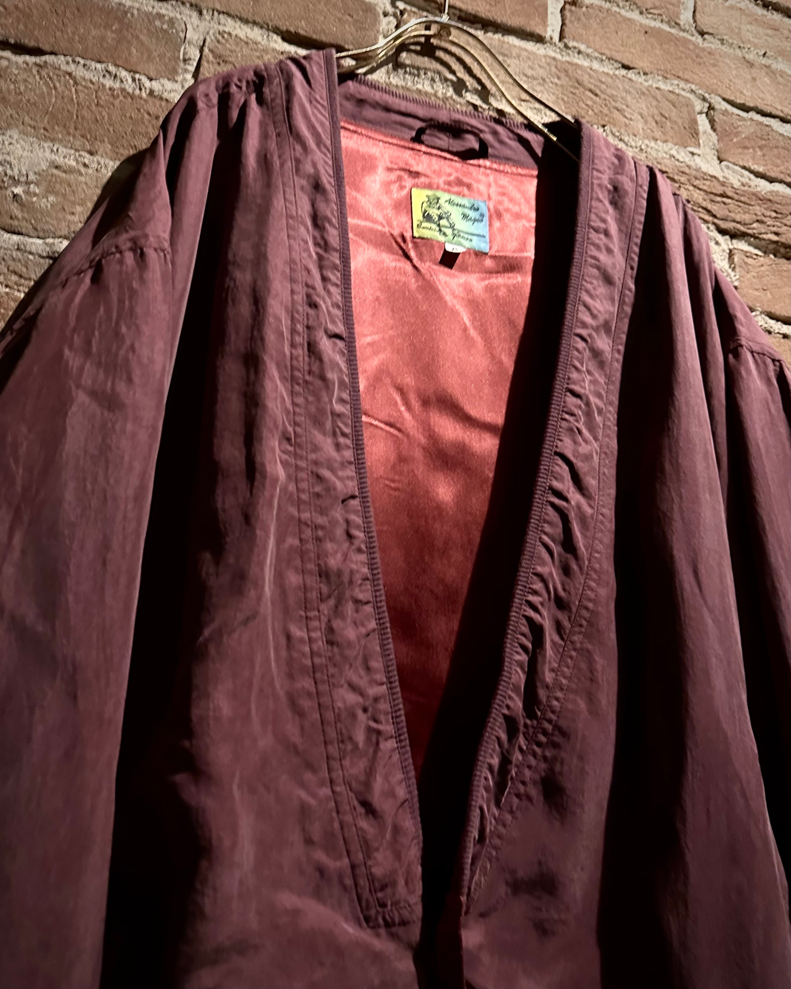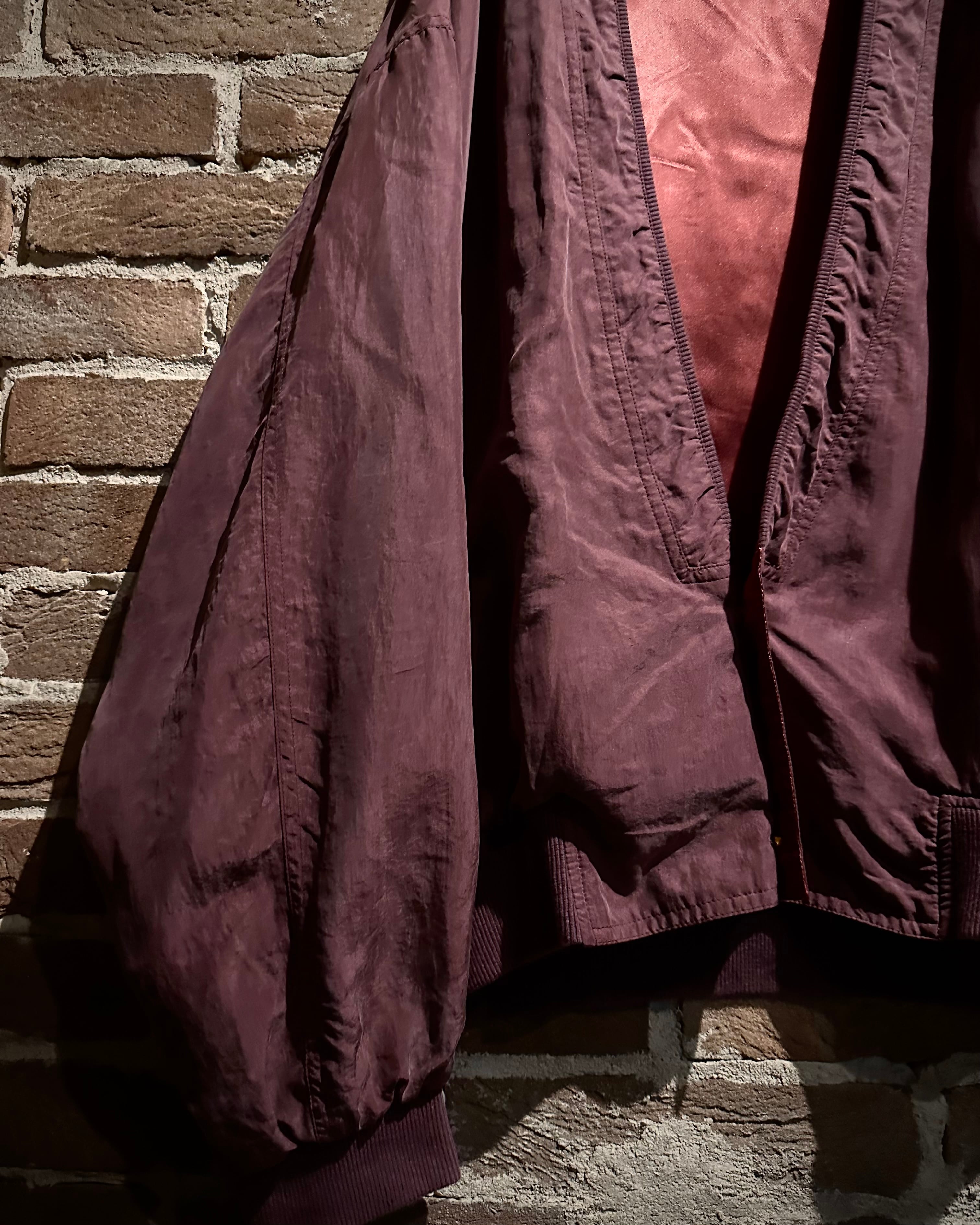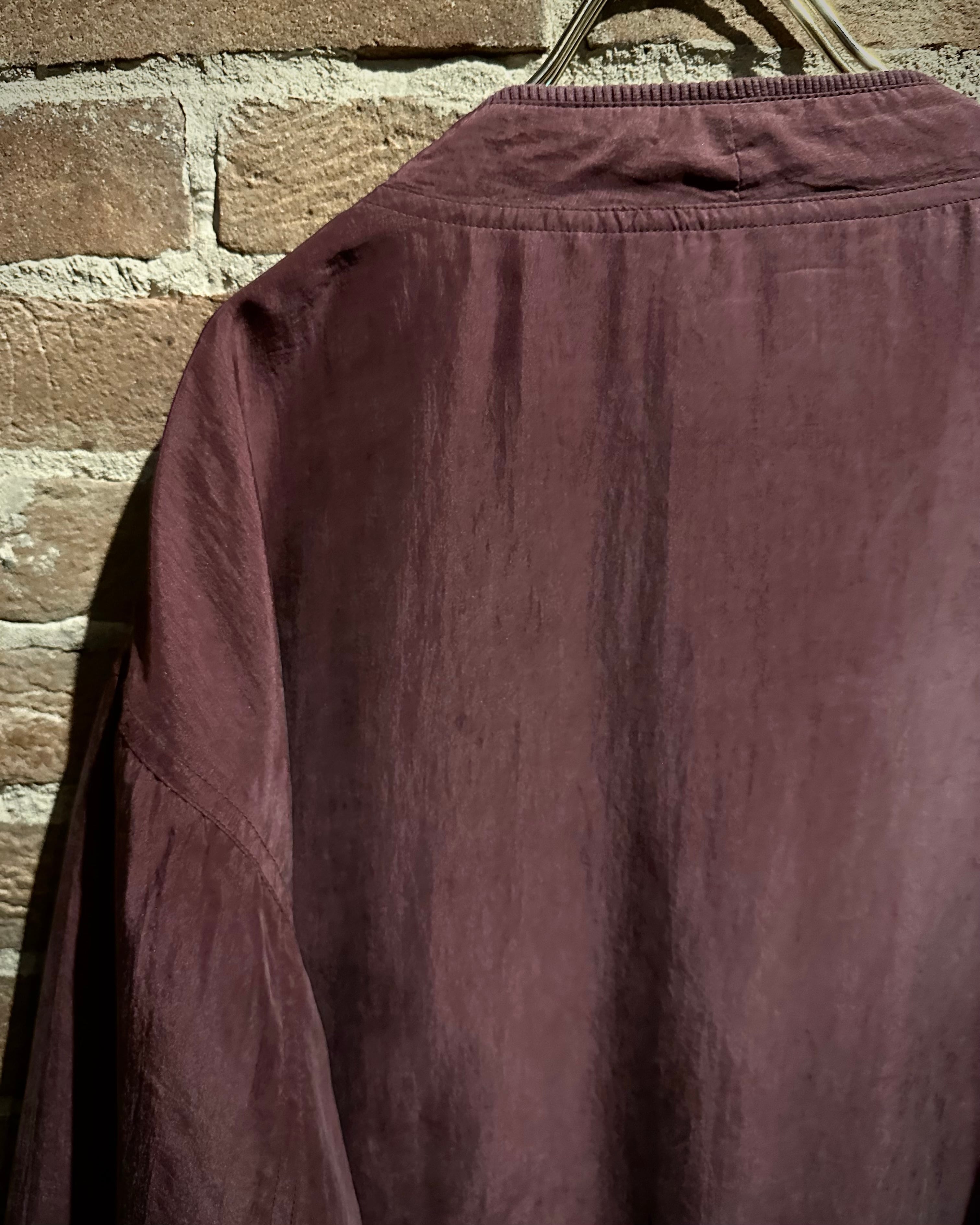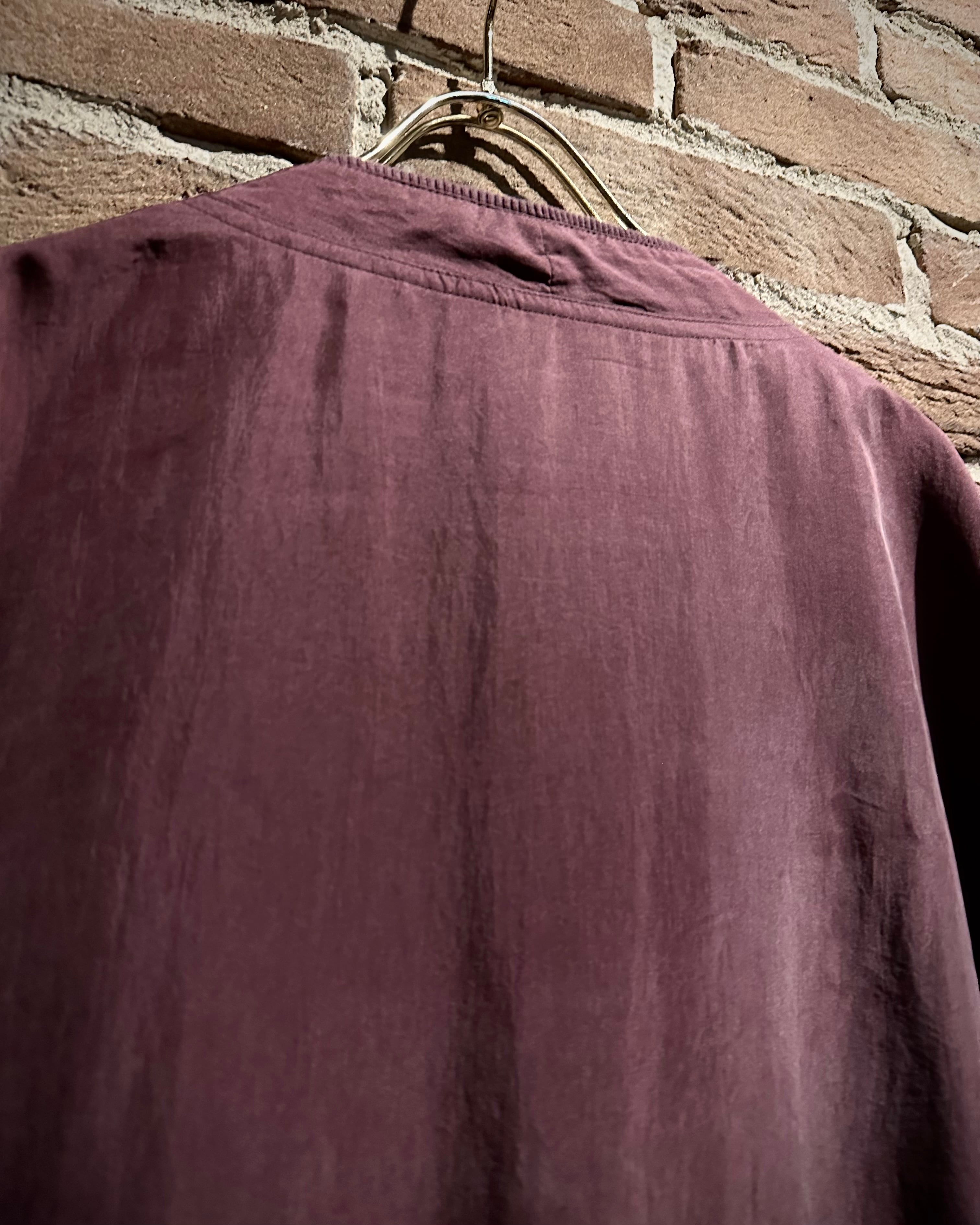 軽くマットな質感の生地を使用し、しっとりとした表情が美しい1着。派手さは抑えつつも奥行きのあるワインレッドがスタイリングに品のある存在感を与えてくれます。