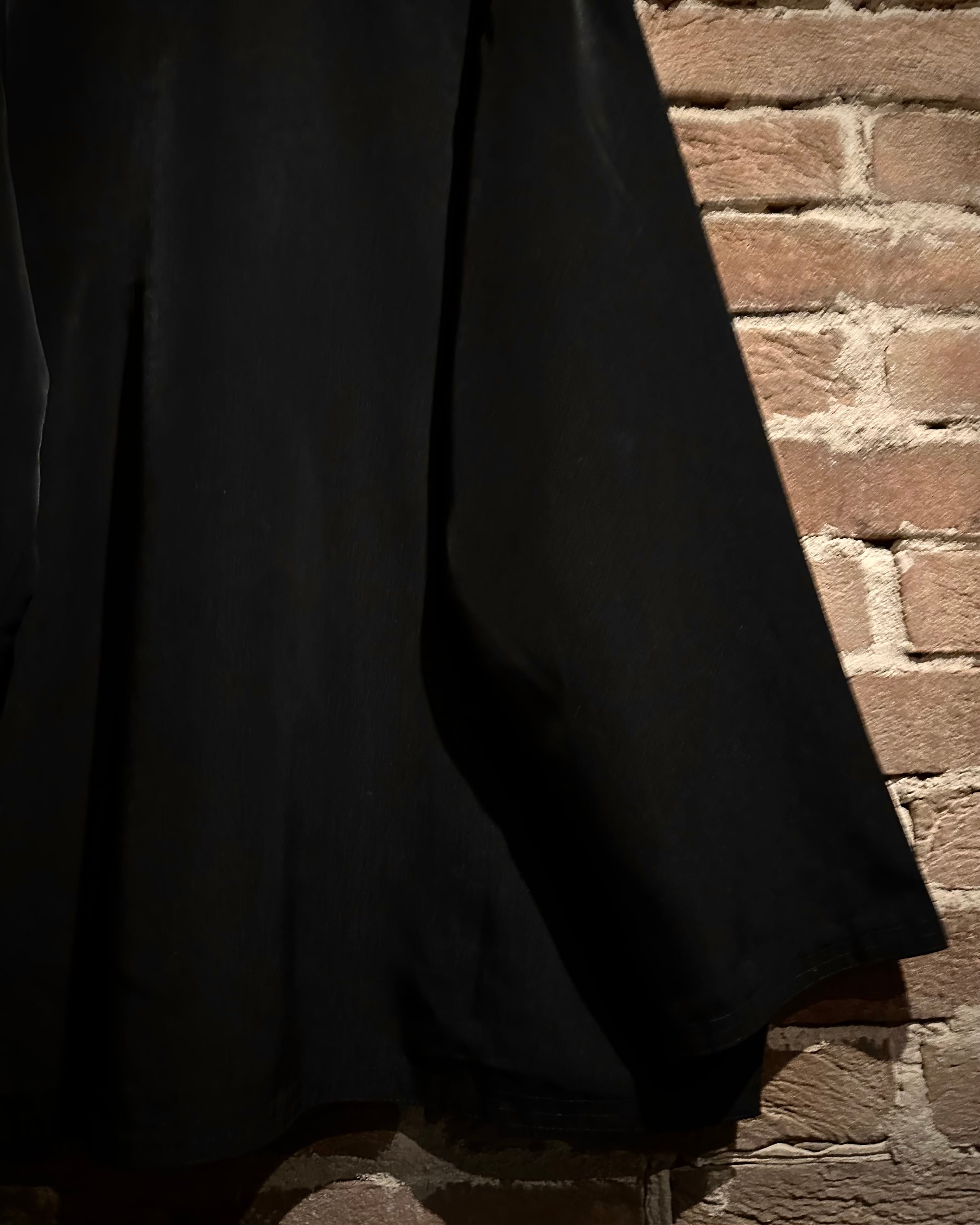 肩幅、身幅、アームホールとゆとりのあるルーズなサイジングで落ち感も良く、サラッと滑らかな素材感と相まったドレープも非常に美しい。