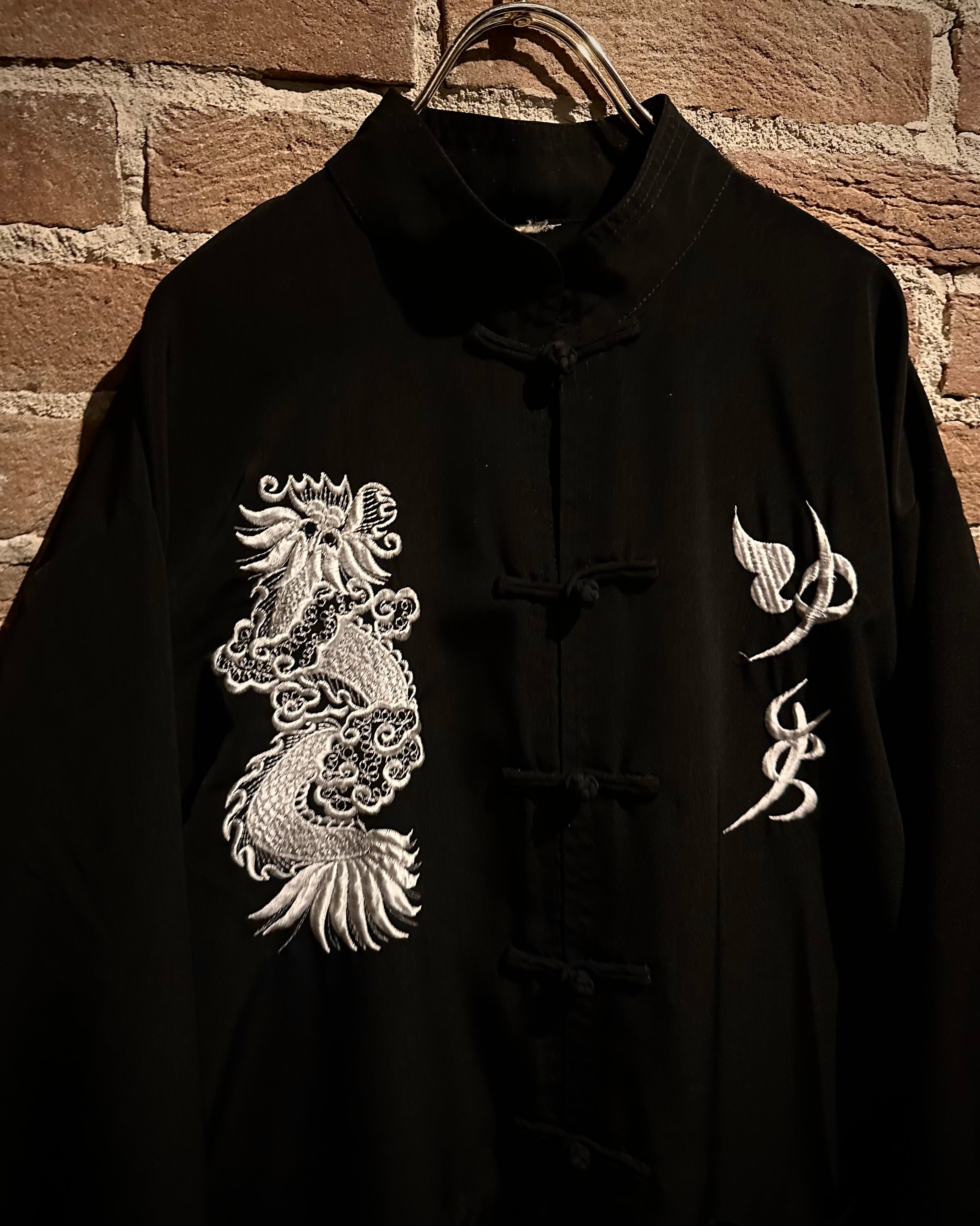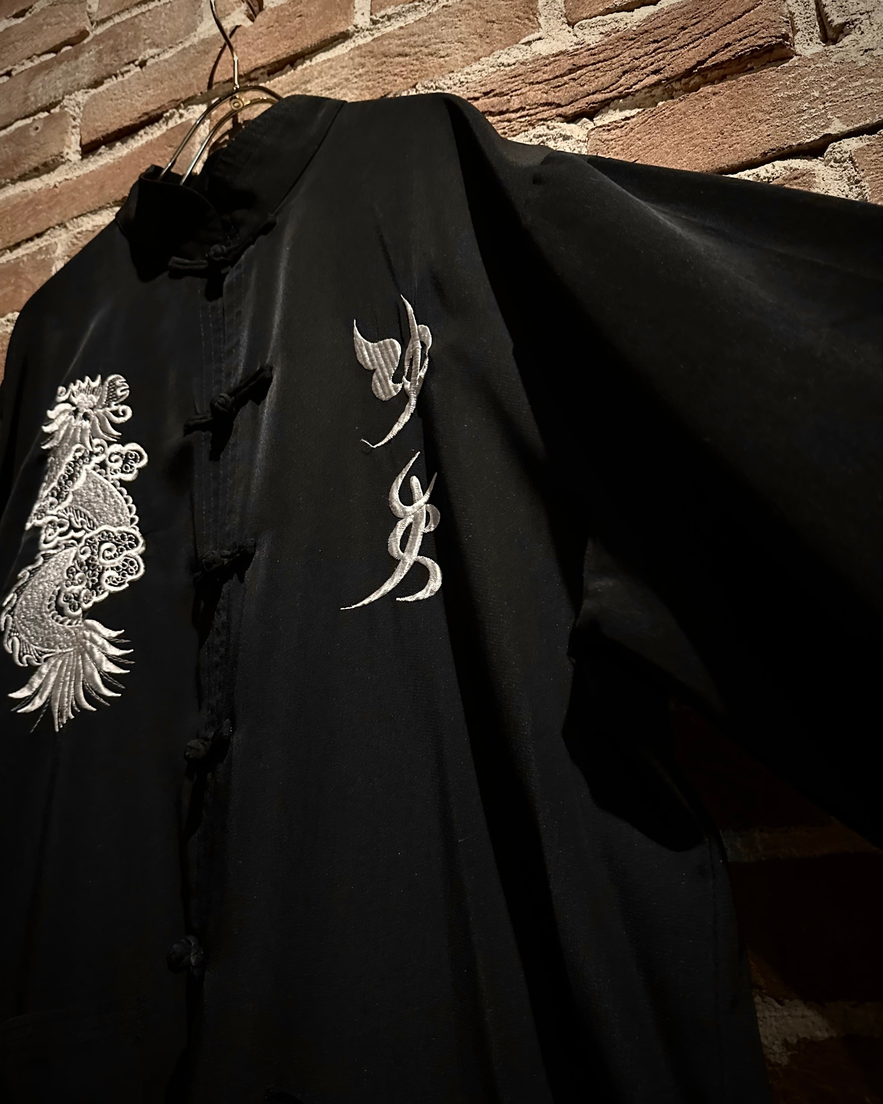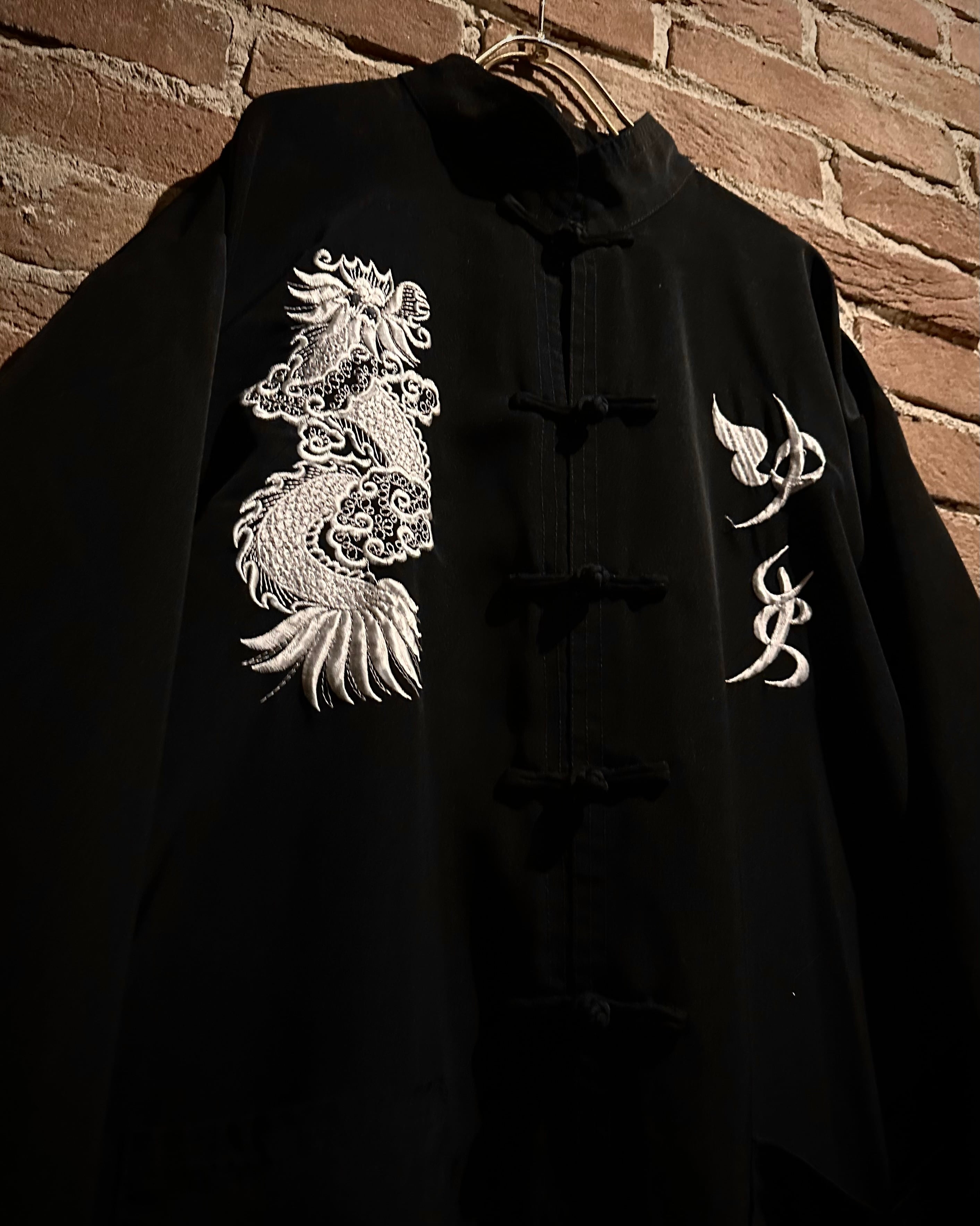 黒×白の配色に、フロントに龍と中華文字の刺繍を施した1着。