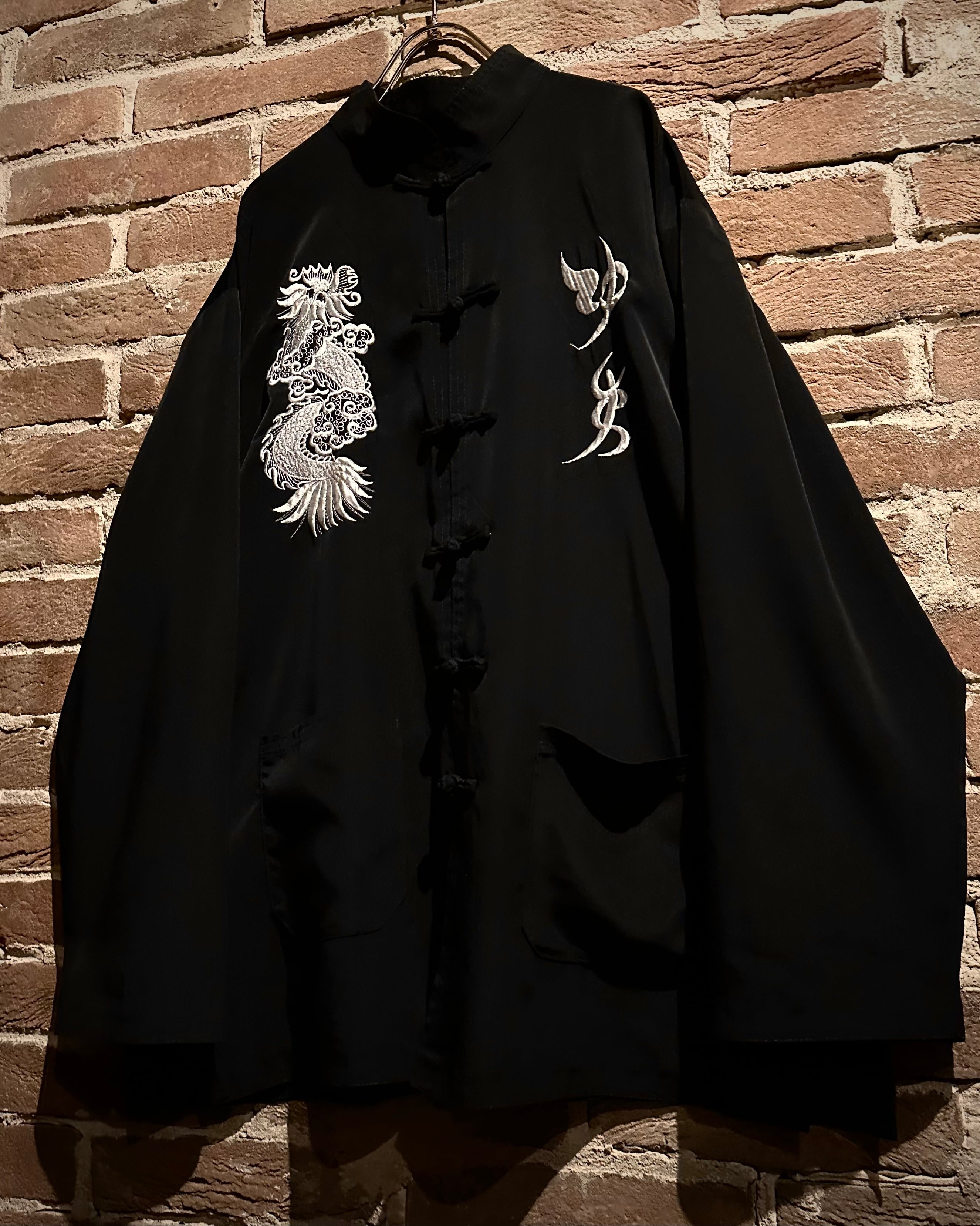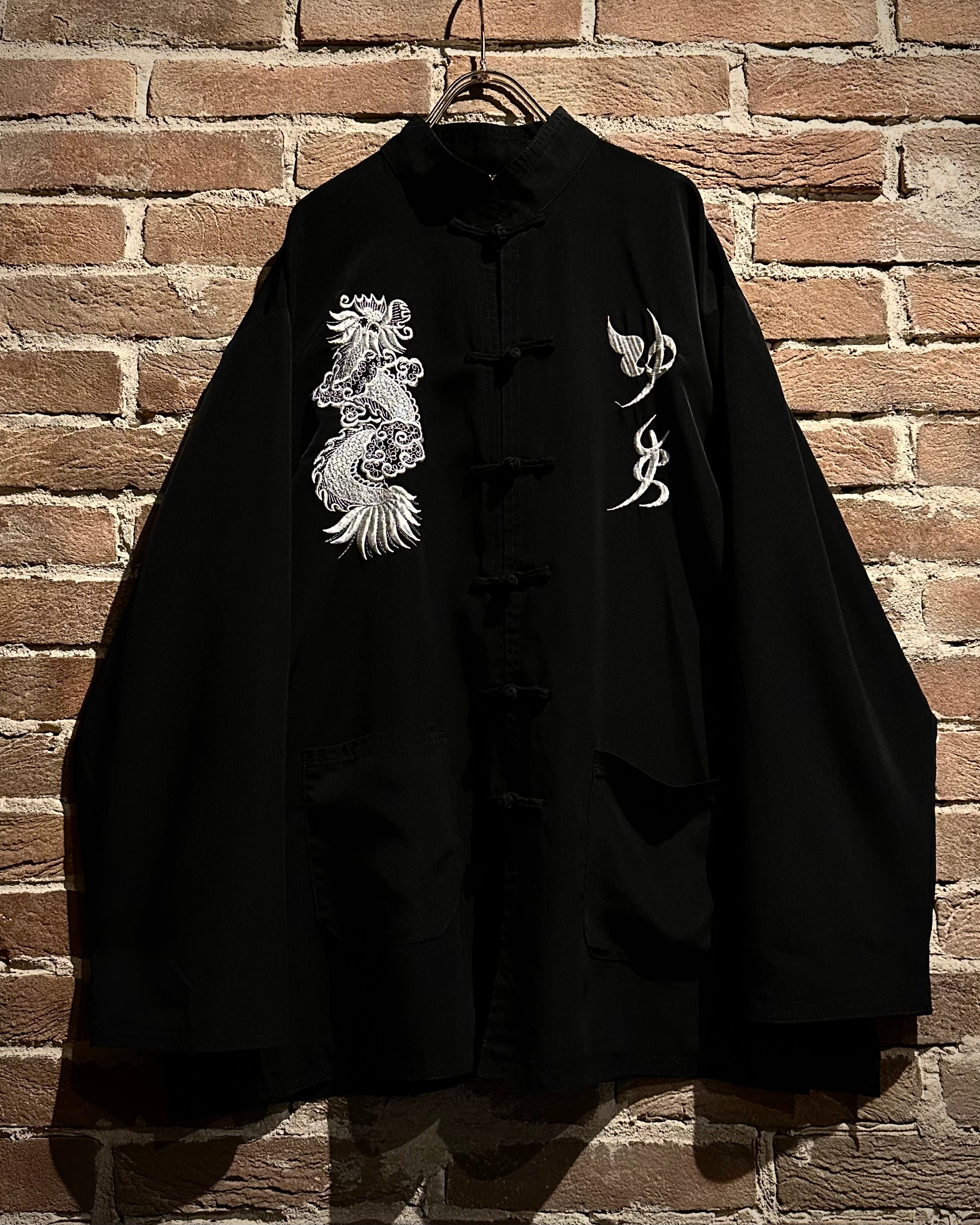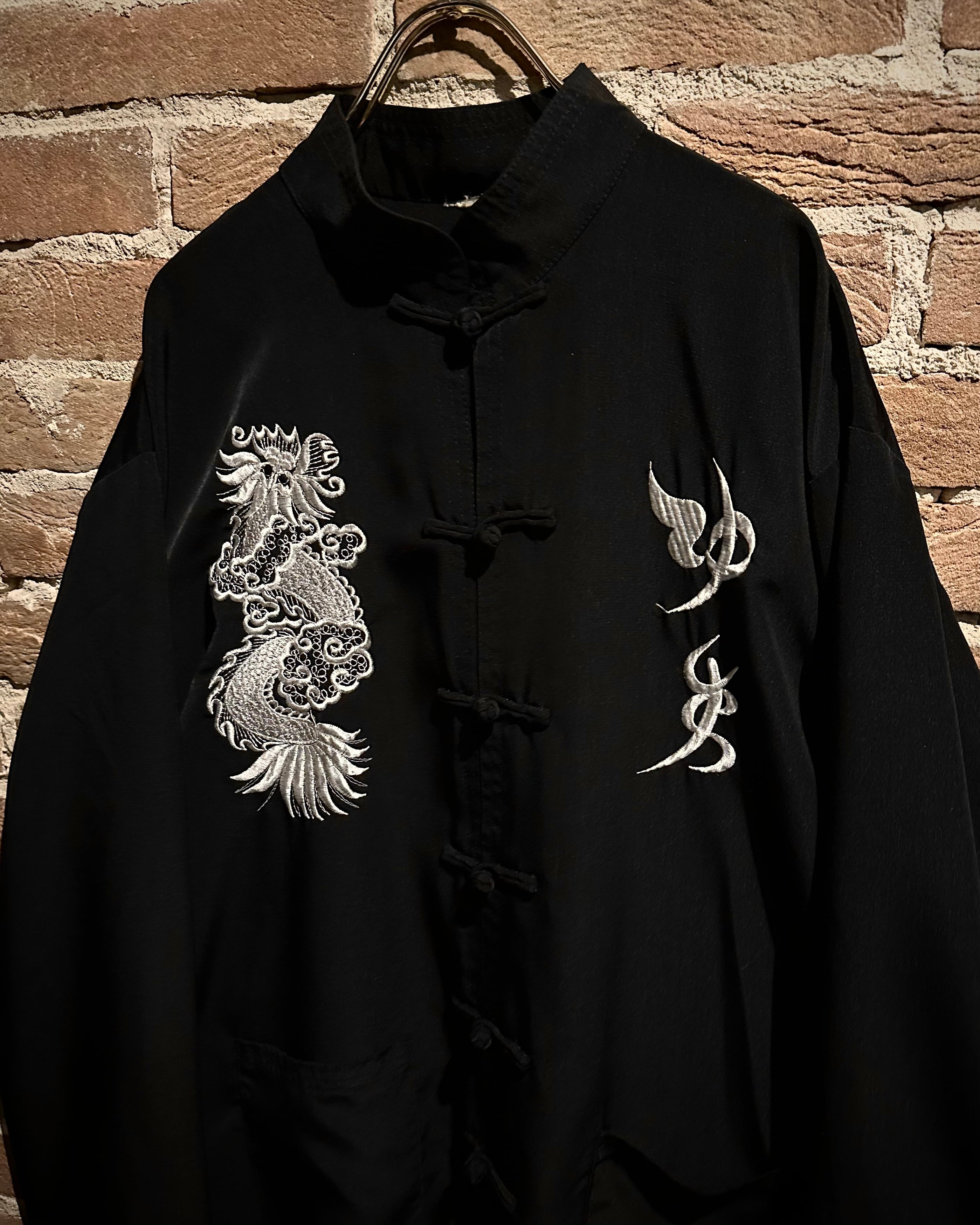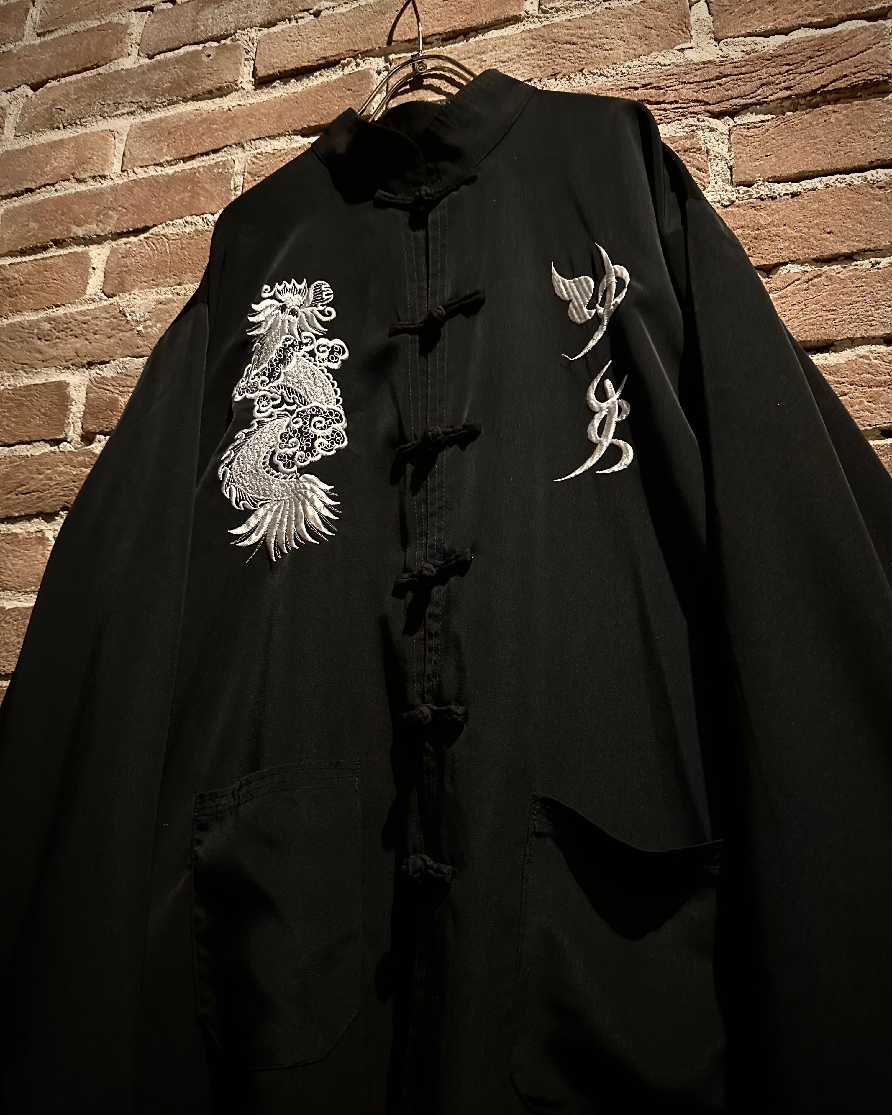 黒×白の配色に、フロントに龍と中華文字の刺繍を施した1着。